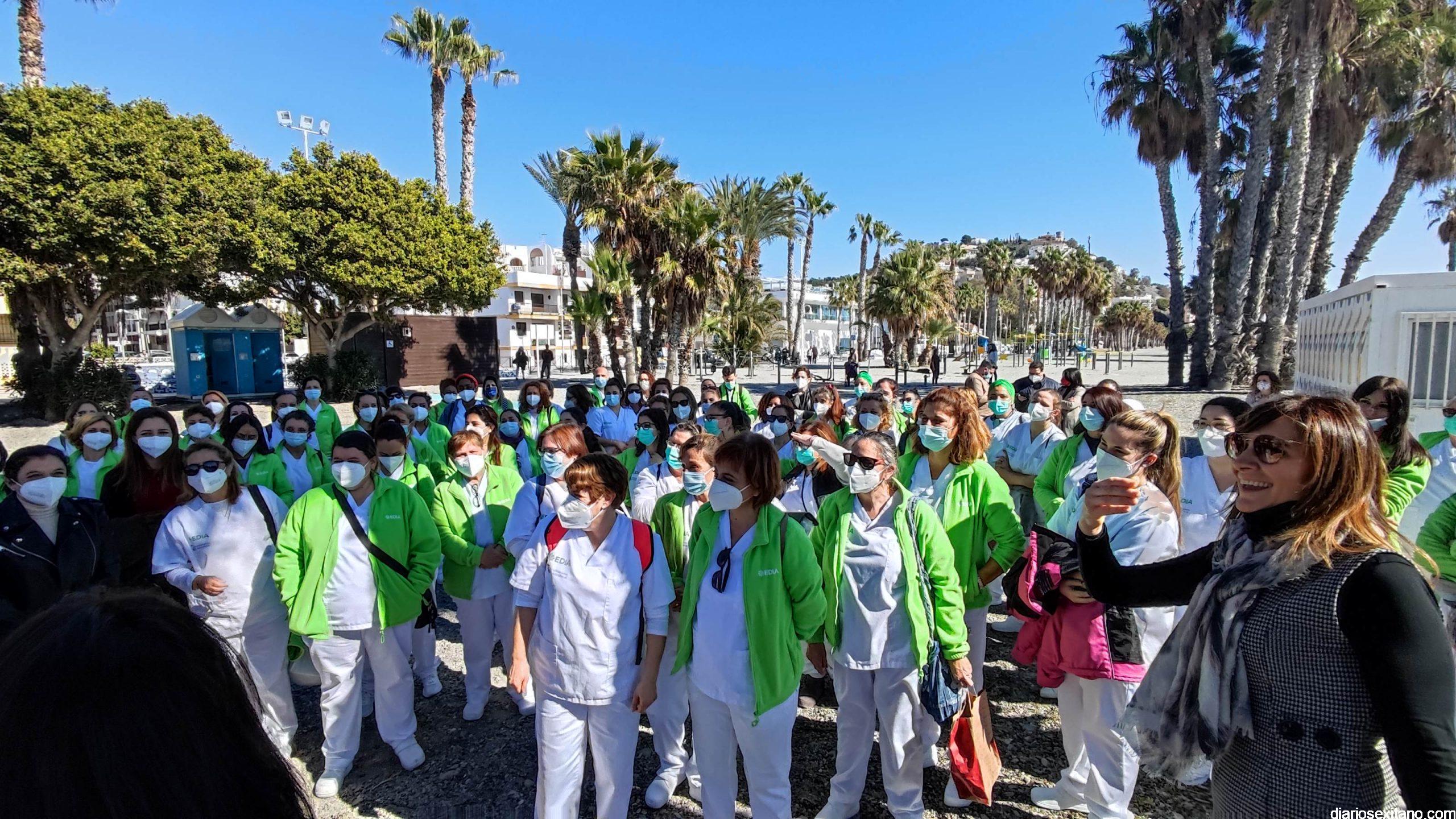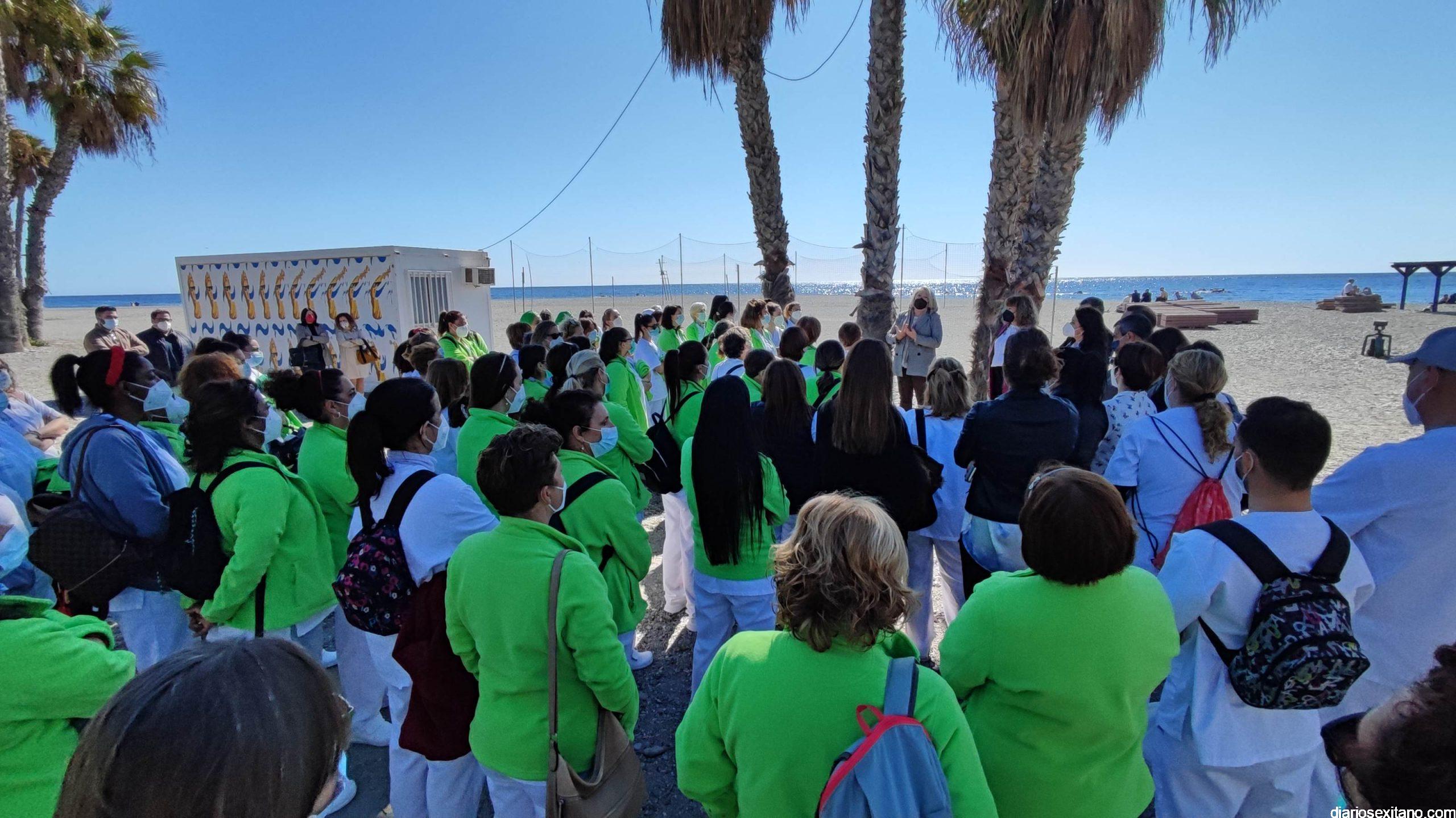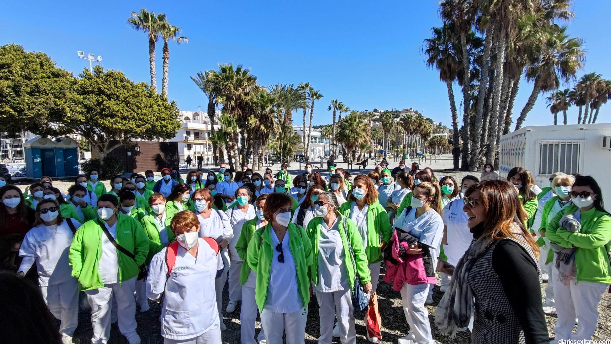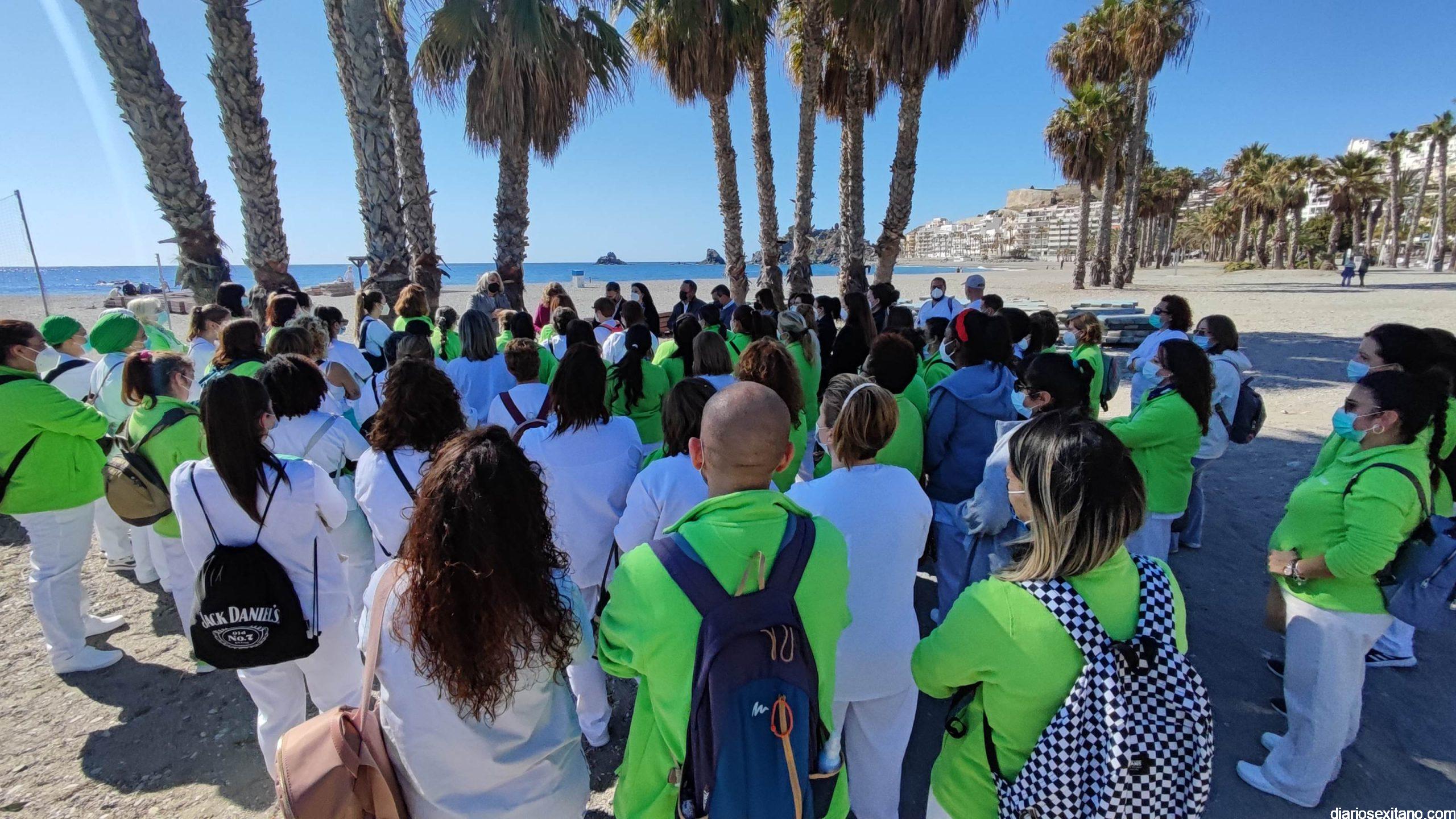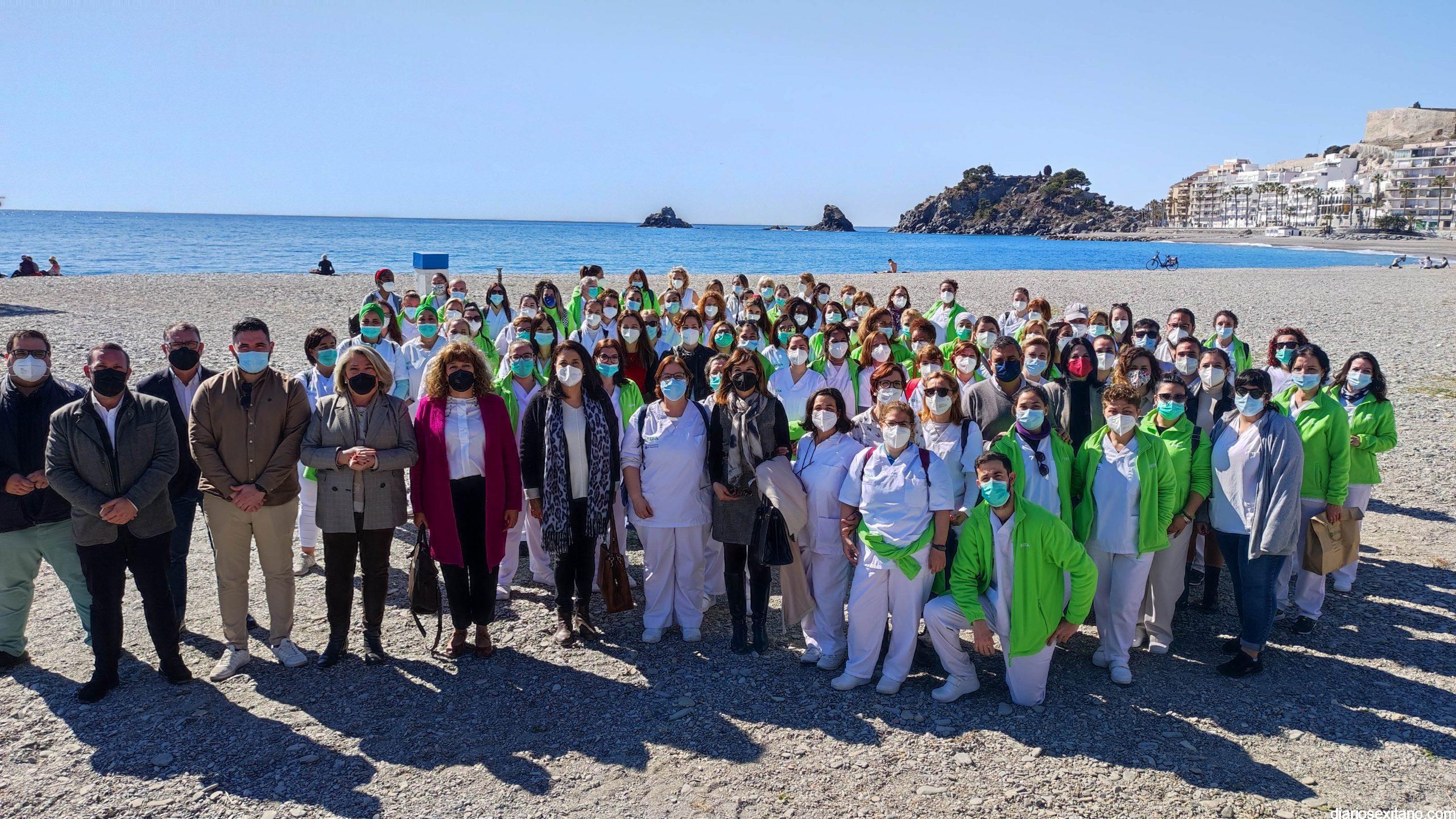Con una fotografía de familia en la playa Puerta del Mar con la participación de la alcaldesa y ediles sexitanas junto con los representantes de la empresa de Ayuda a domicilio EDIA y las 120 personas auxiliares que prestan el servicio en el municipio de Almuñécar y La Herradura concluía un encuentro de seguimiento del citado servicio entre el Ayuntamiento, encabezado por la alcaldesa, Trinidad Herrera, y los representantes de la empres EDIA, con su presidenta Dolores Ruiz Beltrán.