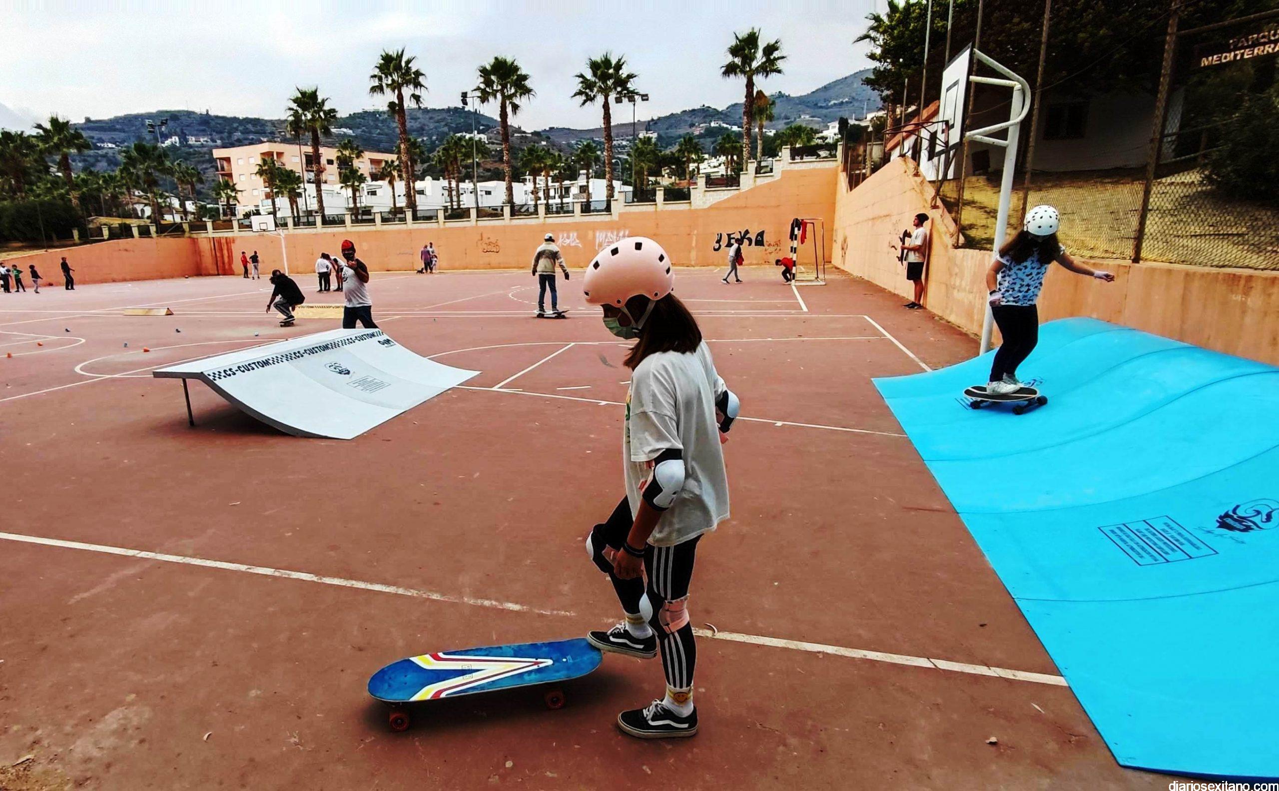 Sandro explica que para la práctica de este deporte se puede realizar desde los 5 años hasta casi 60, tanto en el apartado de aficionado como profesional. “En Almuñécar hay mucha afición. Formamos un grupo de aficionados que nos reunimos de vez en cuando y, en varios coches y salimos fuera de Almuñécar a patinar porque no tenemos el lugar idóneo aquí. También nos citamos a través de whatsapp quedamos en el polideportivo “El Pozuelo”. Este espacio, situado junto a la playa del mismo nombre y cerca del circuito de BMX, unos ponemos rampa y otros conos y música … y aquí procuramos no molestar a nadie”, explica este veterano deportista del surf y surfskate.