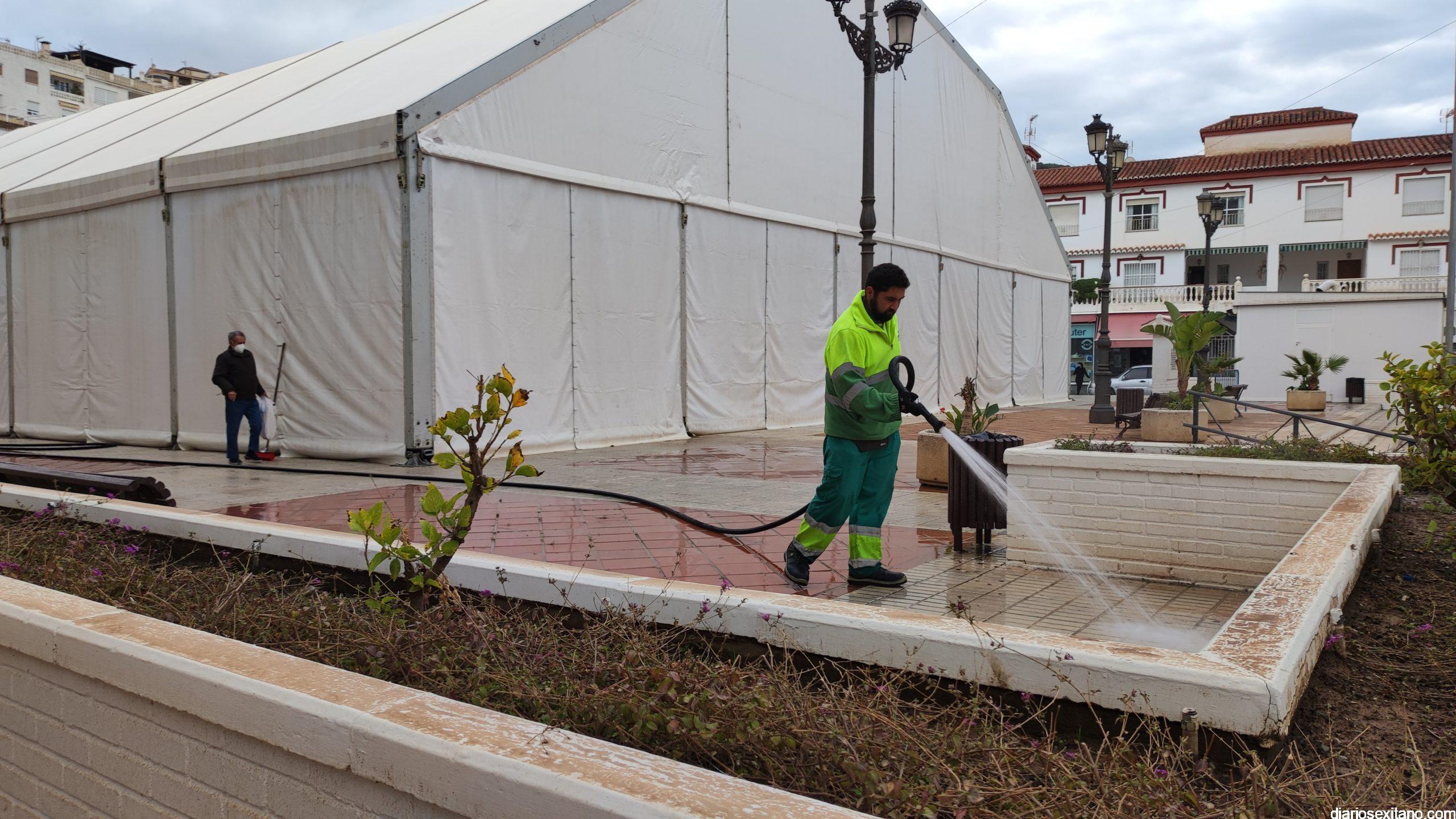 La Herradura vuelve a celebrar sus fiestas patronales después de años suspendidas por la pandemia del Covid-19. Hoy, jueves, día 17, comienza cuatro días intensos de fiestas para todas las edades y, si fuera poco, lo hacen con una campaña intensa de limpieza de los efectos que ha dejado el polvo sahariano que llegó estos días, acompañado de lluvia. En este sentido, tanto vecinos como feriantes, empresa de limpieza FCC y empleados municipales intentan retirar cuanto antes los citados efectos aunque esto puede prolongarse durante algunos días.