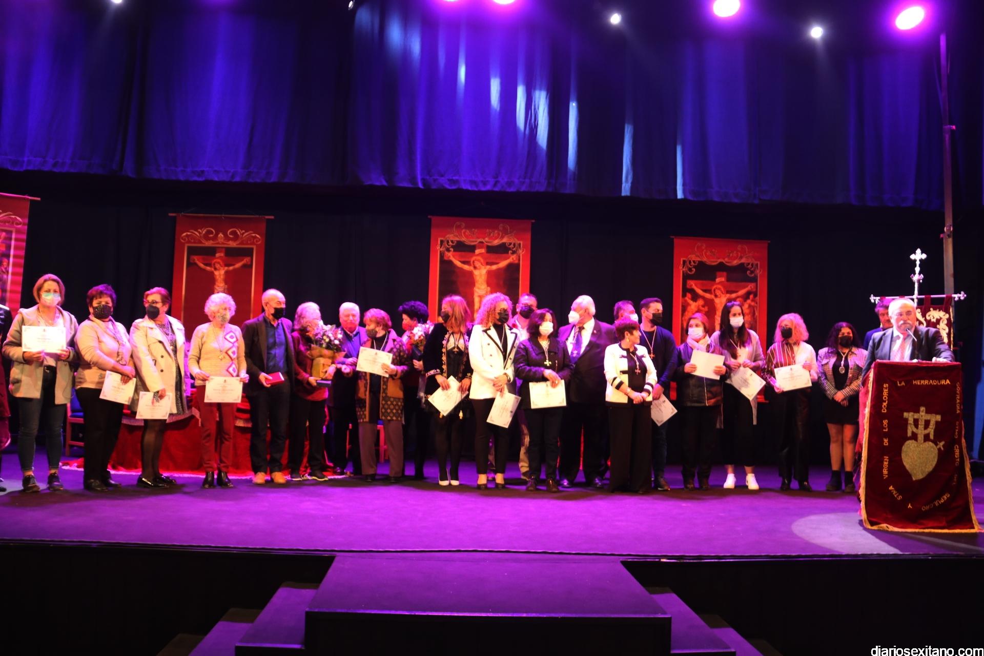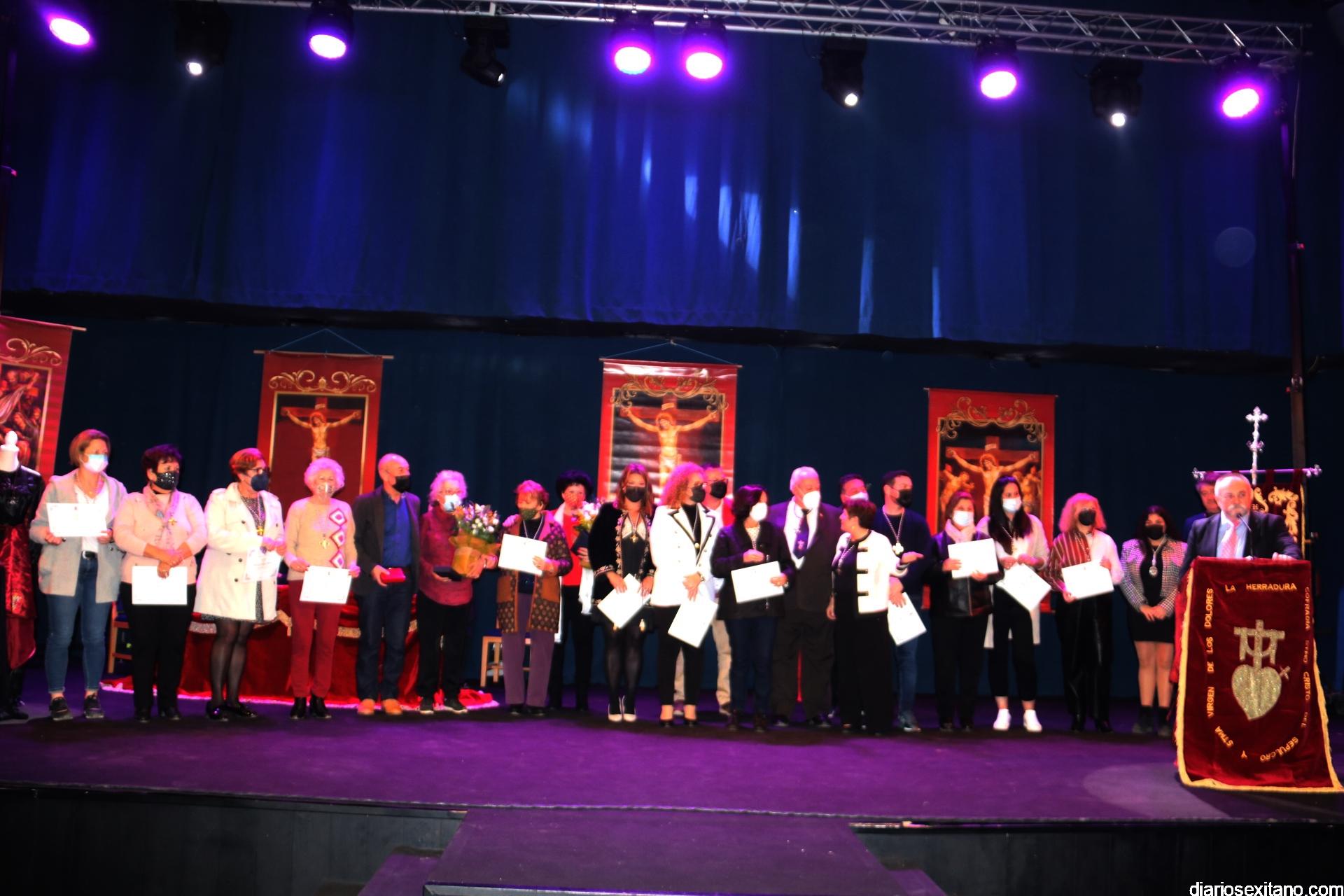 Tras el pregón la Cofradía de La Herradura rindió homenaje a numerosas personas que habían realizado una colaboración destacada con la misma, entre ellas al expresidente Francisco Sánchez Camacho, que estuvo al frente de la misma en los últimos cuatro años. También recibieron el homenaje numerosas vecinas voluntarias y Policía Local , que al inicio de la pandemia tuvieron un papel destacado y solidario en la realización y distribución de mascarillas. Una iniciativa que impulsó y coordinó la propia cofradía herradureña con distintos colectivos que no tenían la citada protección. Todas ellas recibieron un diploma y medalla de la cofradía herradureña.