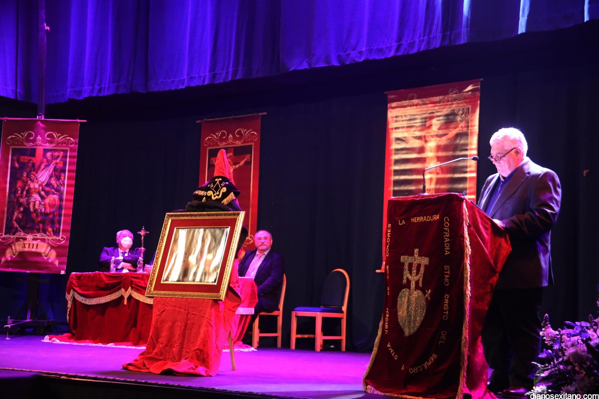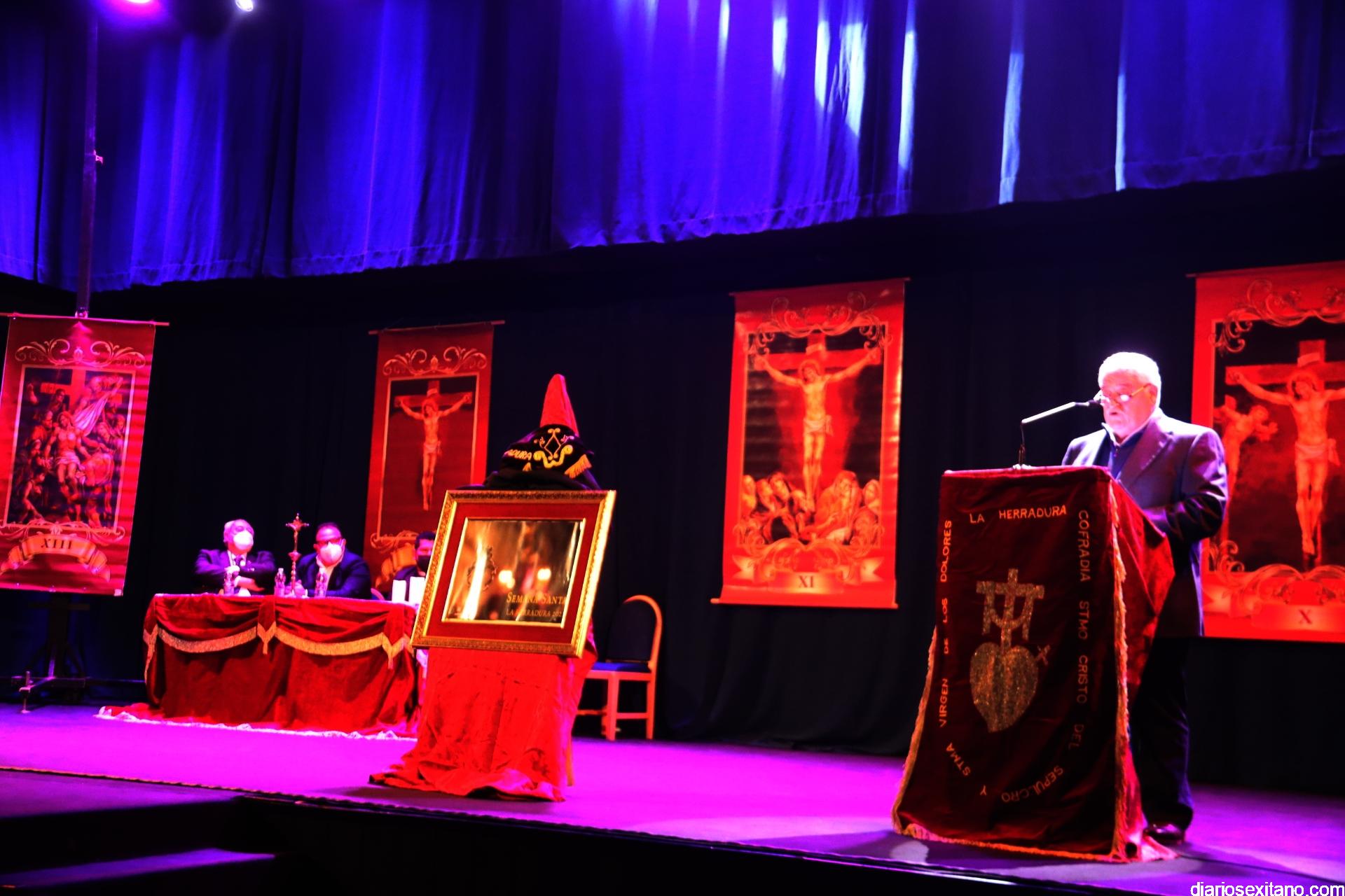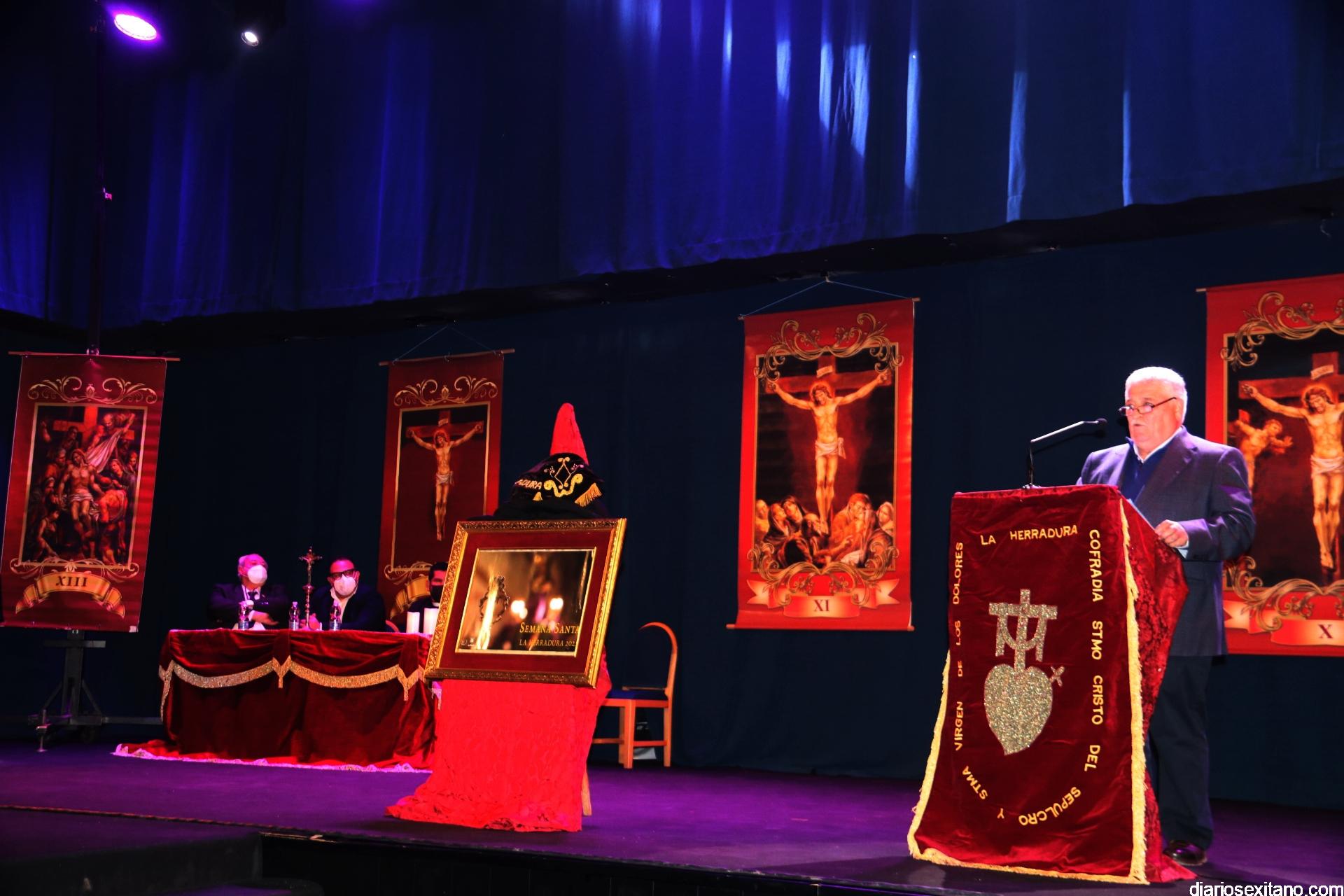 Fue un sentido y emocionado pregón, especialmente, cuando describió sus vivencias en la Semana Santa herradureña, desde la infancia pasando por la juventud hasta llegar a adulto. Un recorrido a los momentos más destacados de las Semana de Pasión y de las imágenes del Nazareno, Virgen de los Dolores y, sobre todo, el Cristo yaciente, que realizó el artista local Pepe Gámez.