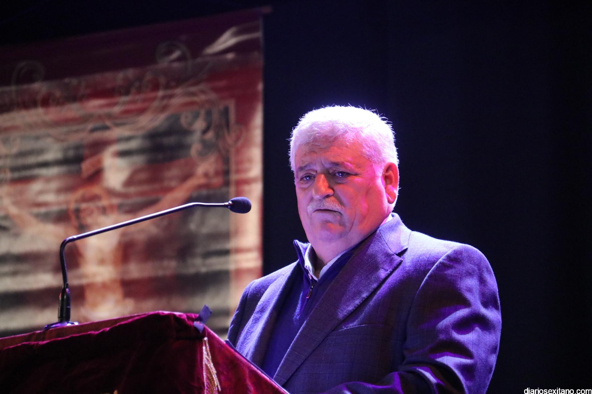 El acto, al igual que el pregonero, fue presentado por Antonio González, y estuvo presidido por el cura párroco Néstor Robledo; el teniente de alcalde, Juan José Ruiz Joya y el recién elegido de nuevo presidente de la Cofradía, Antonio Almansa.