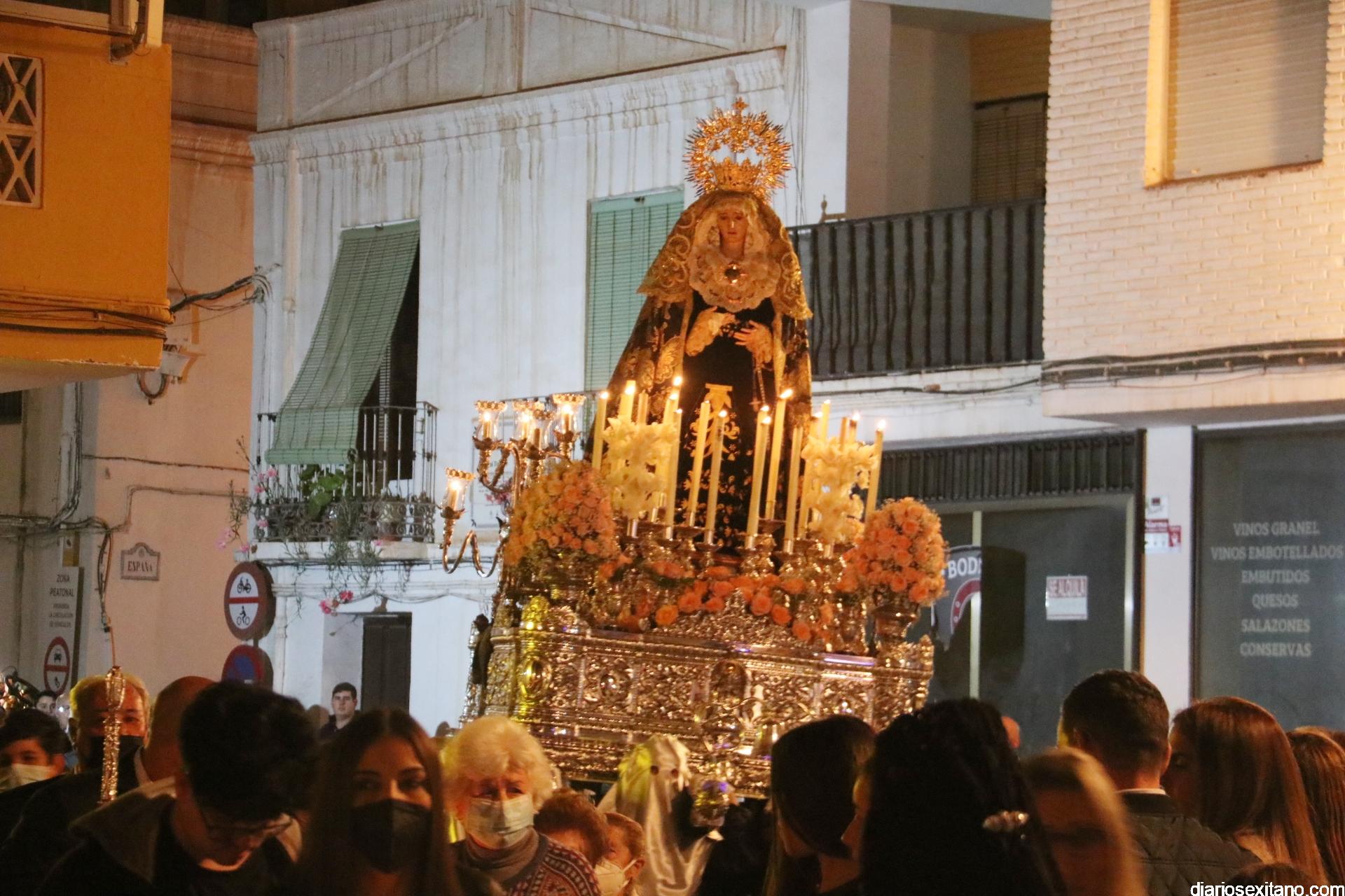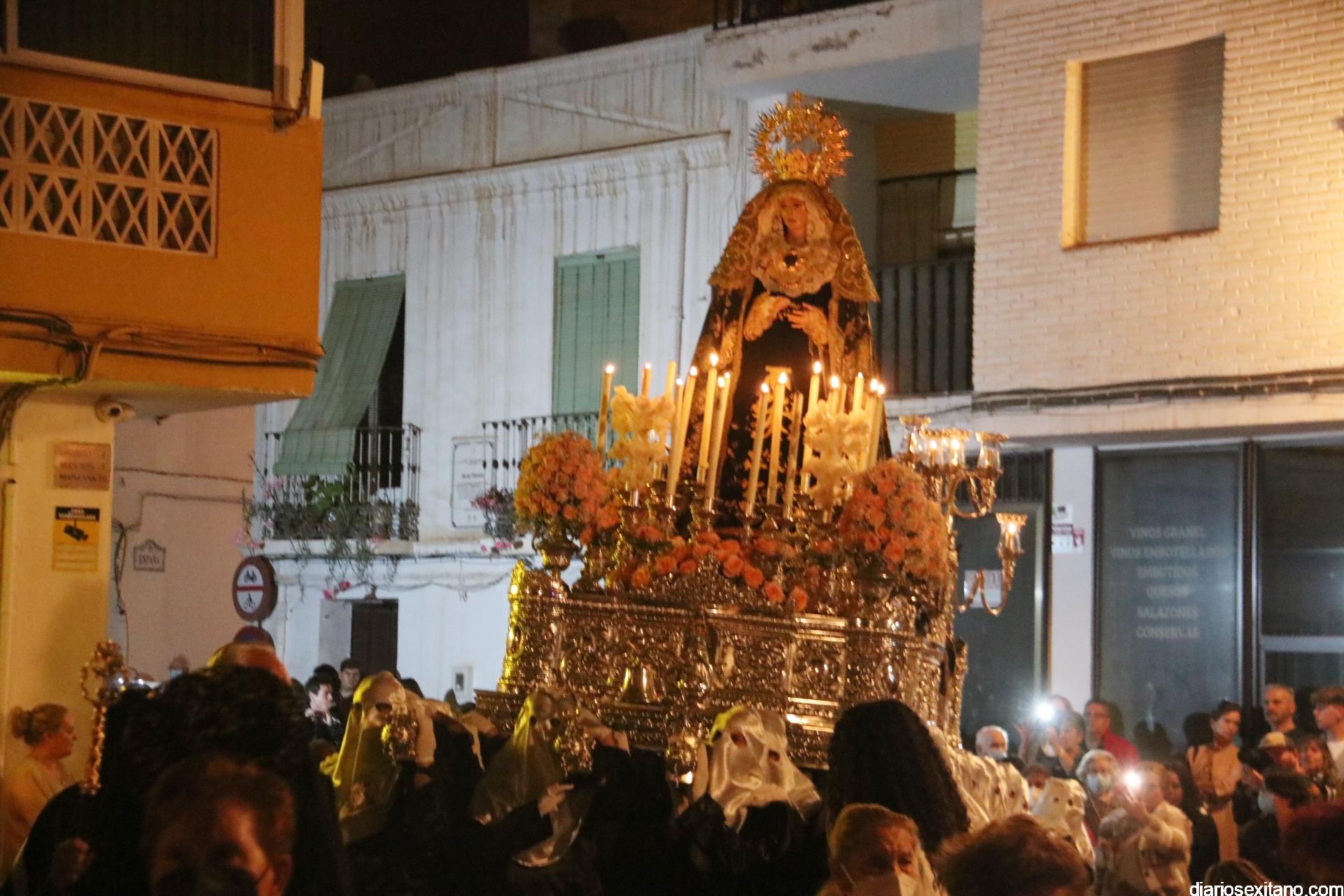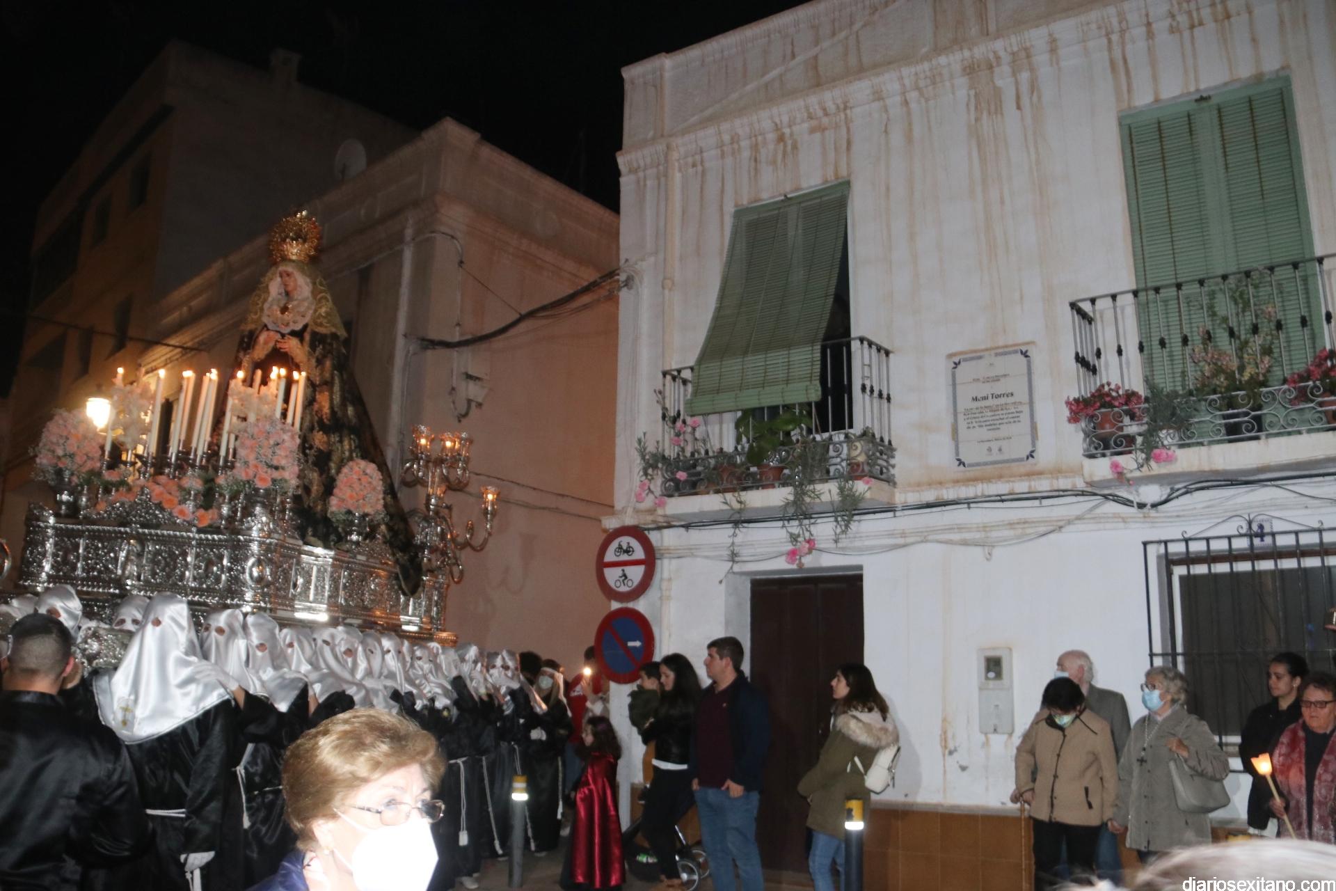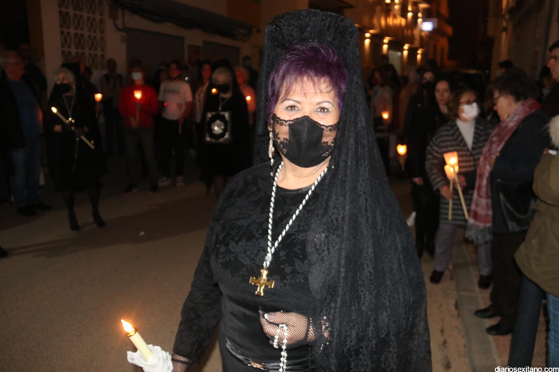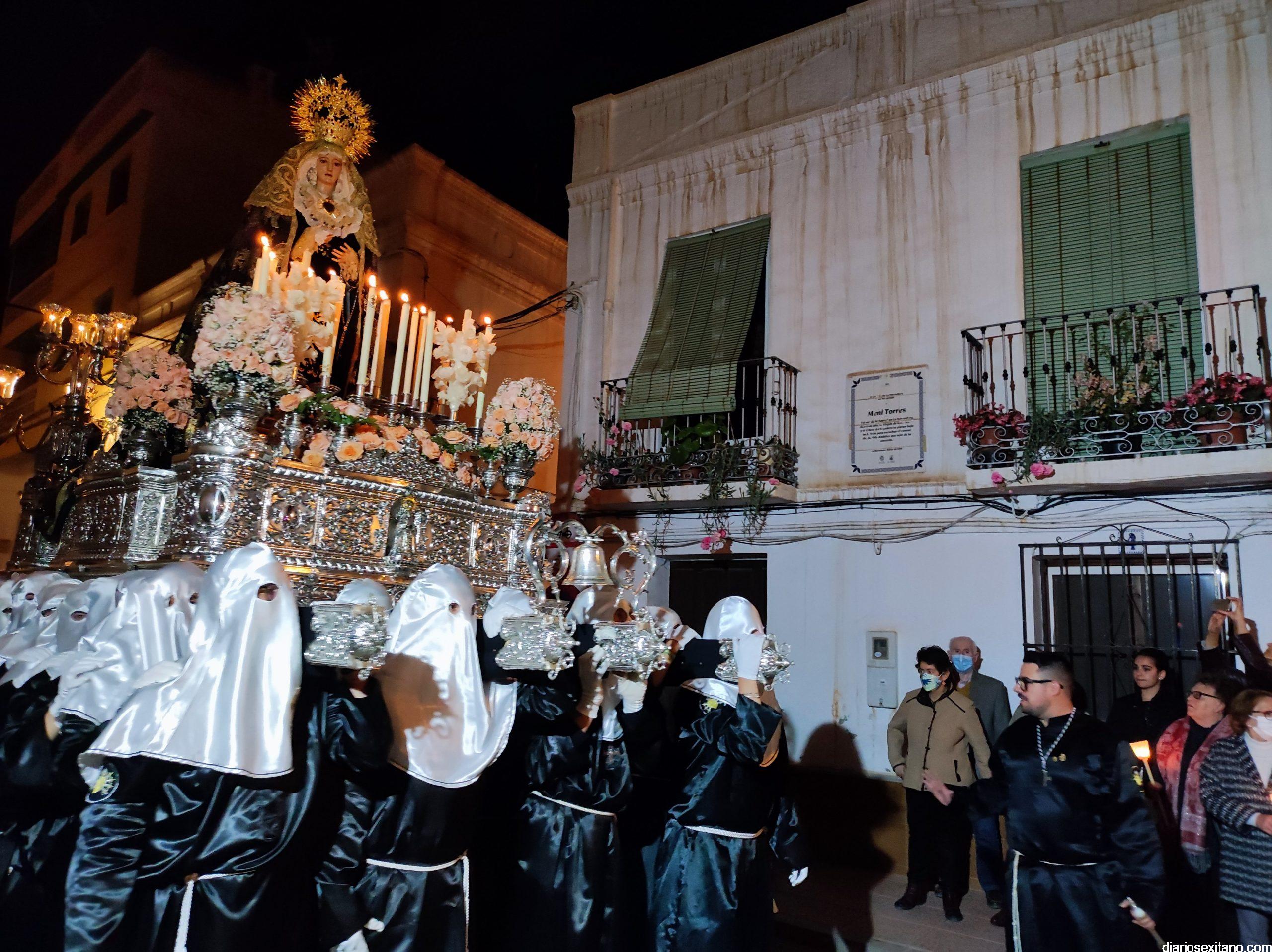 La Cofradía de La Herradura vivió este Viernes Santo su día grande de fervor al Cristo Yacente, obra del escultor local Pepe Gámez, y la Virgen de los Dolores. Penitentes y mantillas acompañaron a los titulares en el recorrido por el centro y el paseo marítimo.