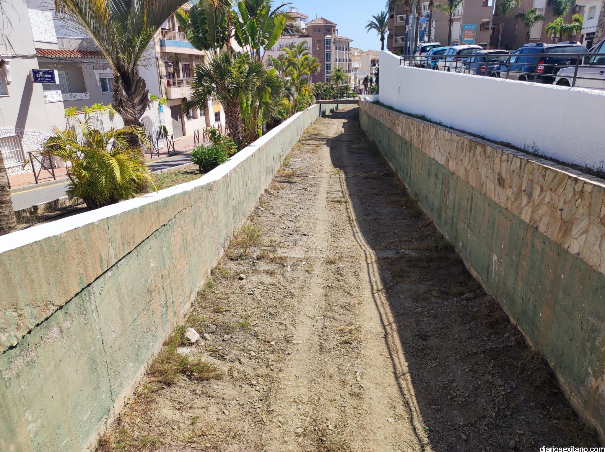 La Tenencia de Alcaldía de La Herradura ha iniciado los trabajos de limpieza de hierbas del cauce de la Rambla del Espinar. Es una labor que llega cada año a pocas semanas del inicio del verano.
