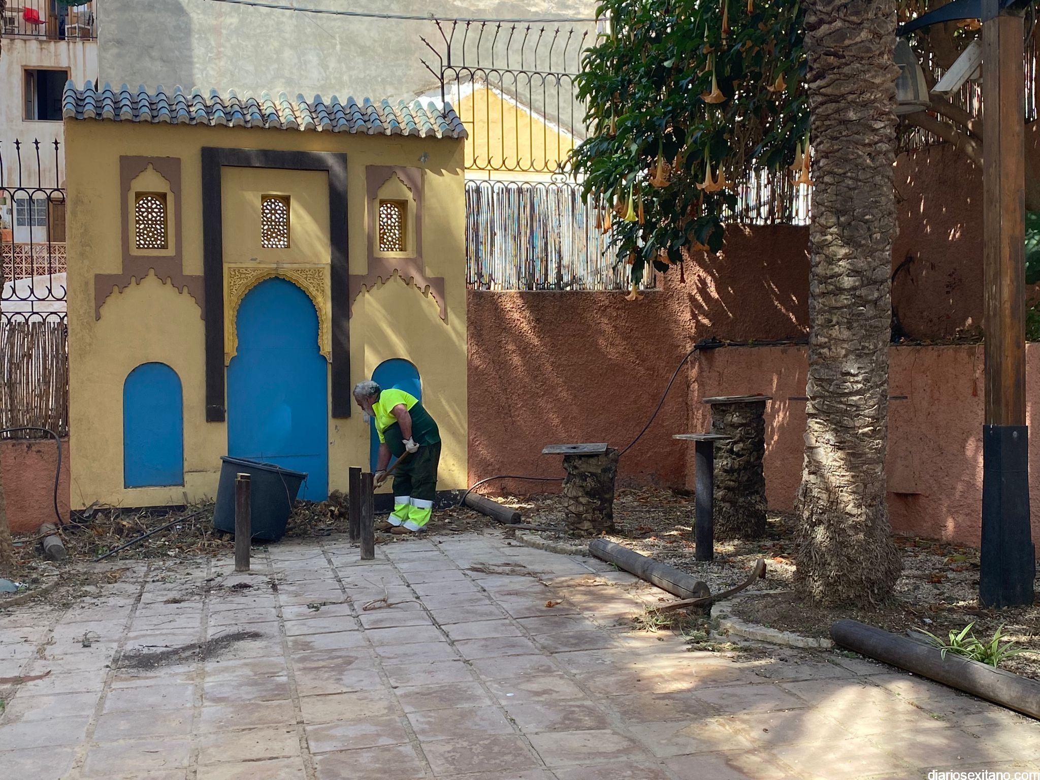Operarios municipales del Servicio de Jardinería y Medio Ambiente llevan a cabo, desde esta semana, las tareas de limpieza y recuperación de la plaza de Marruecos, que ha ocupado en los últimos años el Jardín del Bonsái.