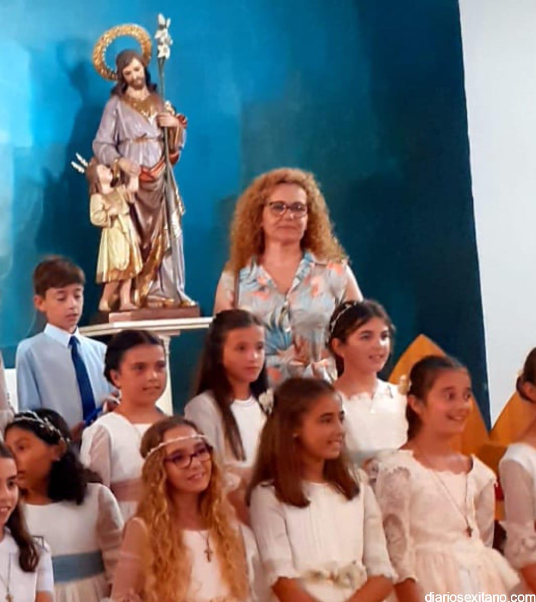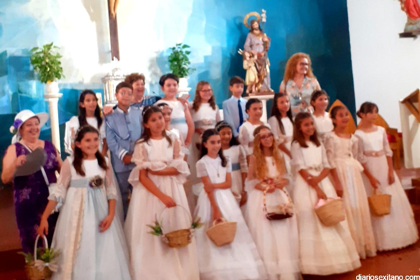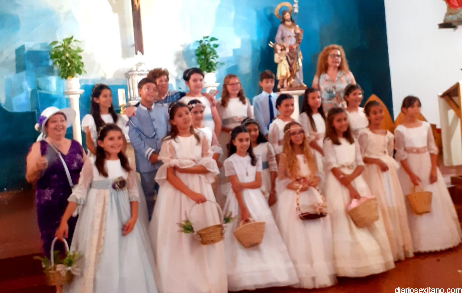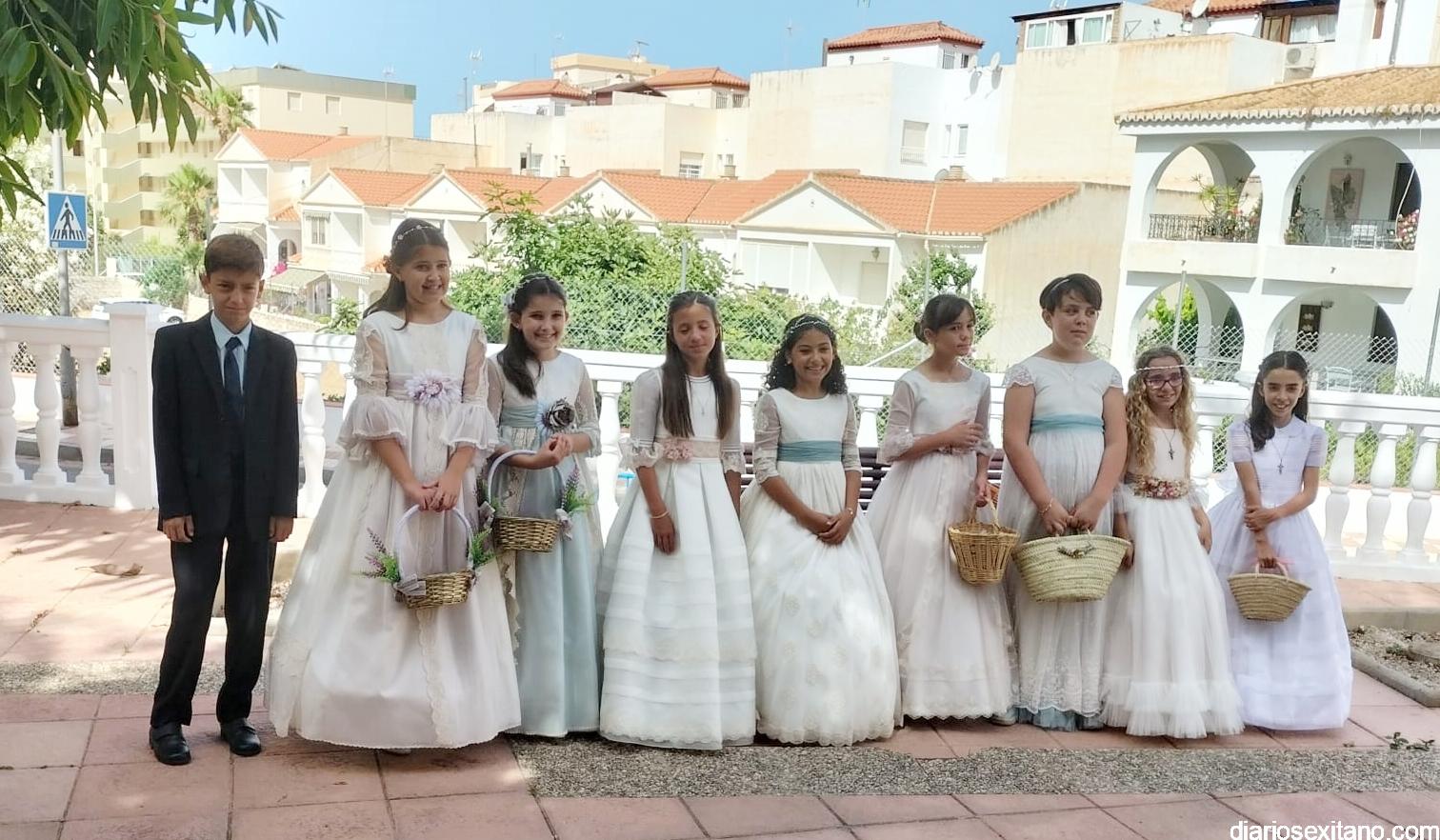 Los 19 niños y niñas que han realizado la Primera Comunión este año en La Herradura han sido los protagonistas junto al Santísimo Sacramento, de una sencilla y solemne procesión que ha recorrido el centro del casco antiguo para visitar dos altares montados por los vecinos y que se ubicaban en las calles Real y Príncipe.