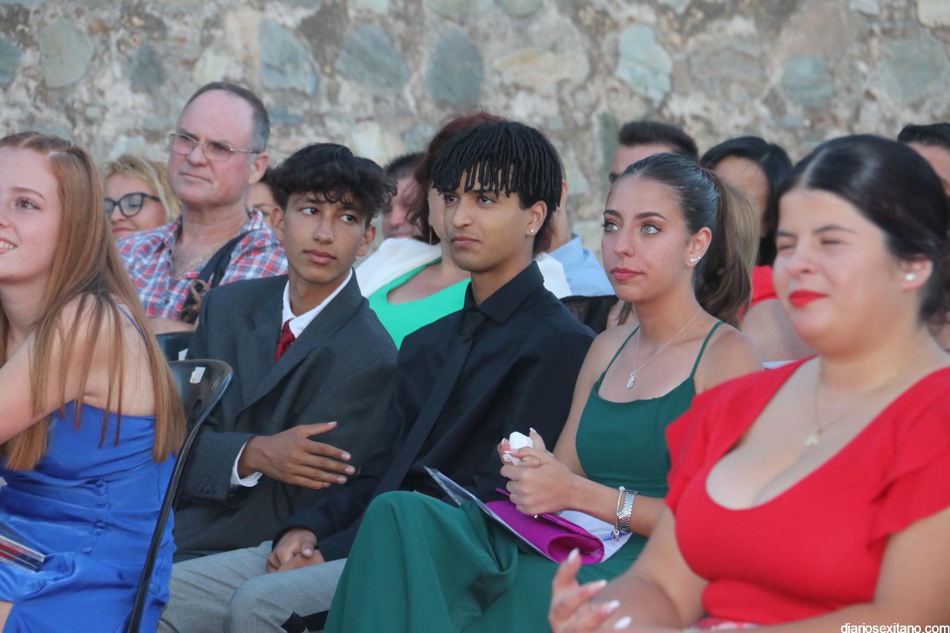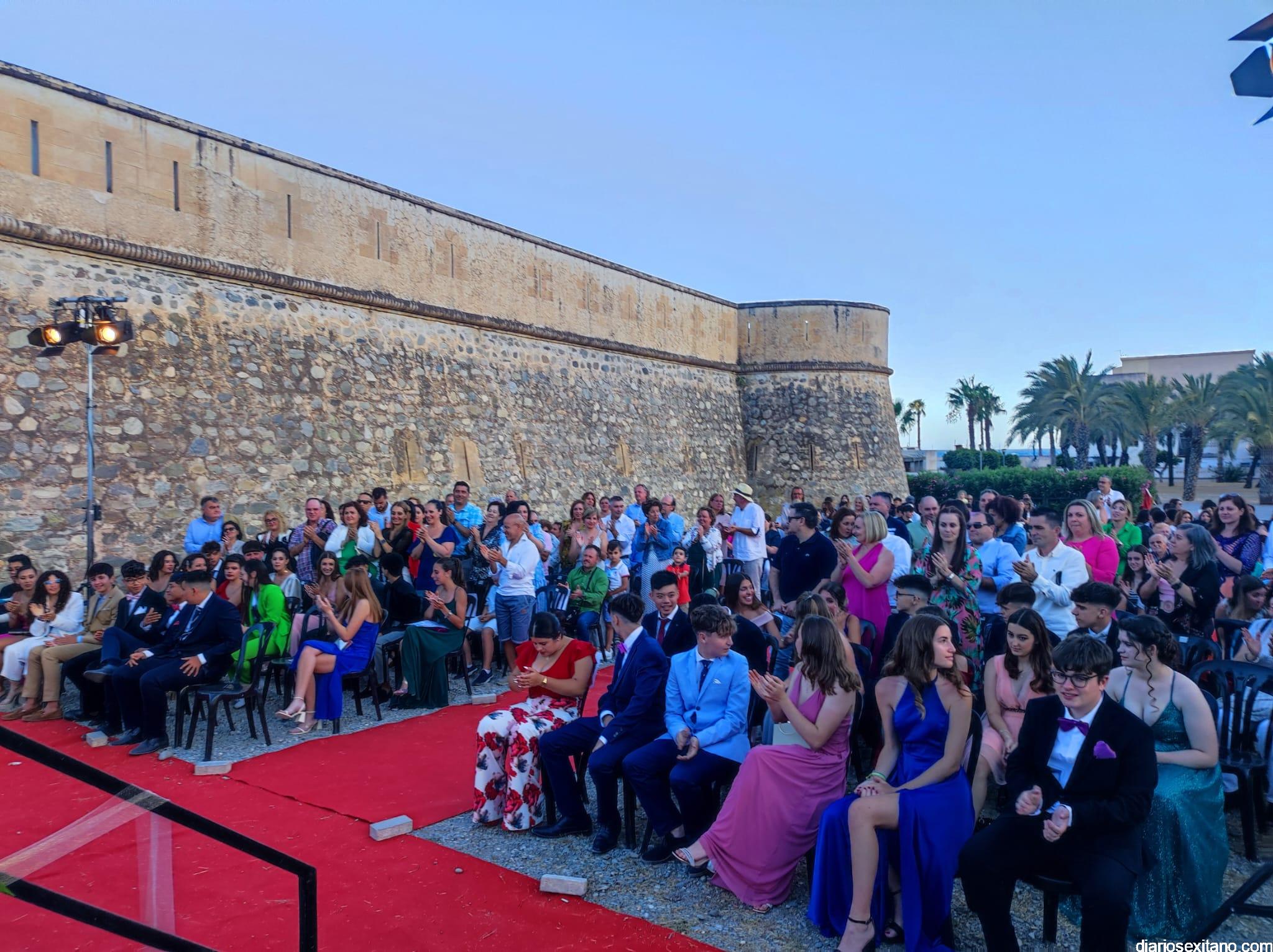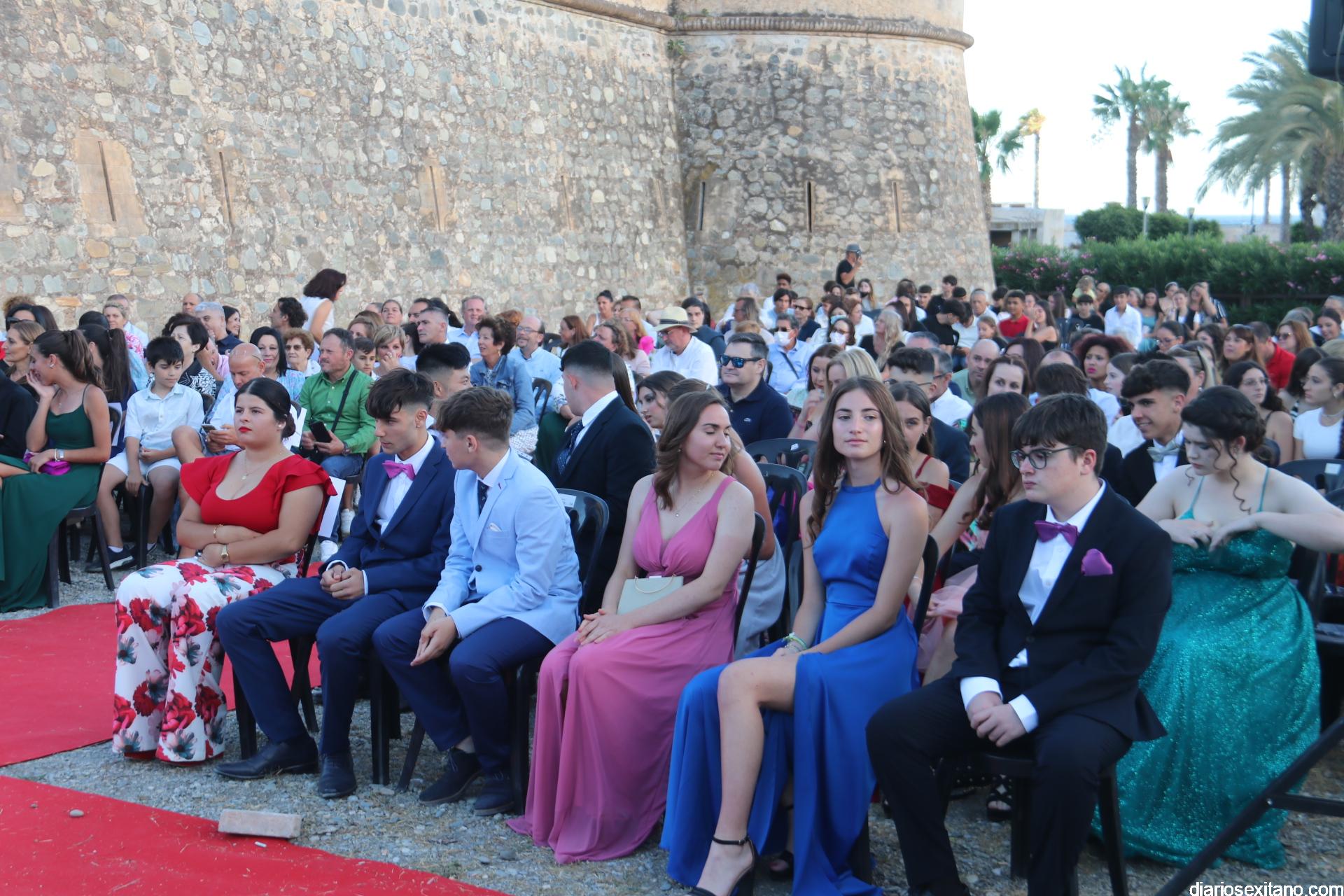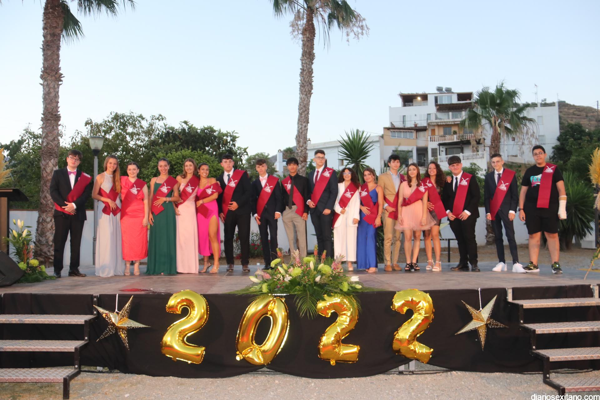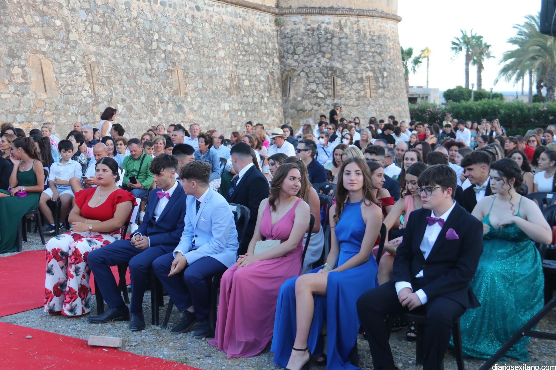 Con la proyección de fotos de de los alumnos y alumnas graduadas finalizó el acto de Graduación 2022 de la promoción 2018-2022 de Secundaria del IES Villanueva del Mar de La Herradura que tuvo como marco, un año más, los jardines del Castillo herradureño.