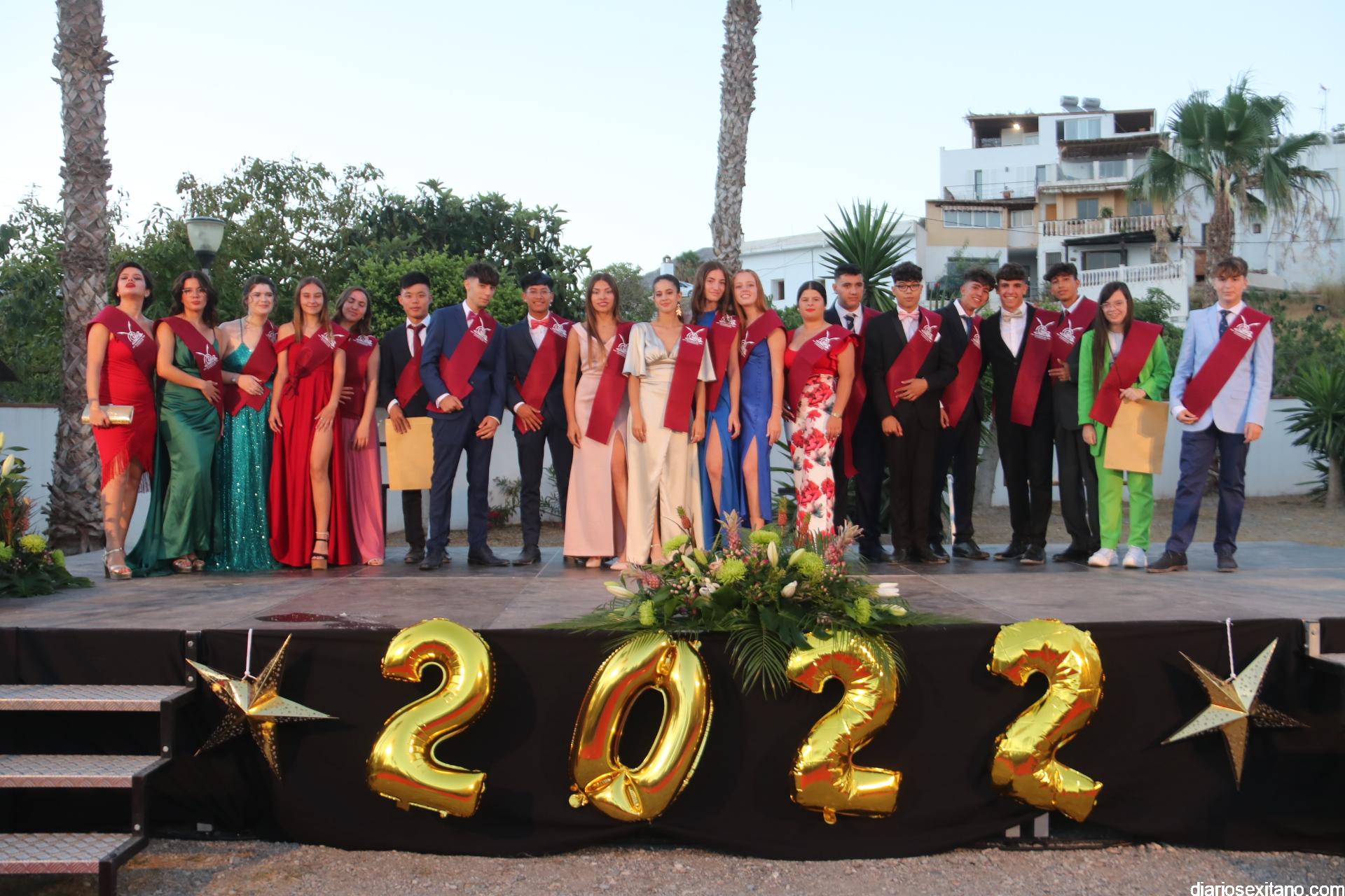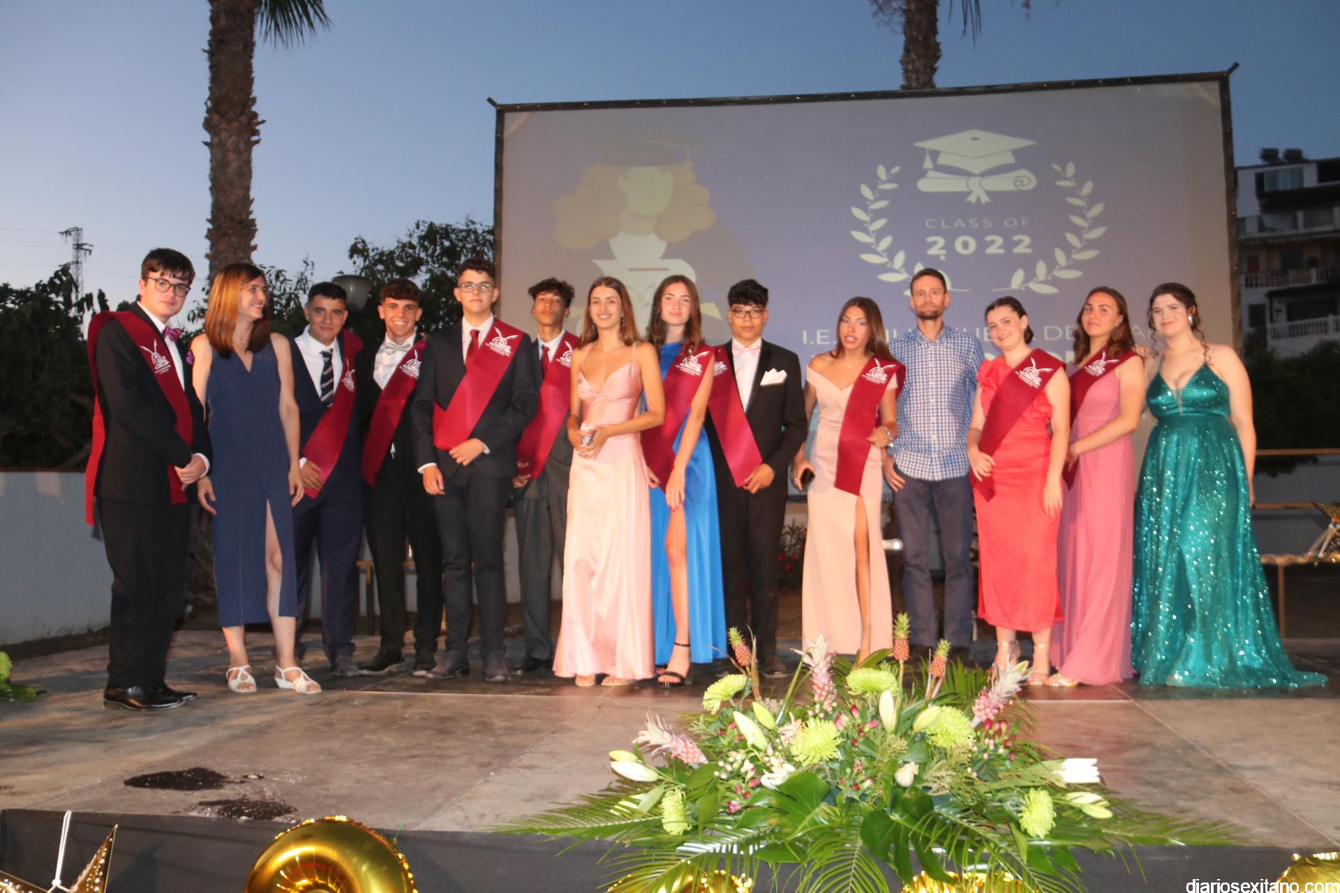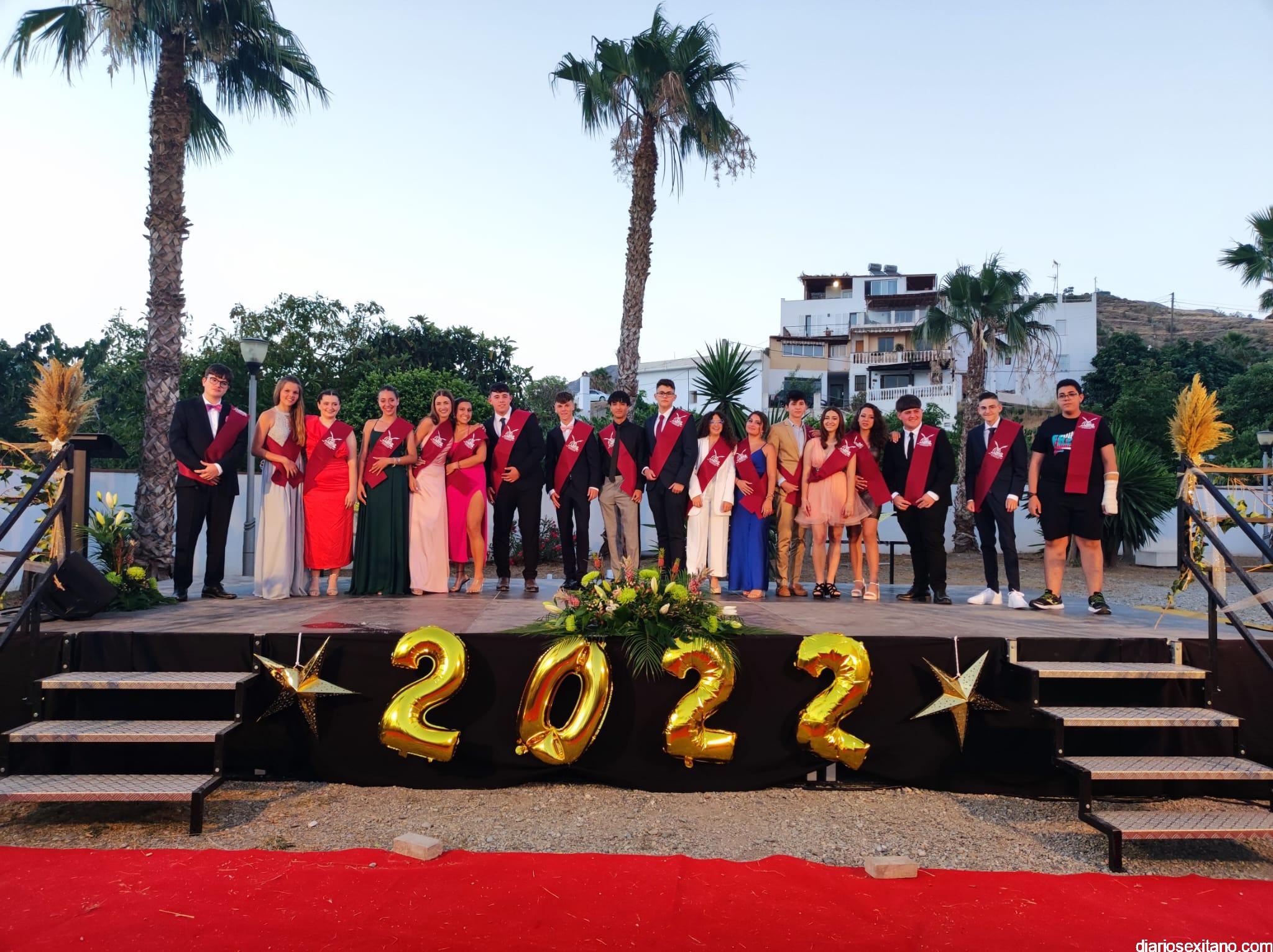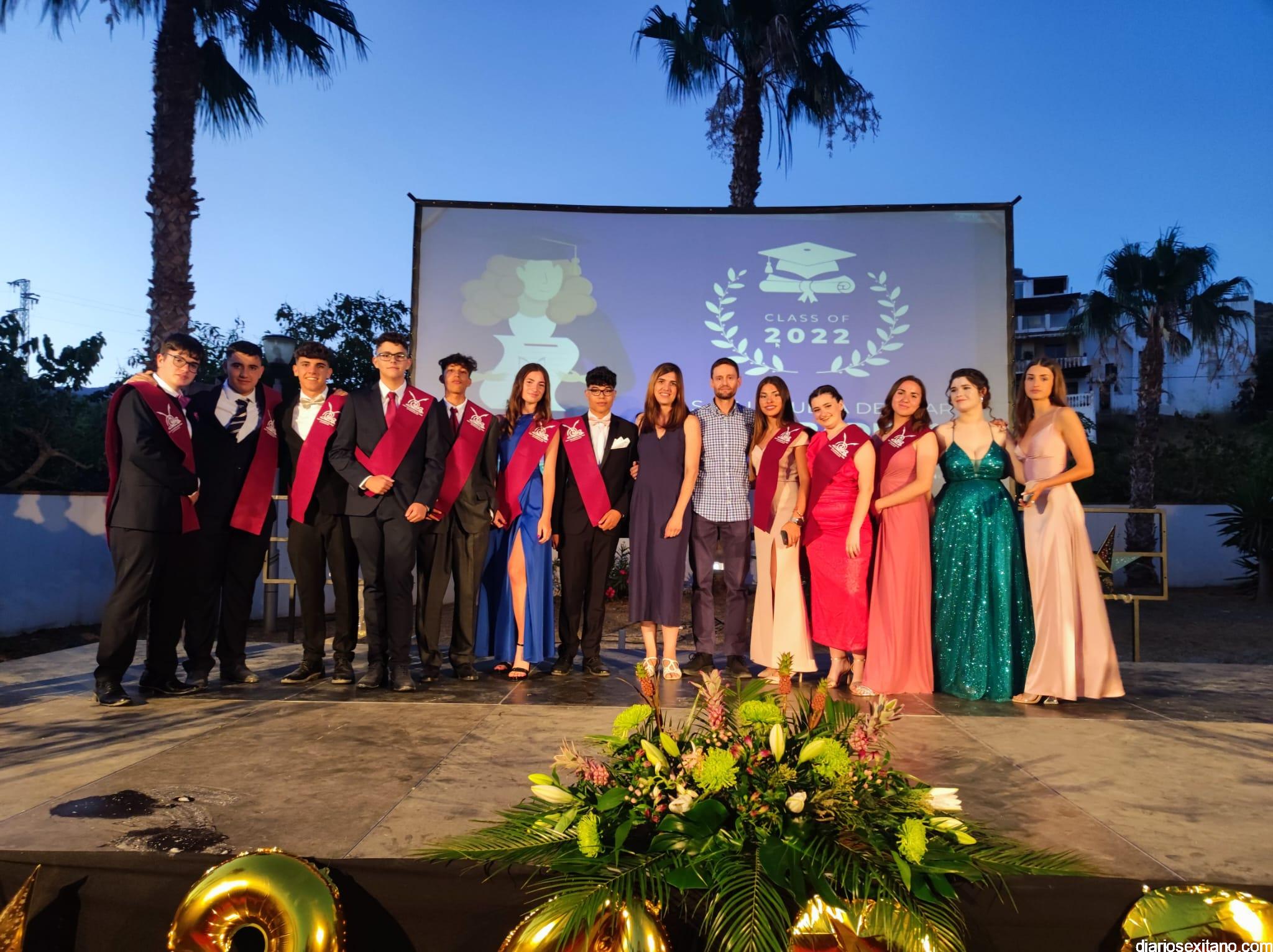 Con la proyección de fotos de de los alumnos y alumnas graduadas finalizó el acto de Graduación 2022 de la promoción 2018-2022 de Secundaria del IES Villanueva del Mar de La Herradura que tuvo como marco, un año más, los jardines del Castillo herradureño.