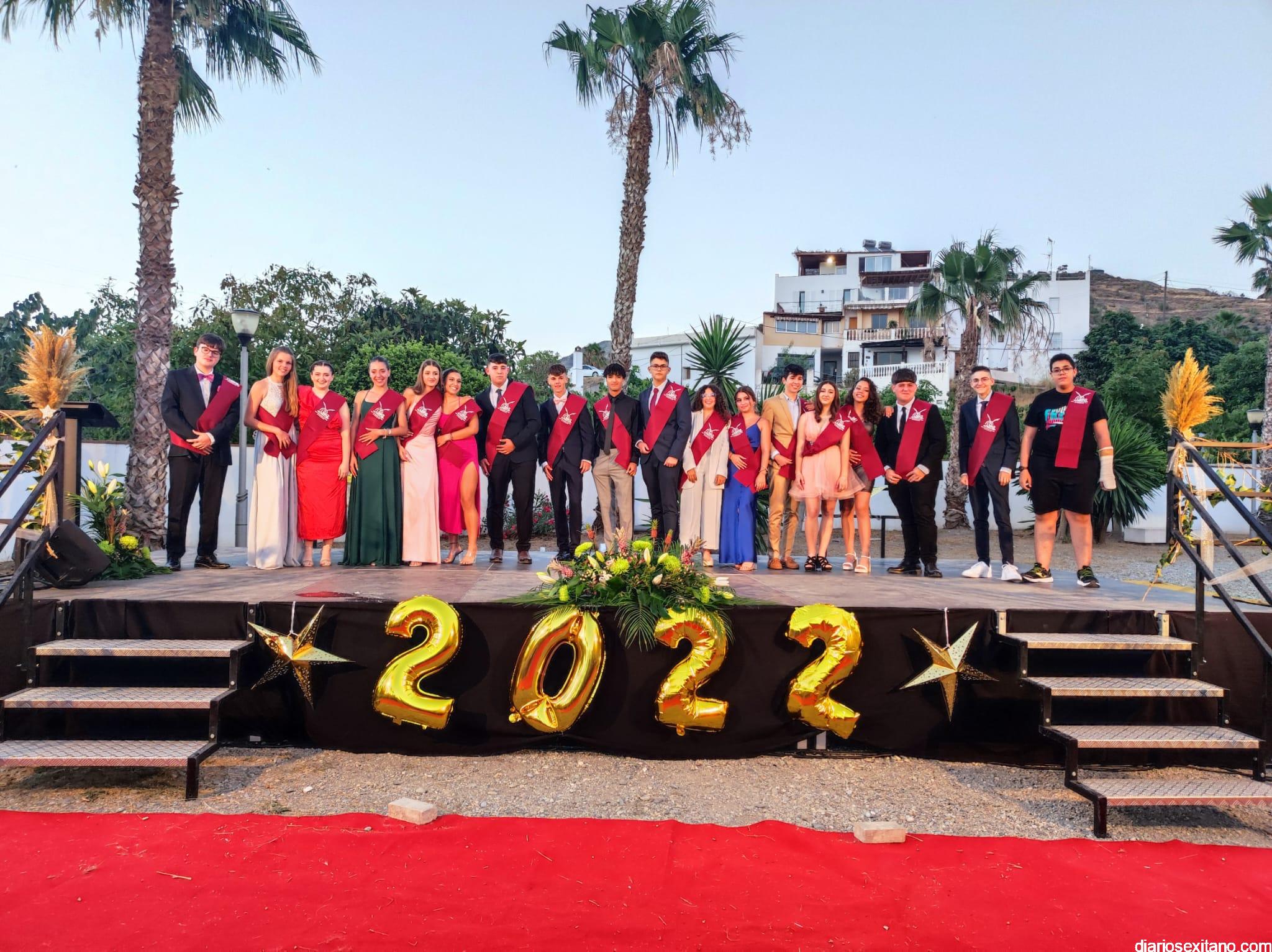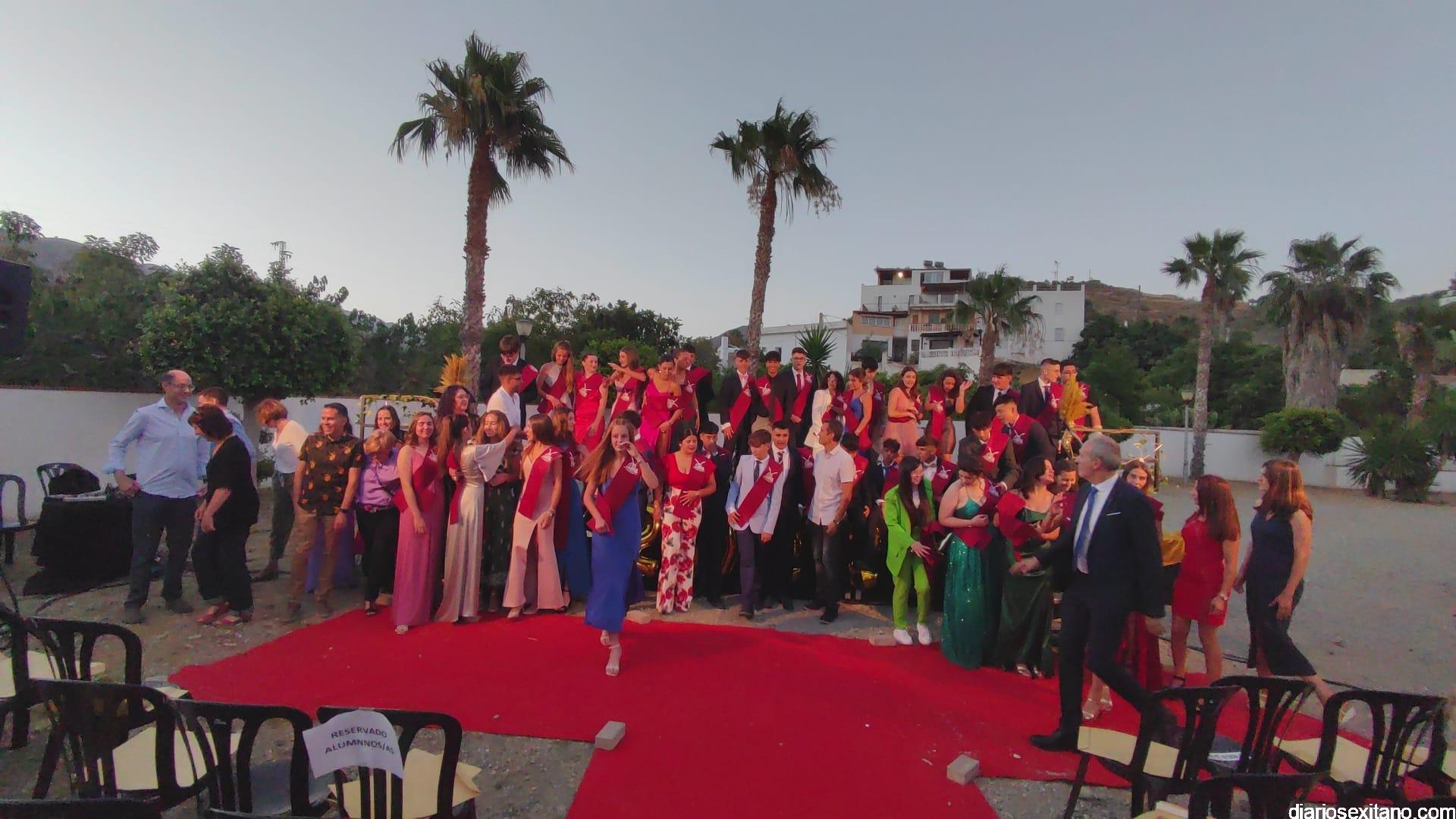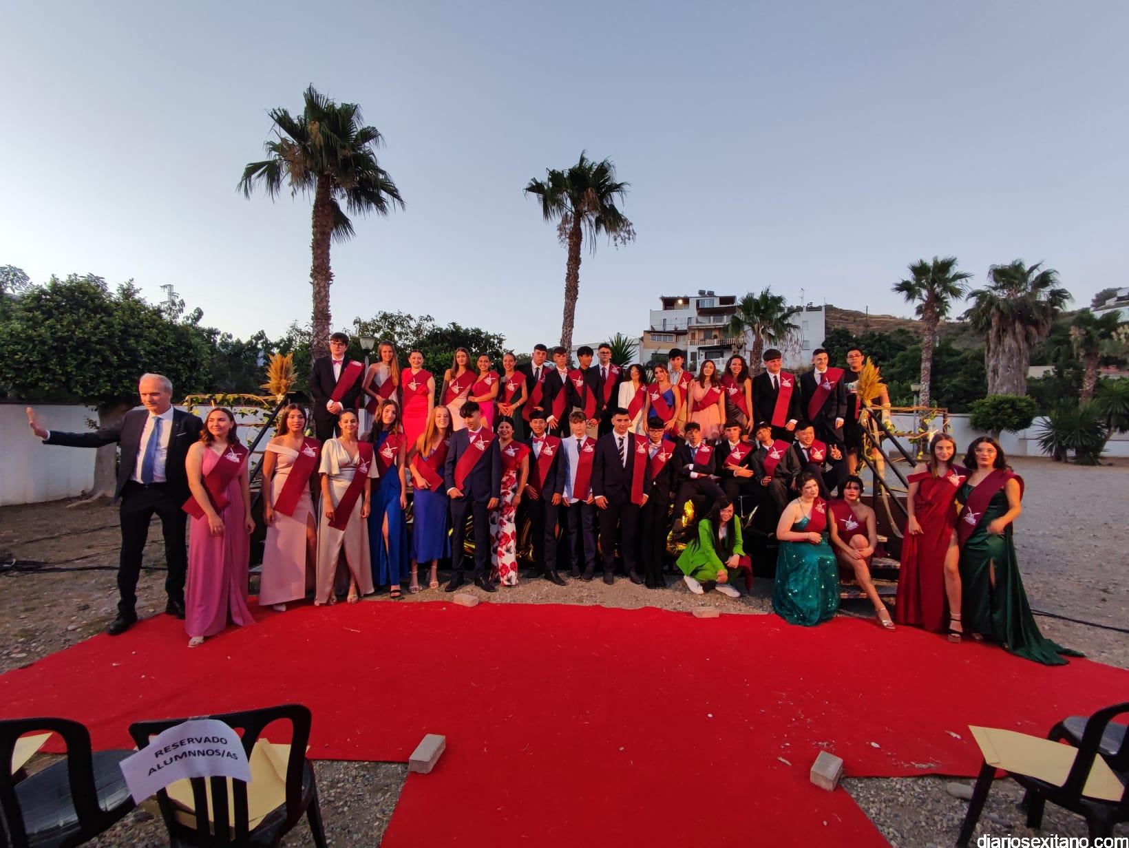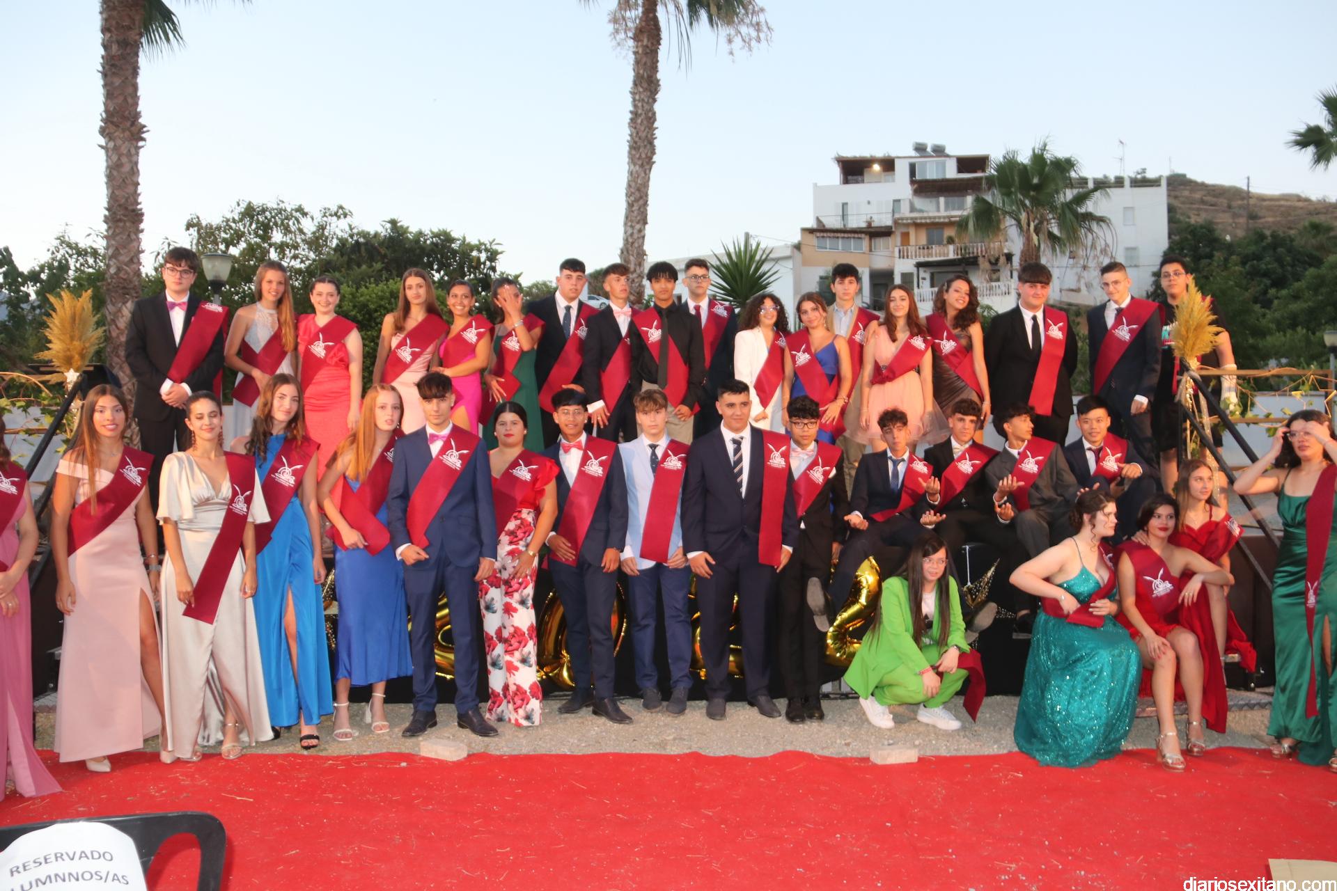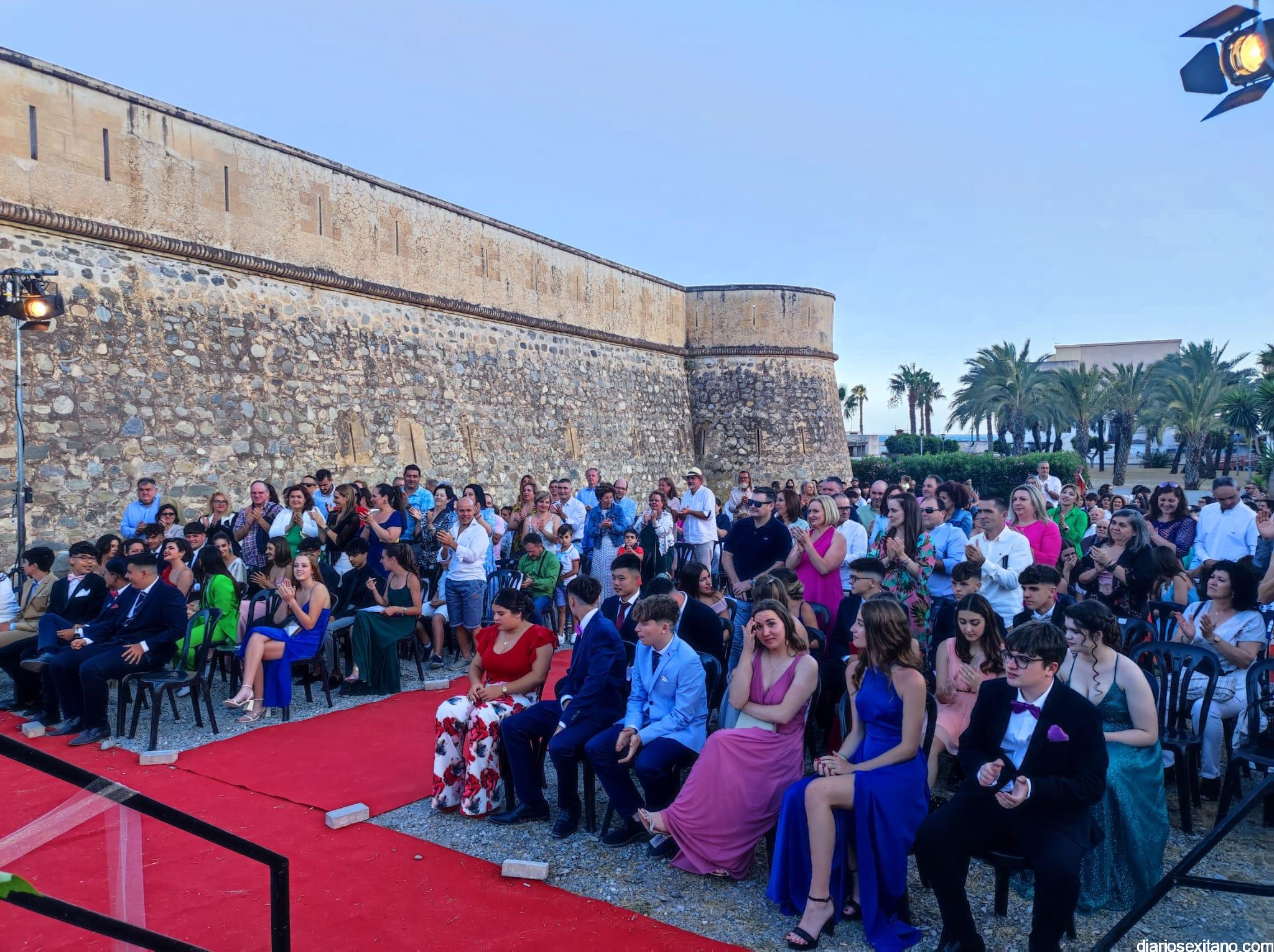 Con la proyección de fotos de de los alumnos y alumnas graduadas finalizó el acto de Graduación 2022 de la promoción 2018-2022 de Secundaria del IES Villanueva del Mar de La Herradura que tuvo como marco, un año más, los jardines del Castillo herradureño.