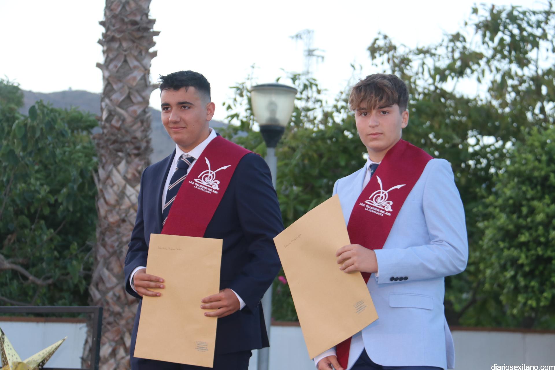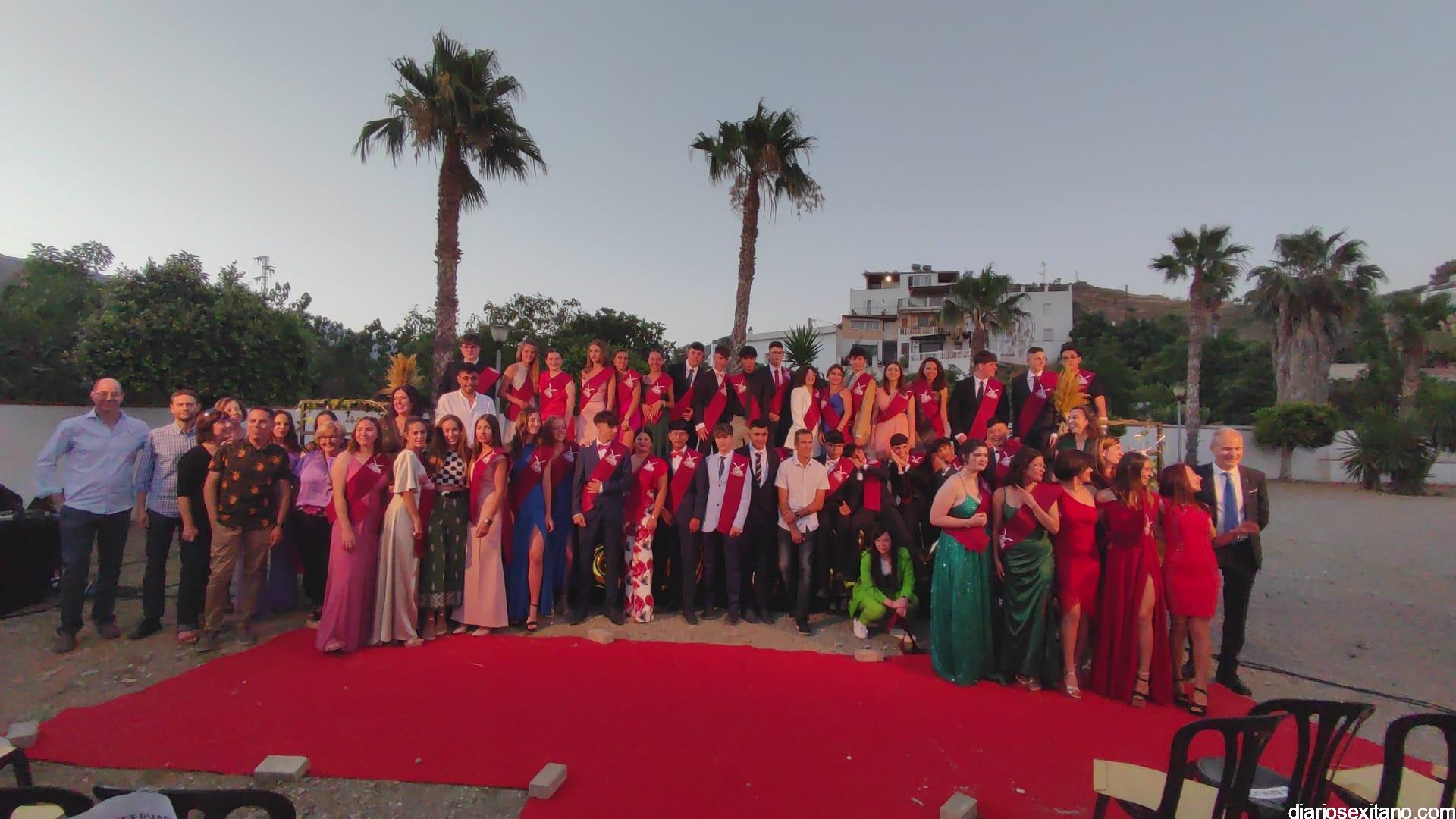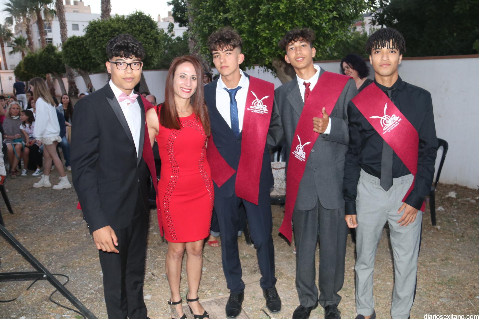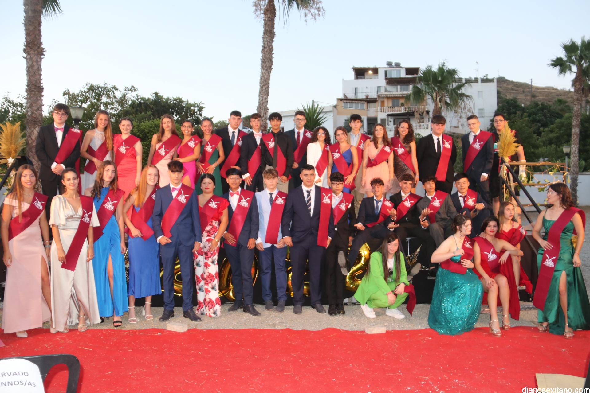 Con la proyección de fotos de de los alumnos y alumnas graduadas finalizó el acto de Graduación 2022 de la promoción 2018-2022 de Secundaria del IES Villanueva del Mar de La Herradura que tuvo como marco, un año más, los jardines del Castillo herradureño.