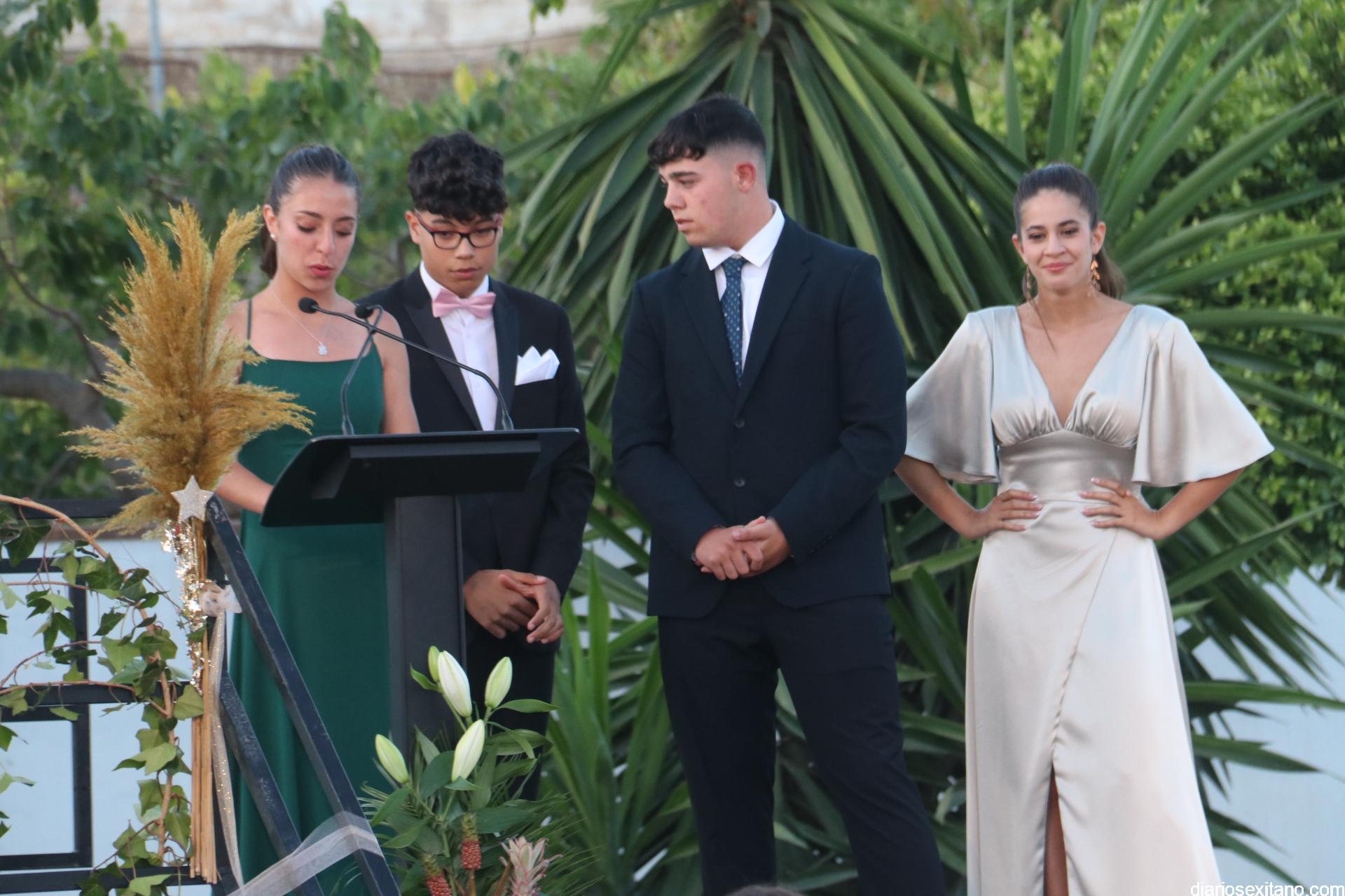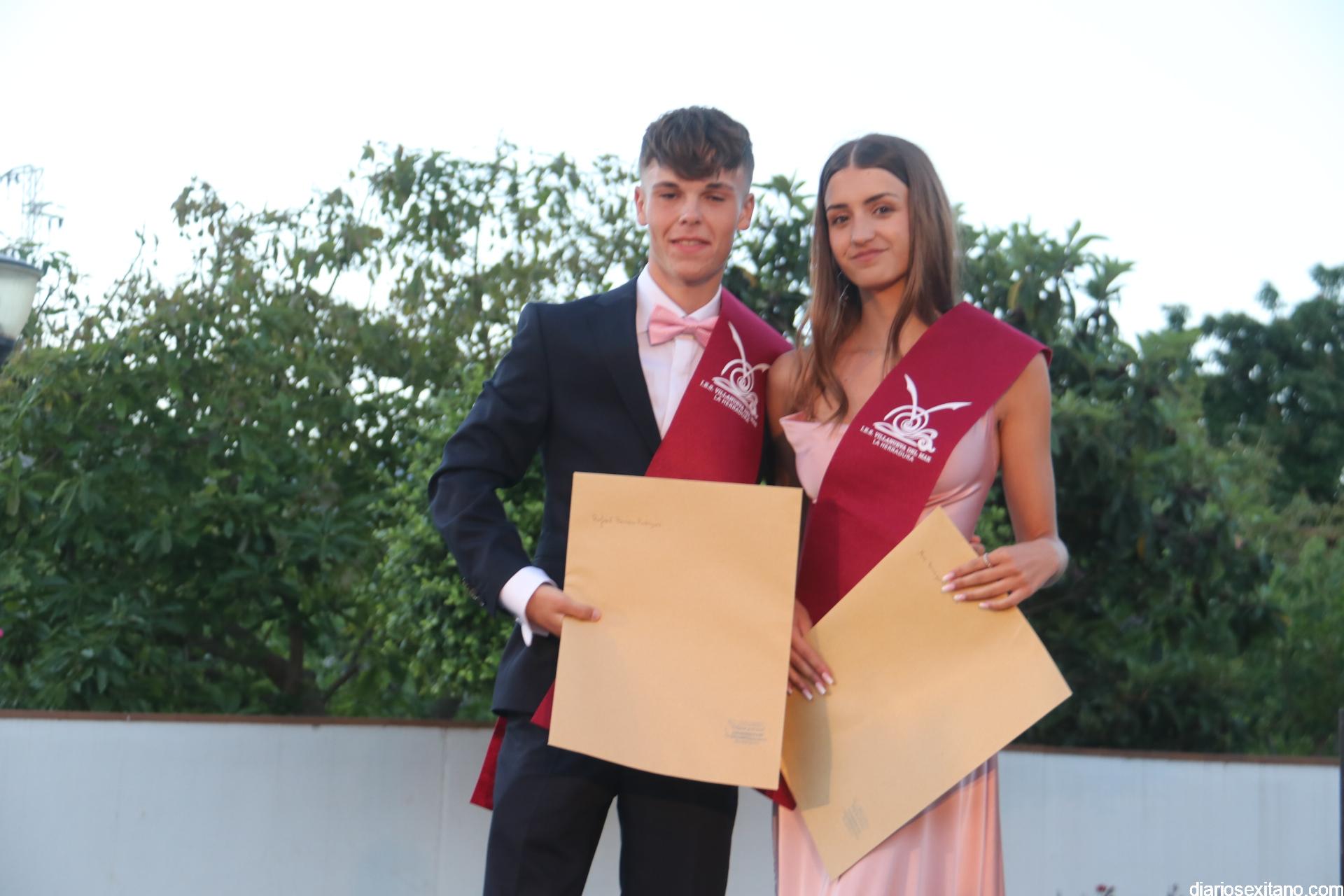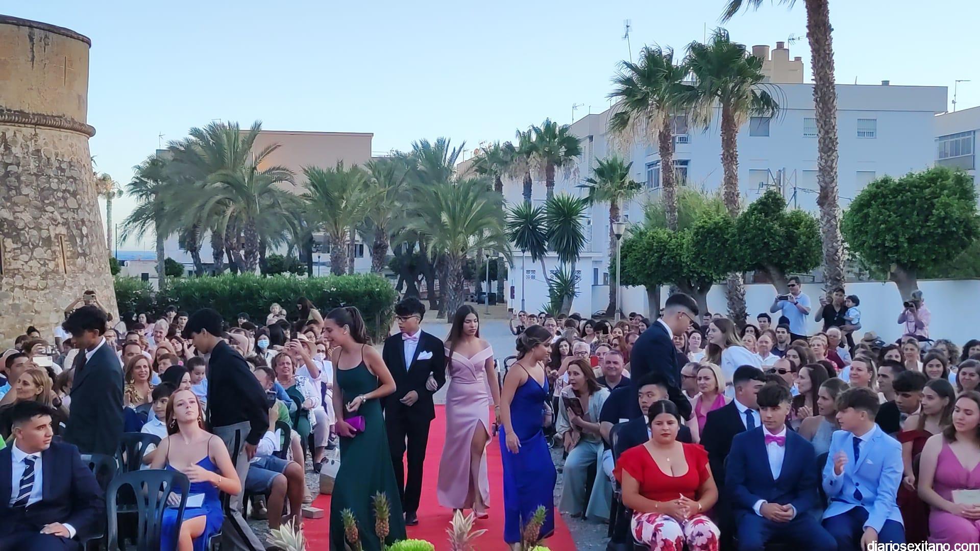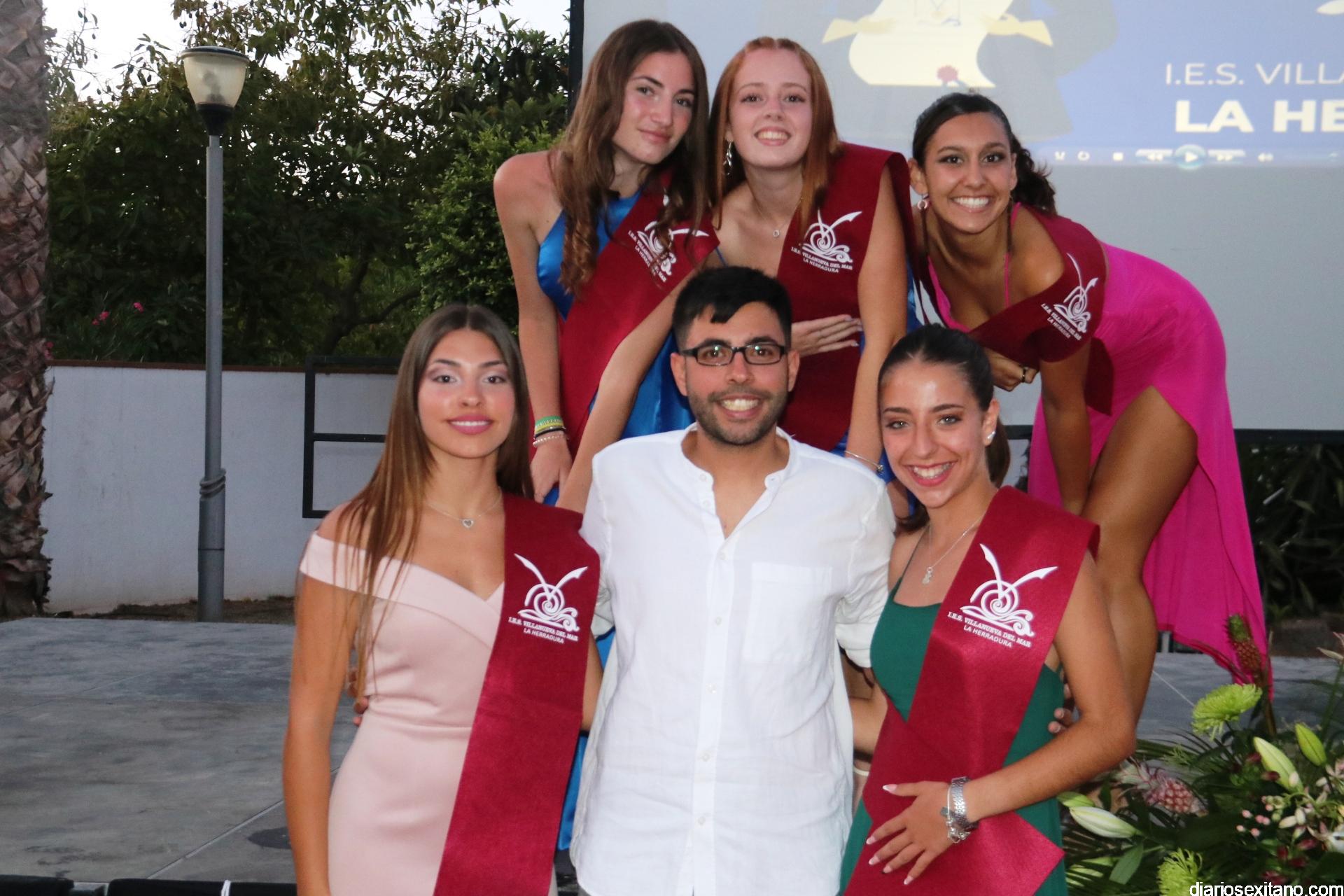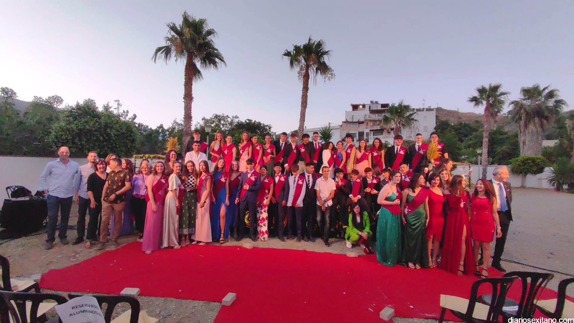 Con la proyección de fotos de de los alumnos y alumnas graduadas finalizó el acto de Graduación 2022 de la promoción 2018-2022 de Secundaria del IES Villanueva del Mar de La Herradura que tuvo como marco, un año más, los jardines del Castillo herradureño.