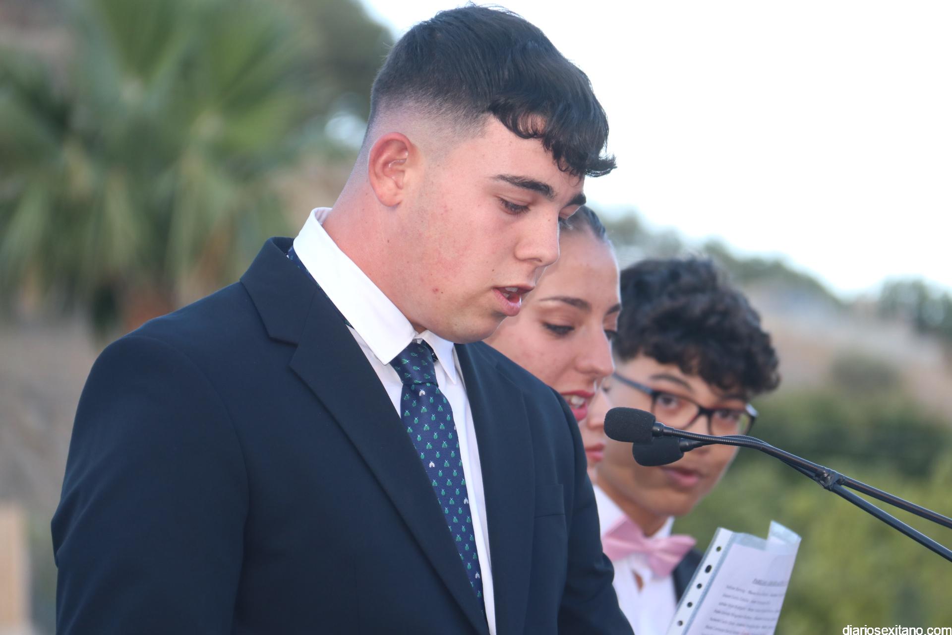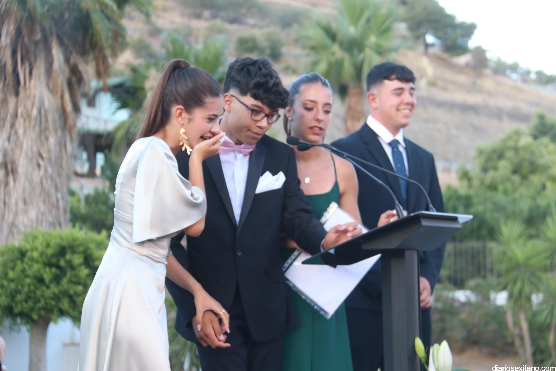 Como viene siendo habitual, una representación de alumnos y alumnas tuvieron palabras de despedida y agradecimiento para los profesores que han marcado su formación en los últimos años. Igual ocurrió con un profesor, en representación de los 24 que cuenta el IES herradureño. En representación de los padres y madres de alumnos le tocó leer el discurso final a Francisco Cabrera de Haro.