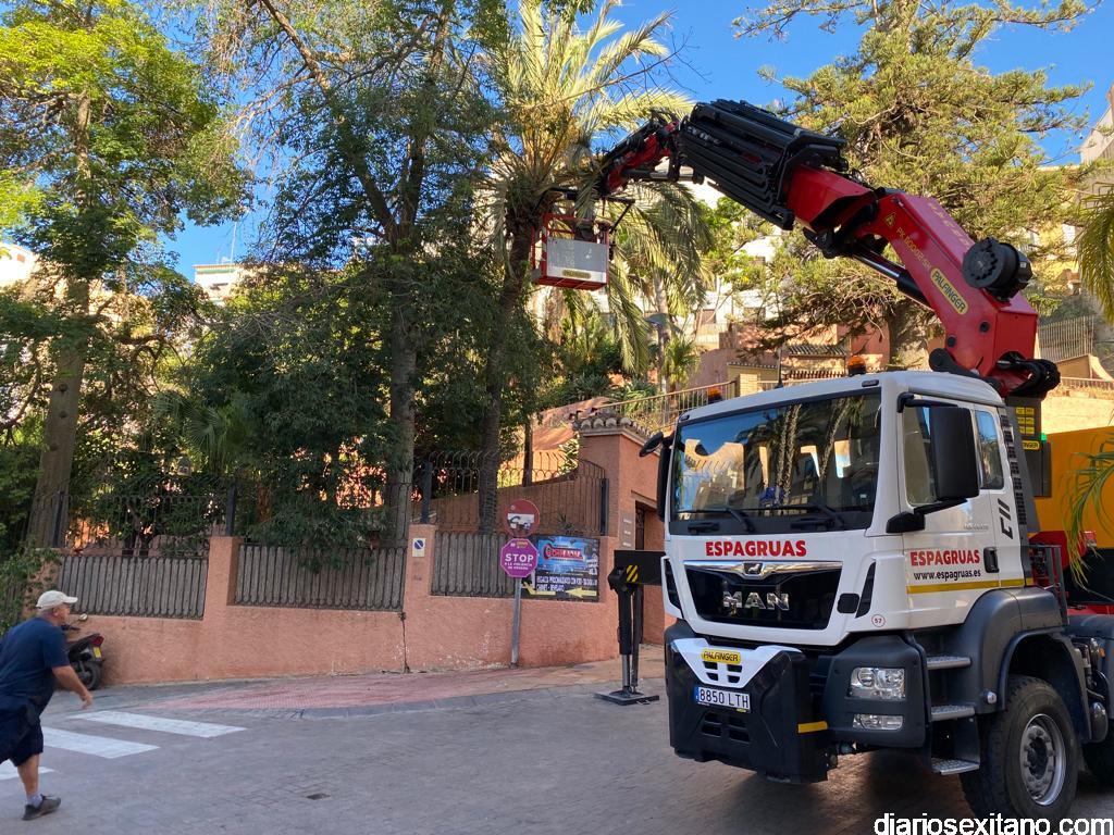 “Los trabajos requirieron medios elevadores, por lo que hubo que cerrar al tráfico las vías colindantes para que fuera ocupada por un camión grúa. Aprovechando esta actuación se ha procedido también a la limpieza de otras plantas y palmeras de altura”, explicó el edil.