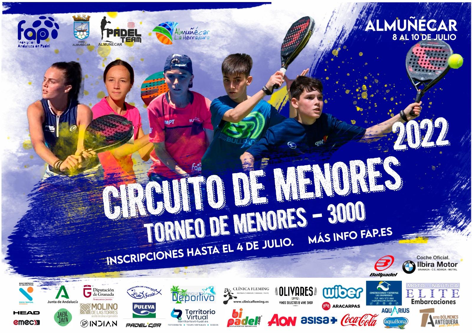 Almuñécar y La Herradura se convertirán en el centro de atención del pádel andaluz sub 23 del 8 al 10 de julio ya que acogerá el Campeonato de Andalucía, tanto masculino como femenino. Paralelamente, en las mismas fechas, tendrá lugar un torneo de menores 3000 inscrito dentro del Circuito de Menores.