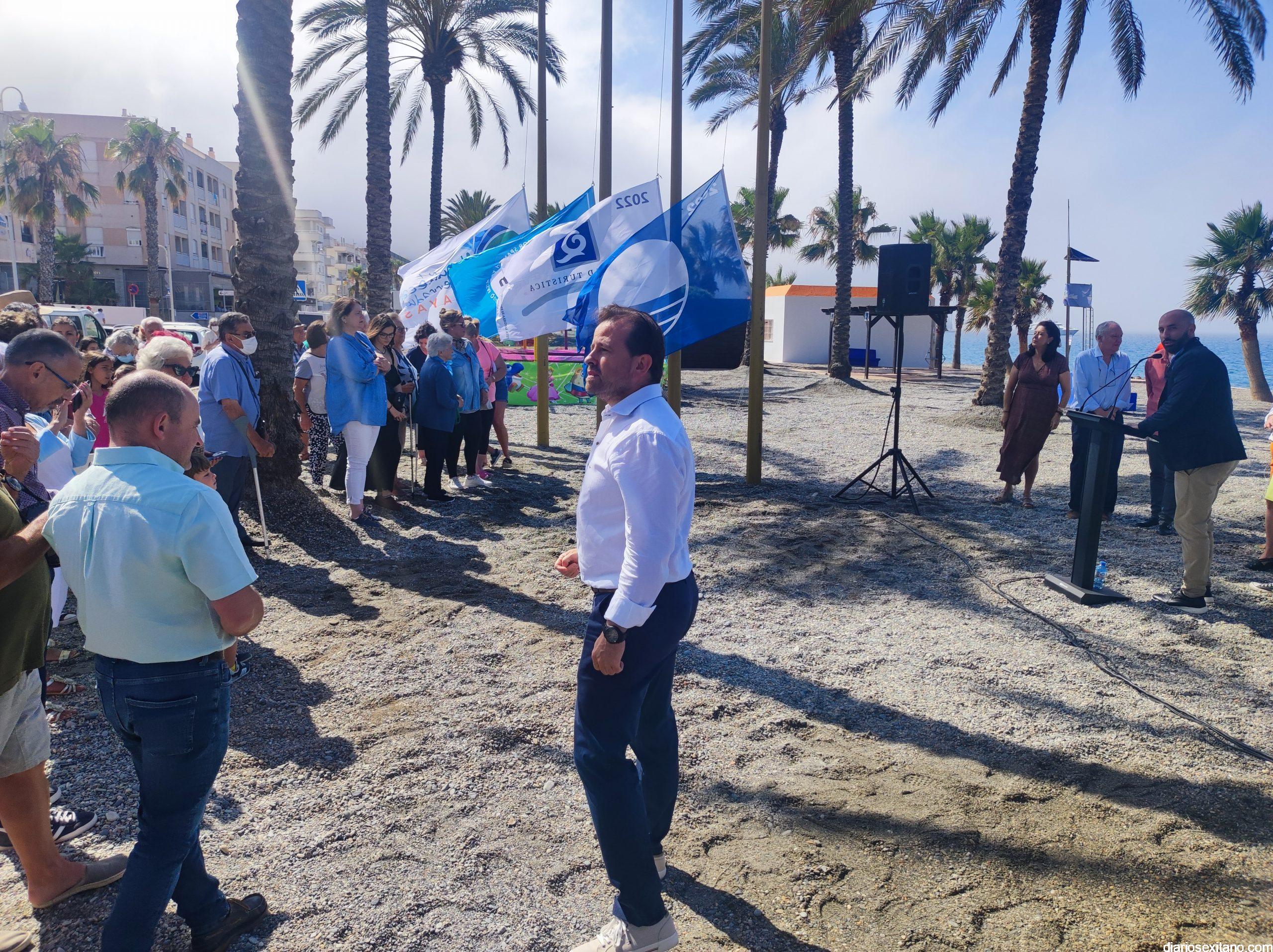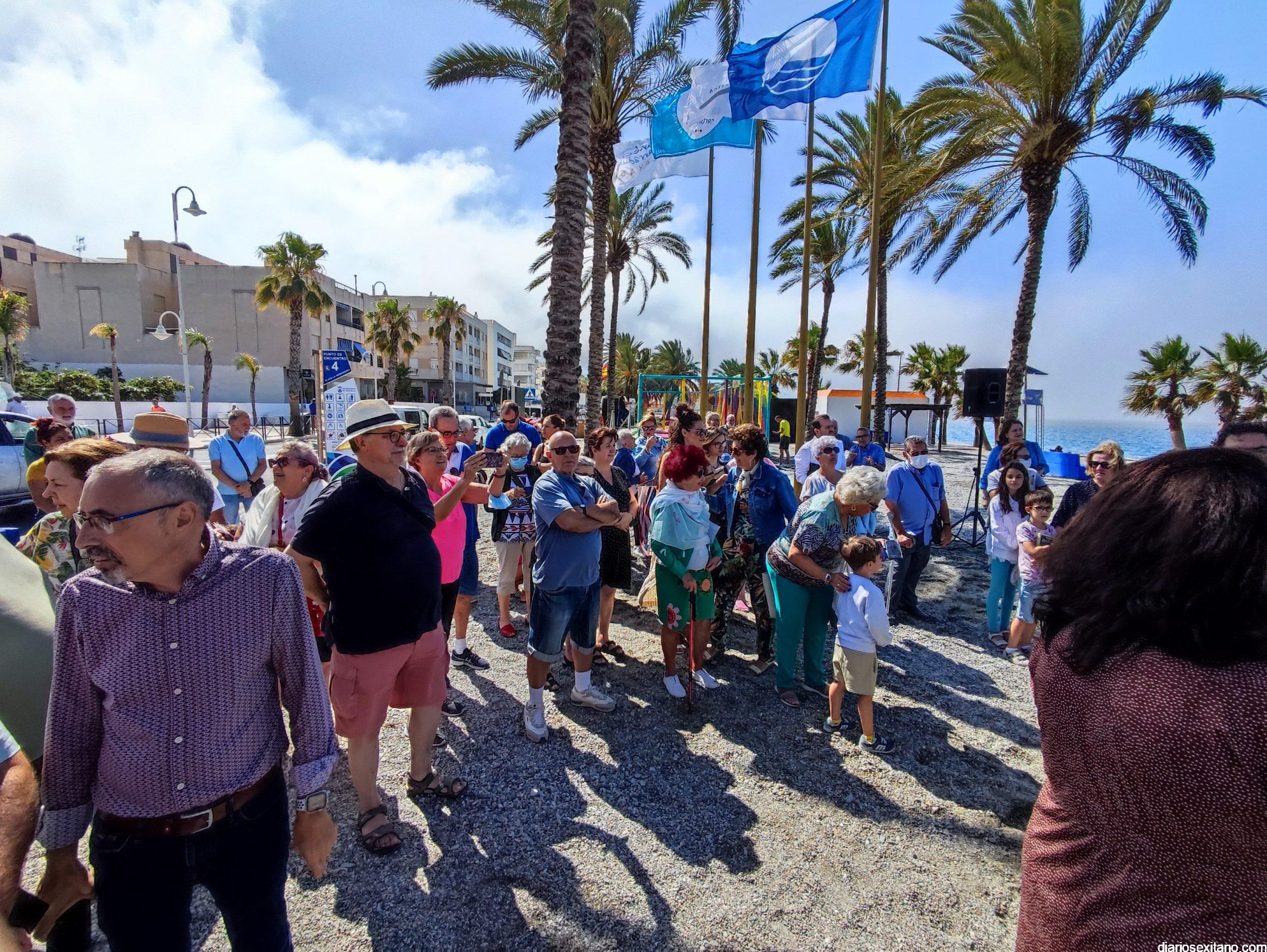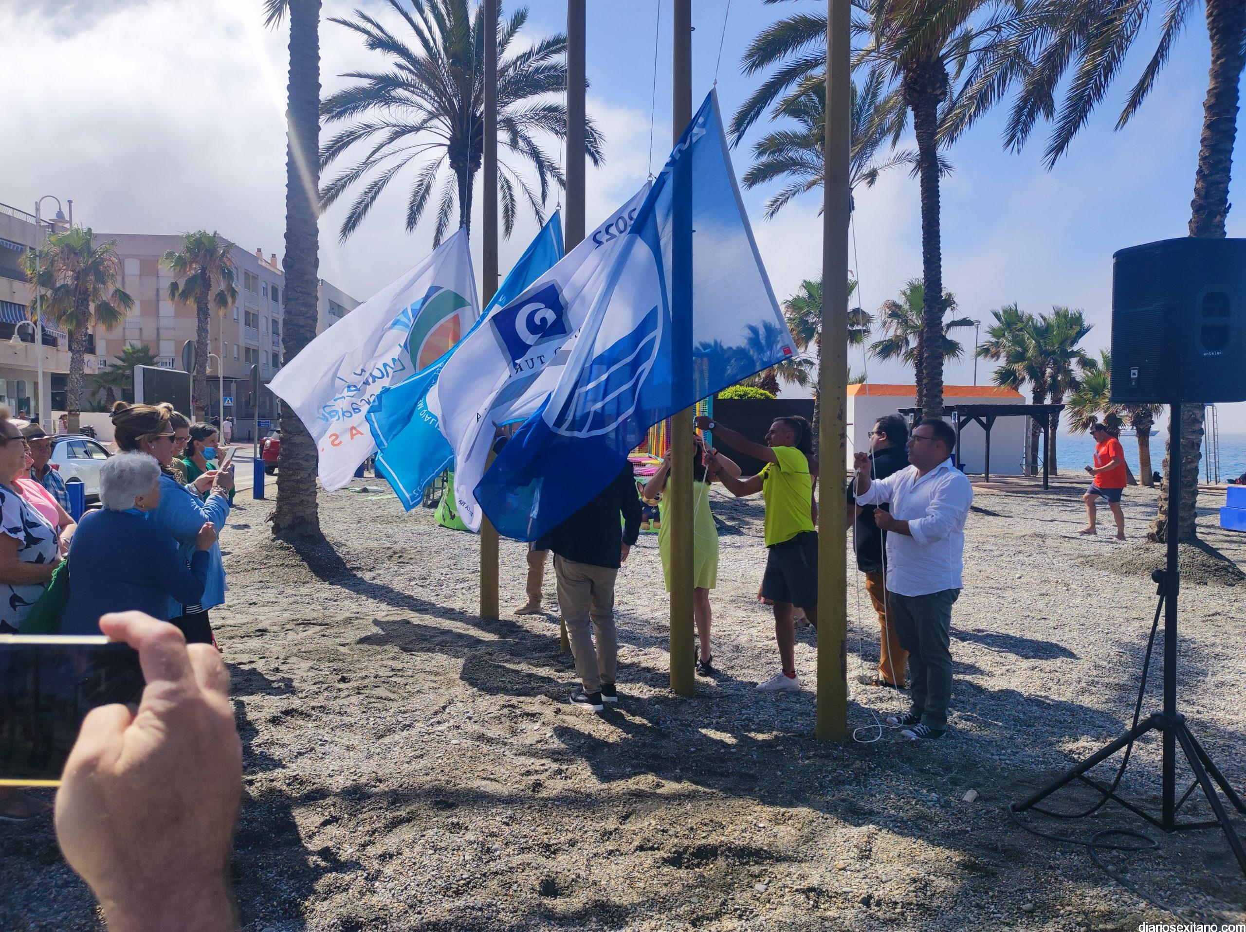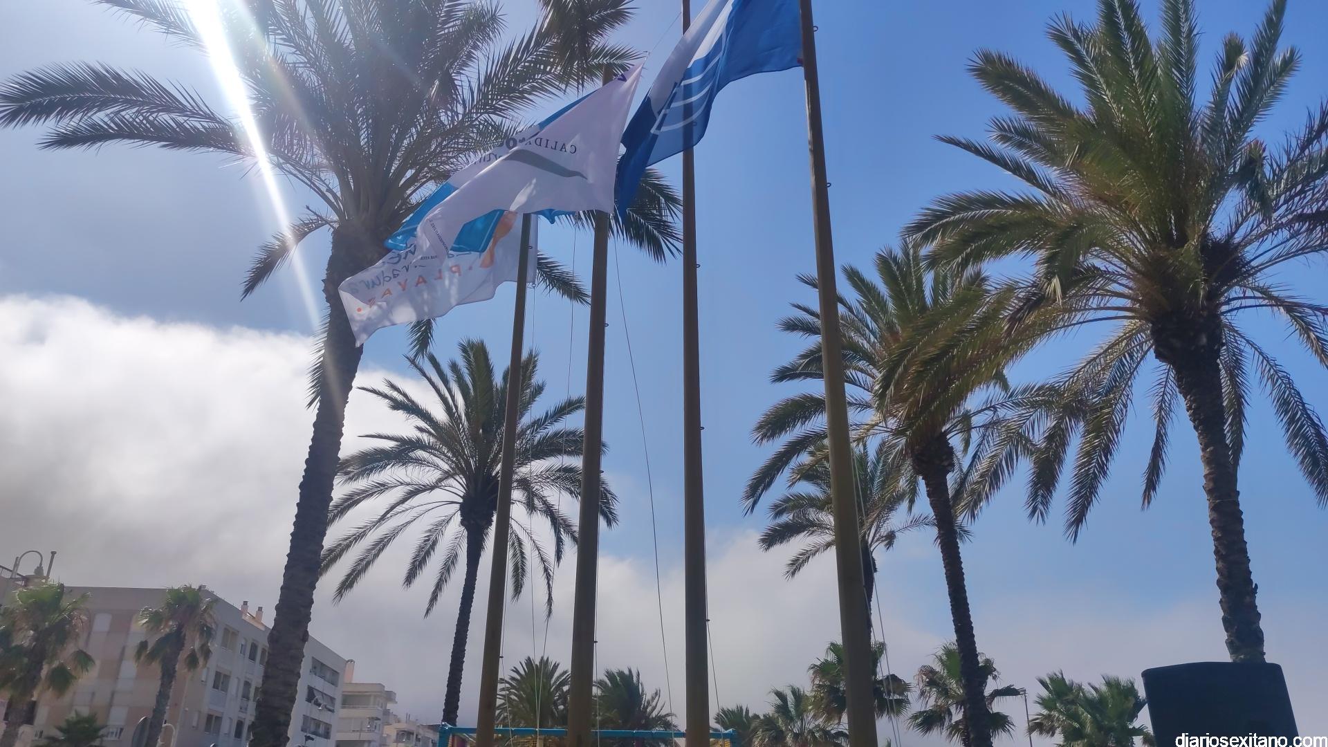 También se han izado las banderas con las que se ha galardonado la playa herradureña: Azul, Q de calidad y Safe Life.