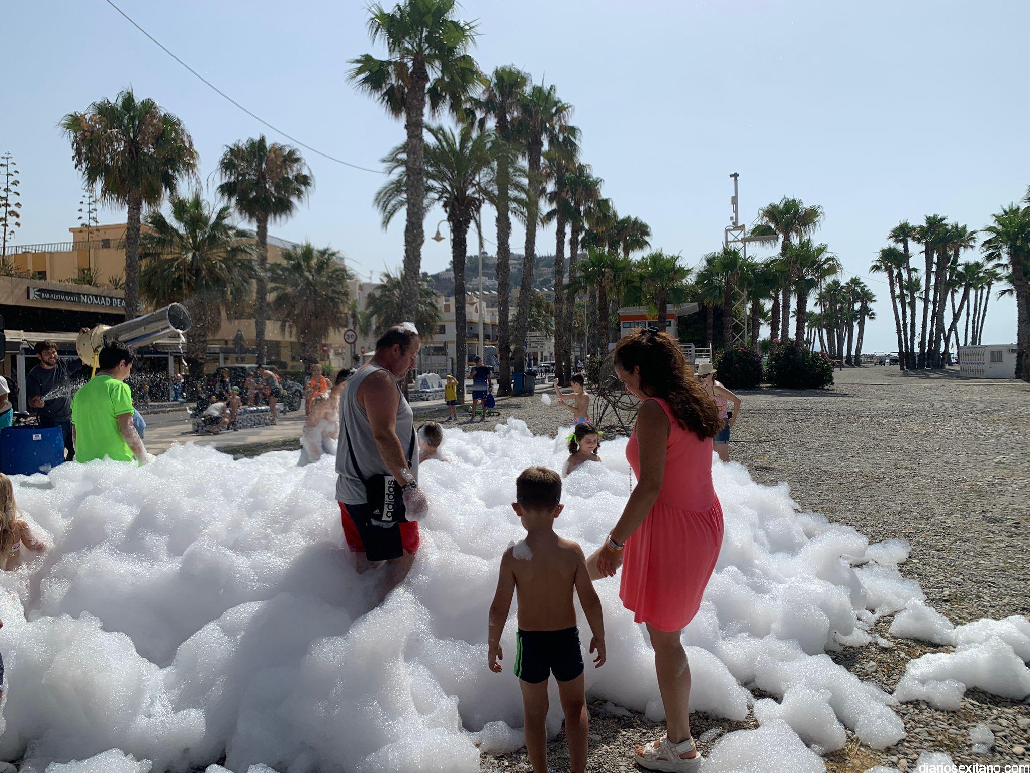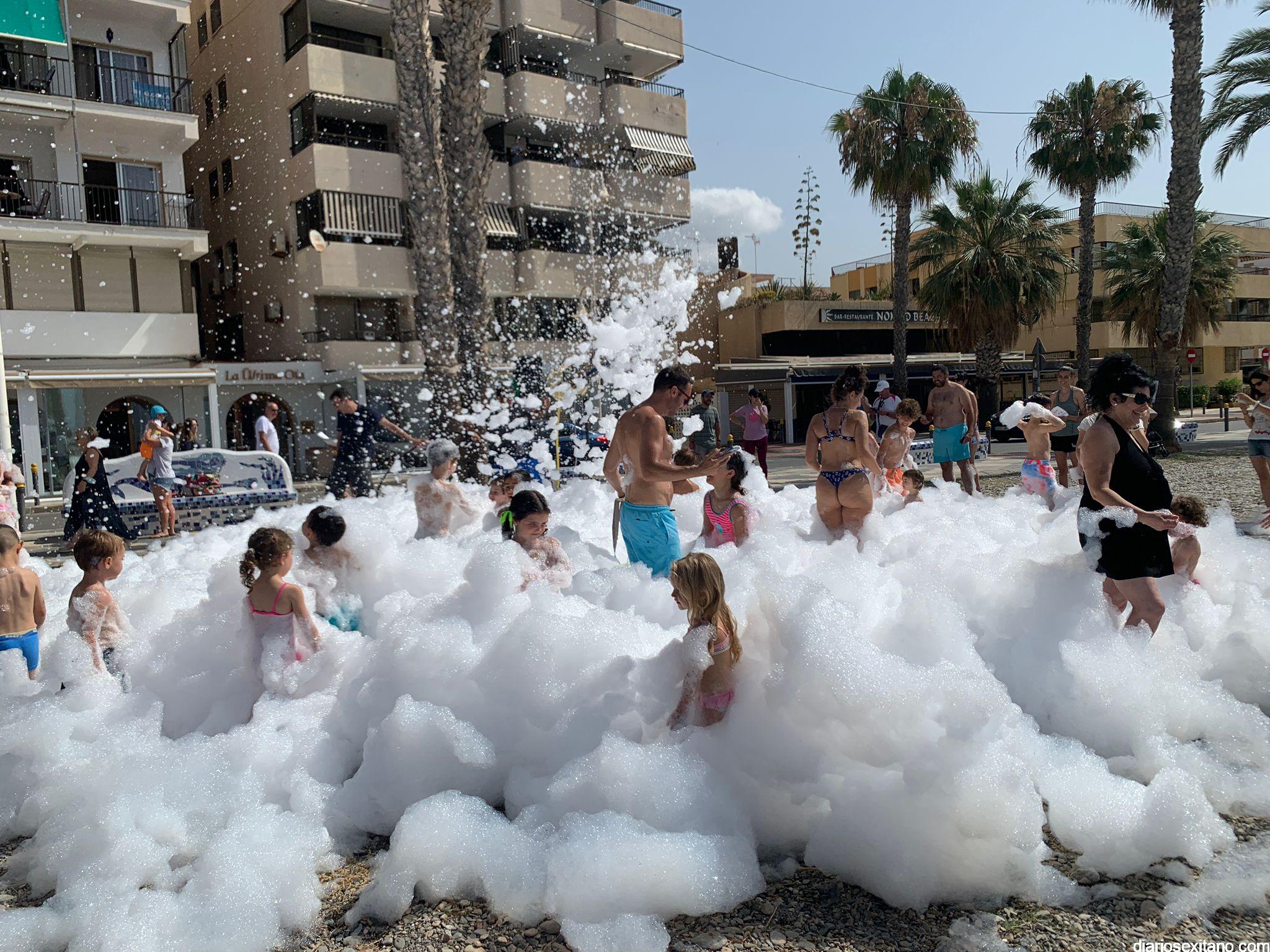 Este sábado pequeños y algunos mayores han disfrutado una gran “Fiesta de la Espuma”, en la playa Puerta del Mar. “Con este evento se ha dado la bienvenida al verano y a este nuevo programa que, afortunadamente, volvemos a retomar. Para ello, contaremos con propuestas variadas, que pasan por actividades deportivas y de ocio, teniendo como protagonista la playa o la Casa de la Juventud, además de excursiones y actividades….queremos que los jóvenes de nuestro municipio participen y disfruten de la agenda que lanzamos, con la intención de que sea del agrado de todos. Pretendemos que los jóvenes sean protagonistas y se interrelacionen en todo aquello que les gusta hacer en el tiempo libre”, manifestó la teniente de alcalde y delegada de Juventud, Beatriz González, que asistió al evento acompañada del edil de Hacienda, Rafael Caballero.