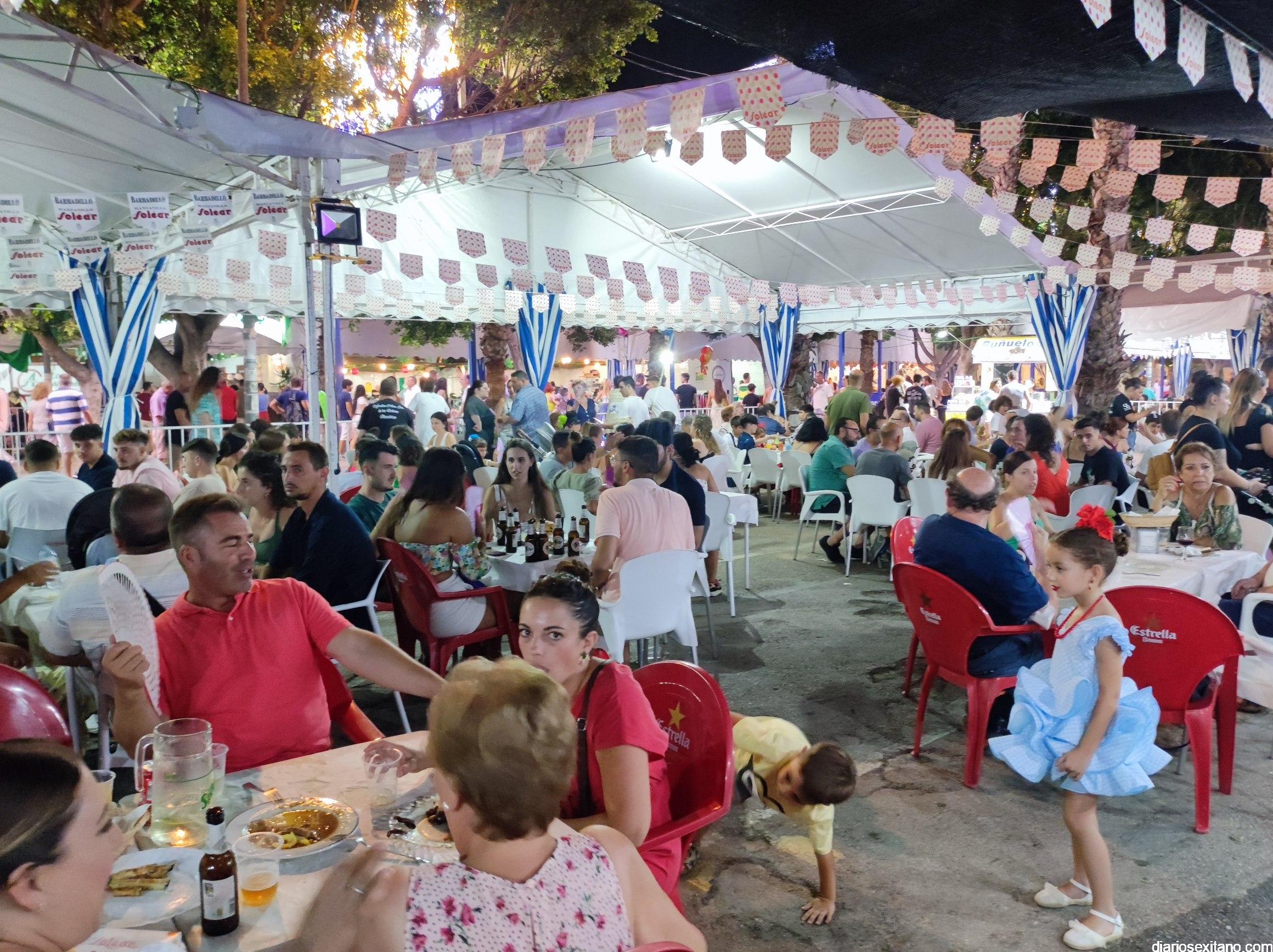 No tardaron en llenarse las siete casetas que ocupan el ferial este año con las cofradías Nazareno, Dolores y Esperanza, junto con los grupos políticos de PP, IU Podemos y CA a los que se añadió un casetero más. En la Caseta Municipal, con mayor espacio y sin techo, con una bonita decoración de luces….los ritmos lo pusieron el DJ. Kokodrilo y el grupo Tentación.