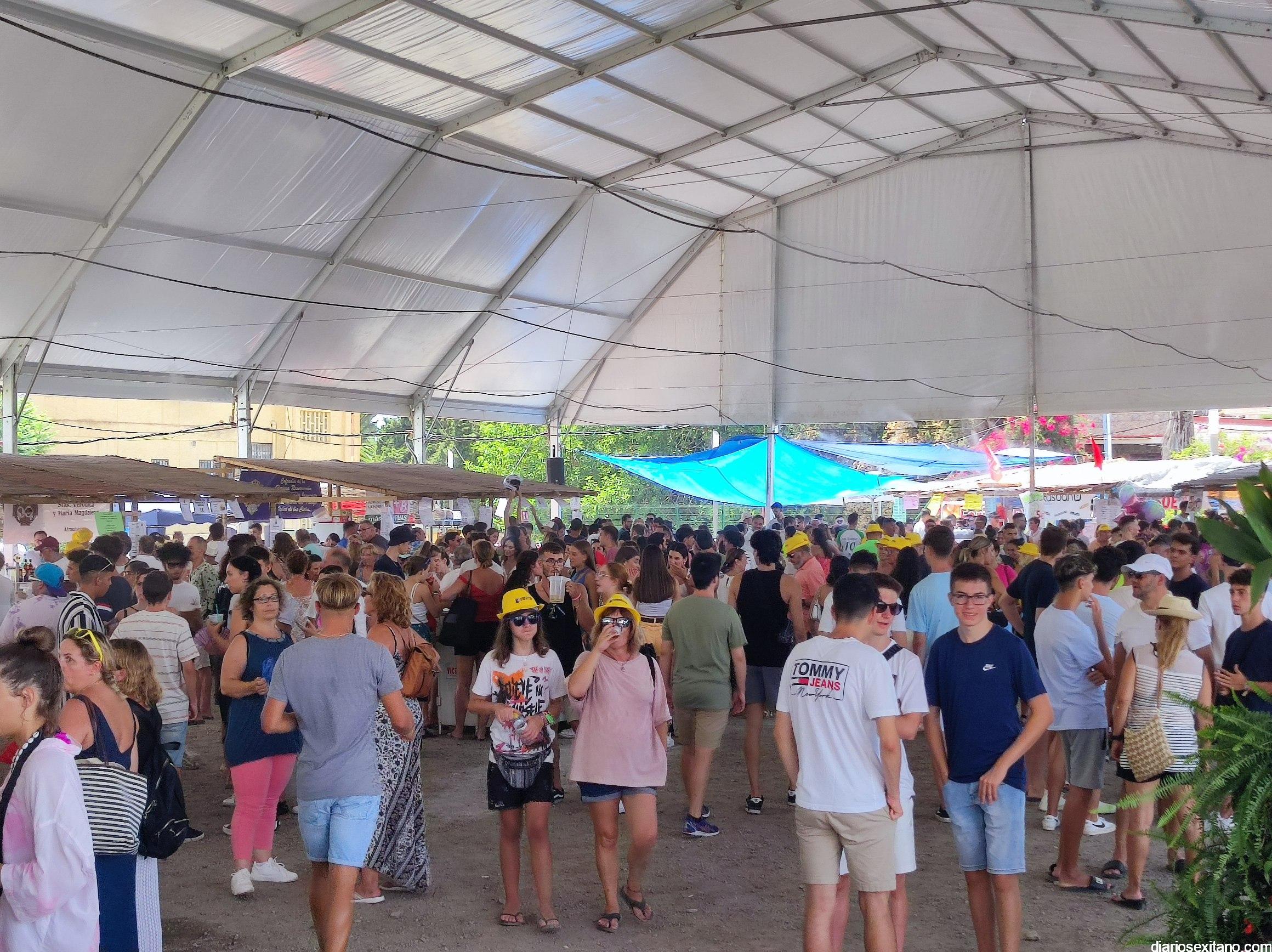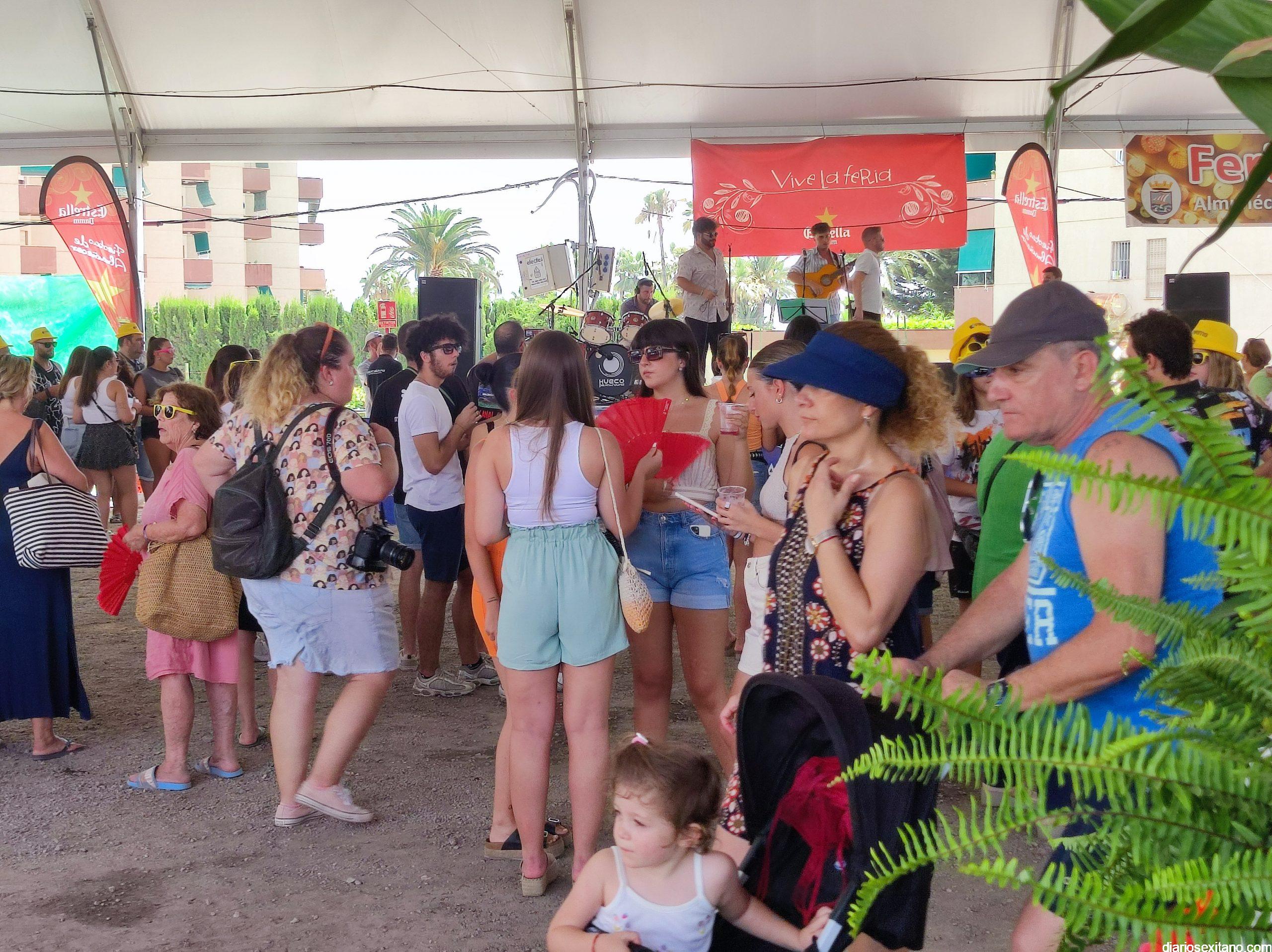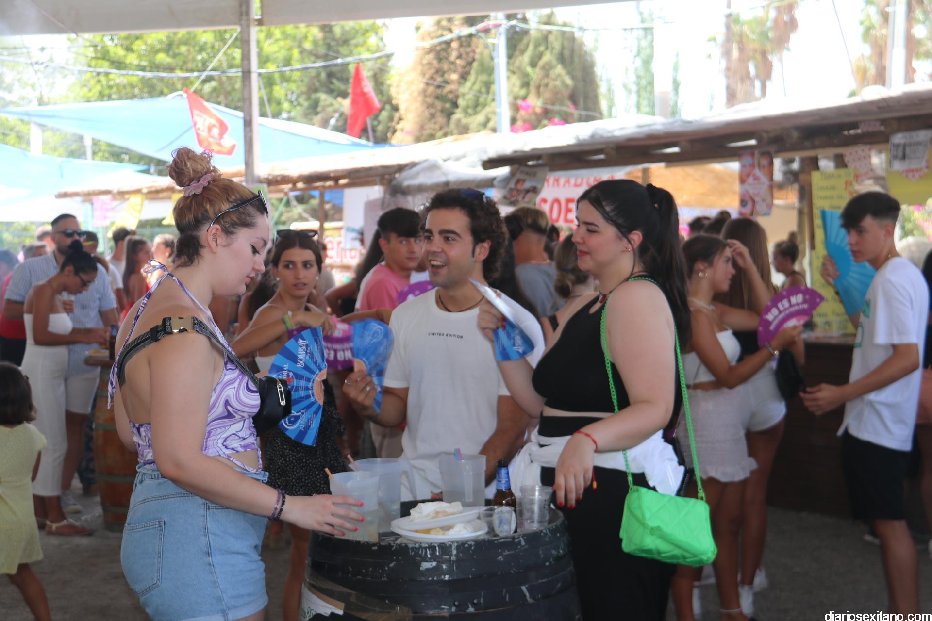La animación fue incrementándose y en poco tiempo las carpas estaban repletas de público y muy especialmente joven. La inauguración de Feria fue amenizada por la Charanga “Los Folloneros” y posteriormente llegó la actuación del cantante sexitano Miguel Moreno y la animación también de Egonzalez DJ.