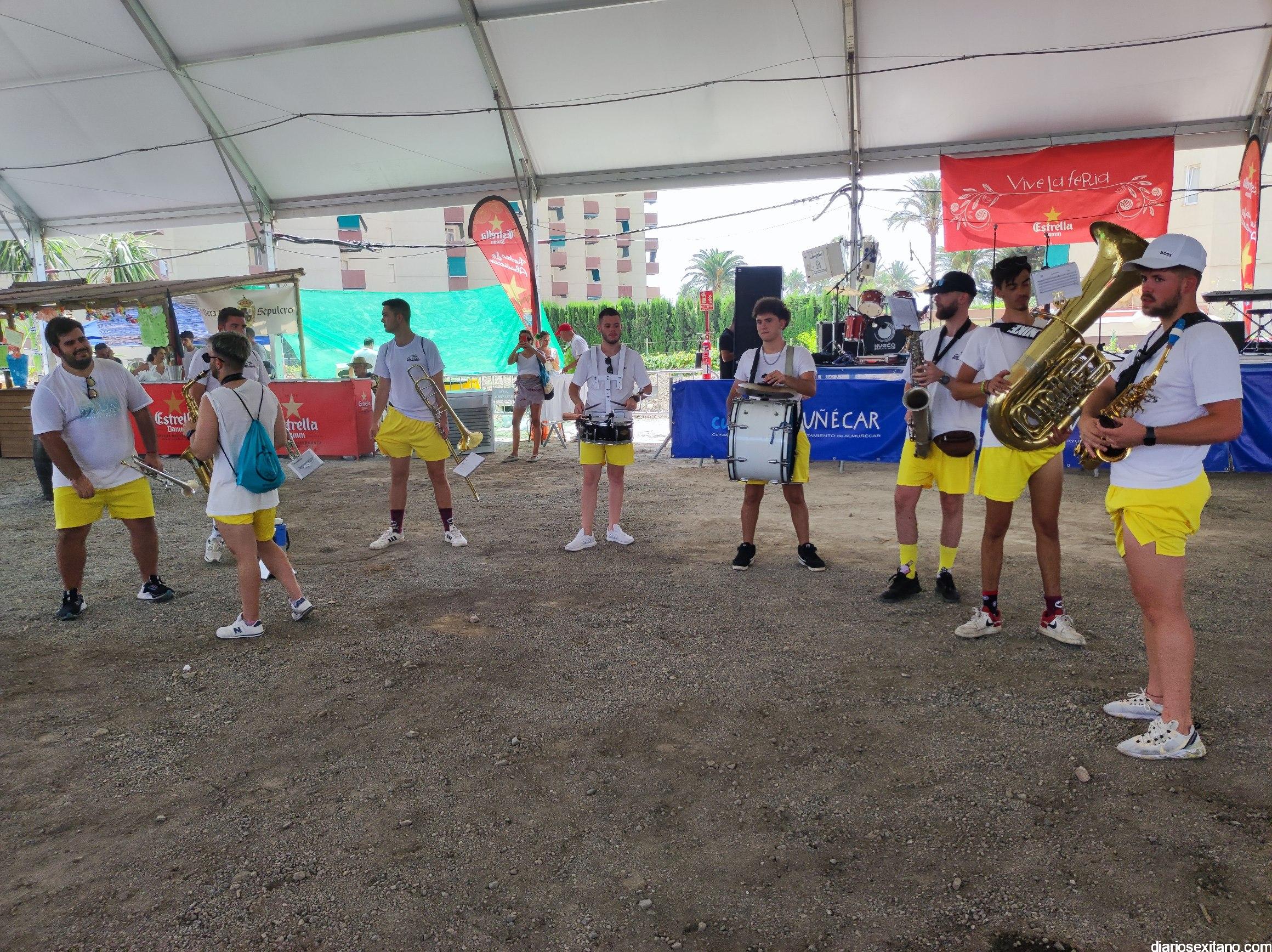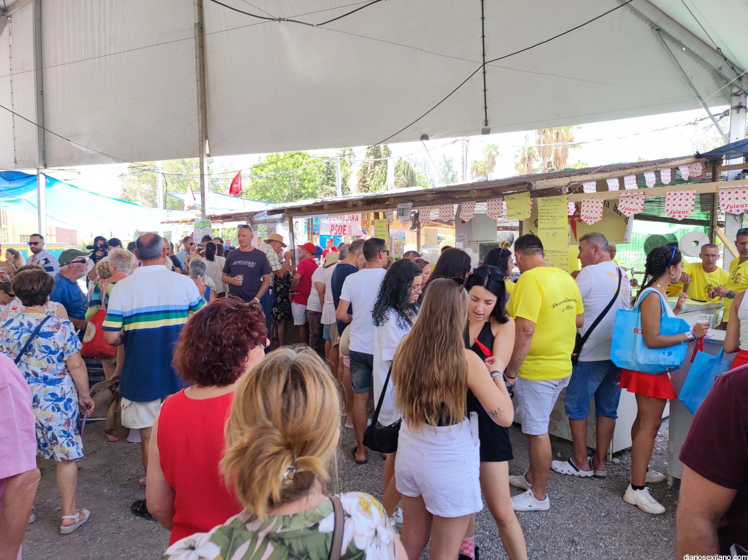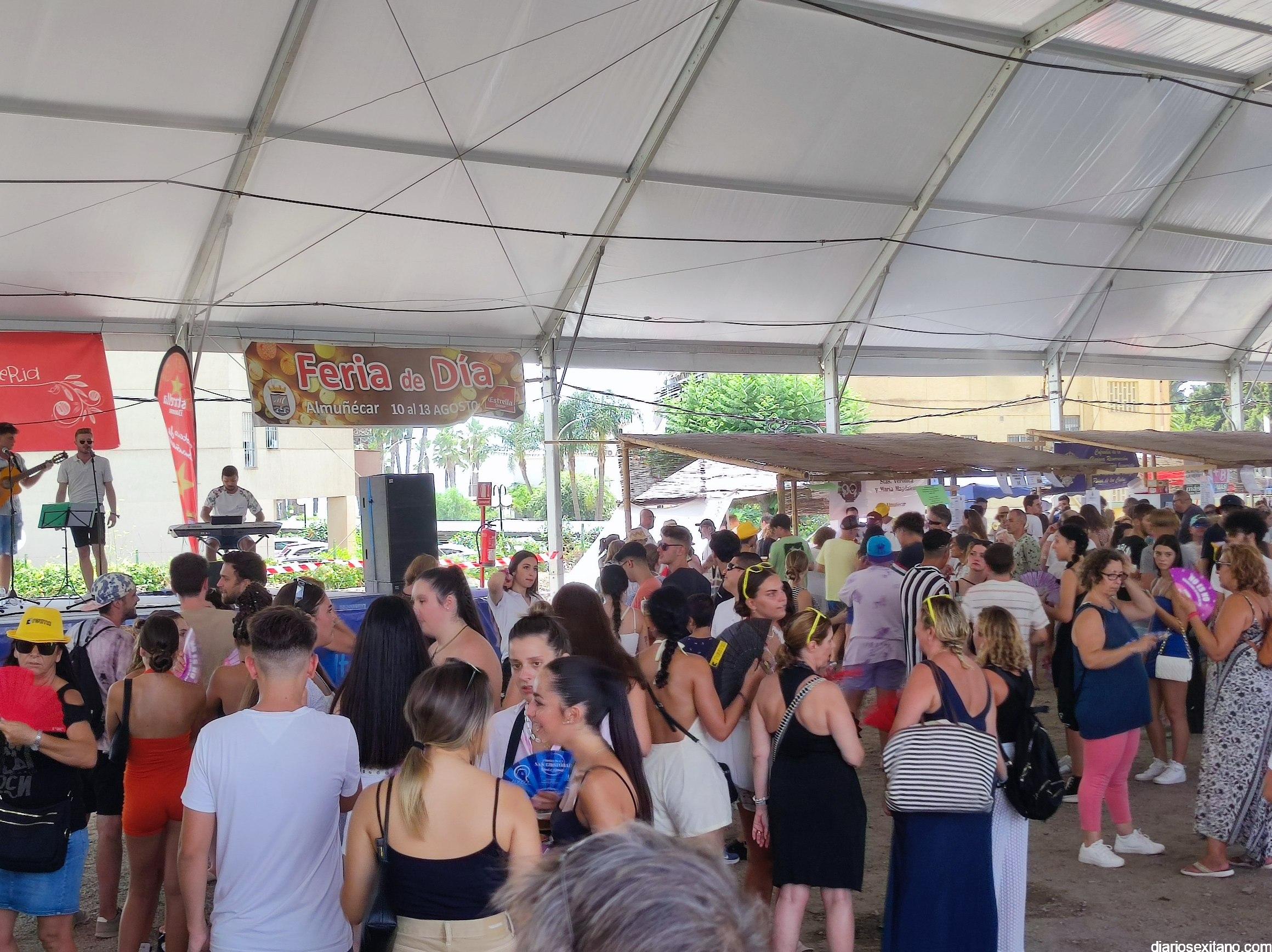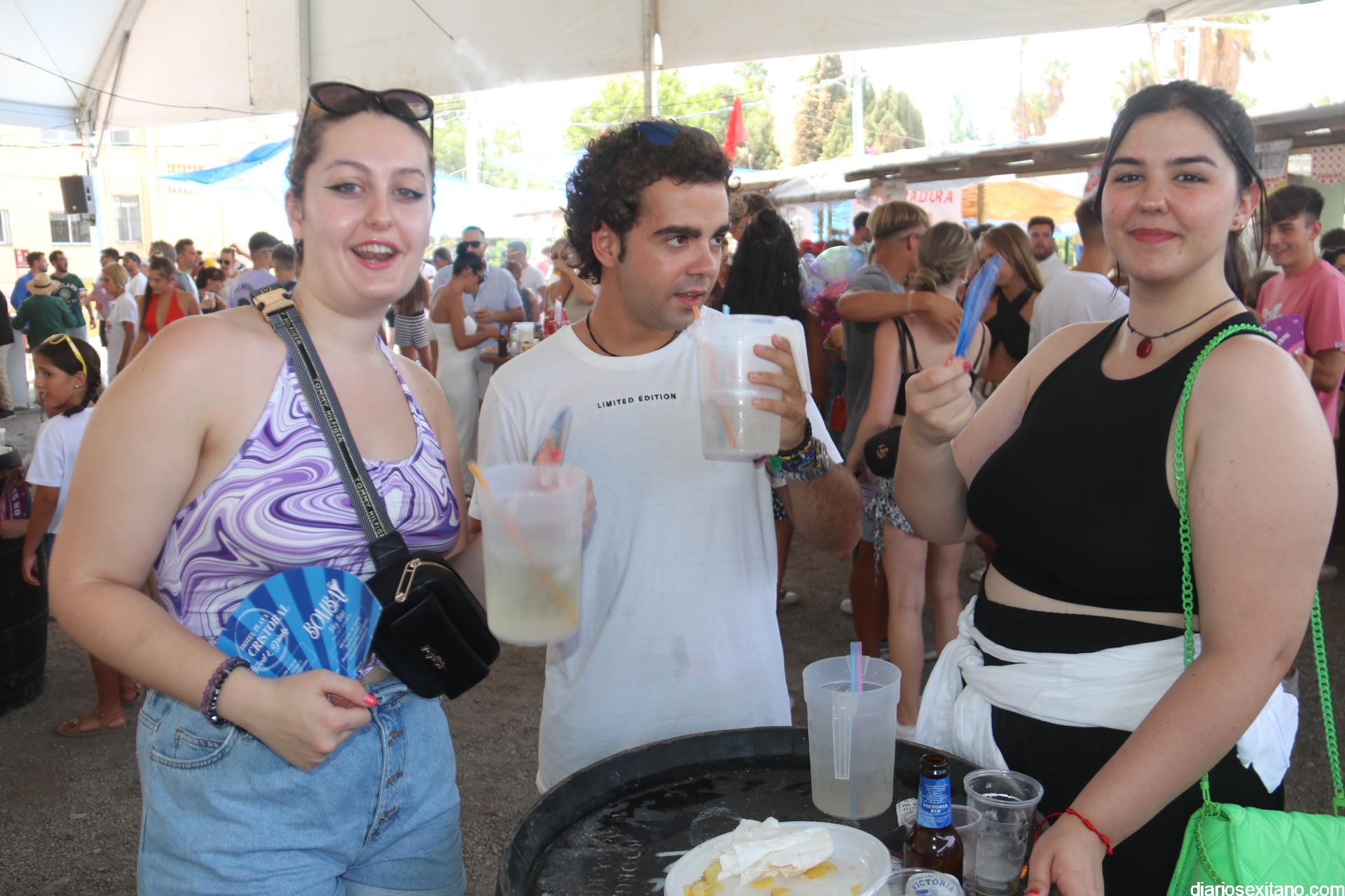 La animación fue incrementándose y en poco tiempo las carpas estaban repletas de público y muy especialmente joven. La inauguración de Feria fue amenizada por la Charanga “Los Folloneros” y posteriormente llegó la actuación del cantante sexitano Miguel Moreno y la animación también de Egonzalez DJ.