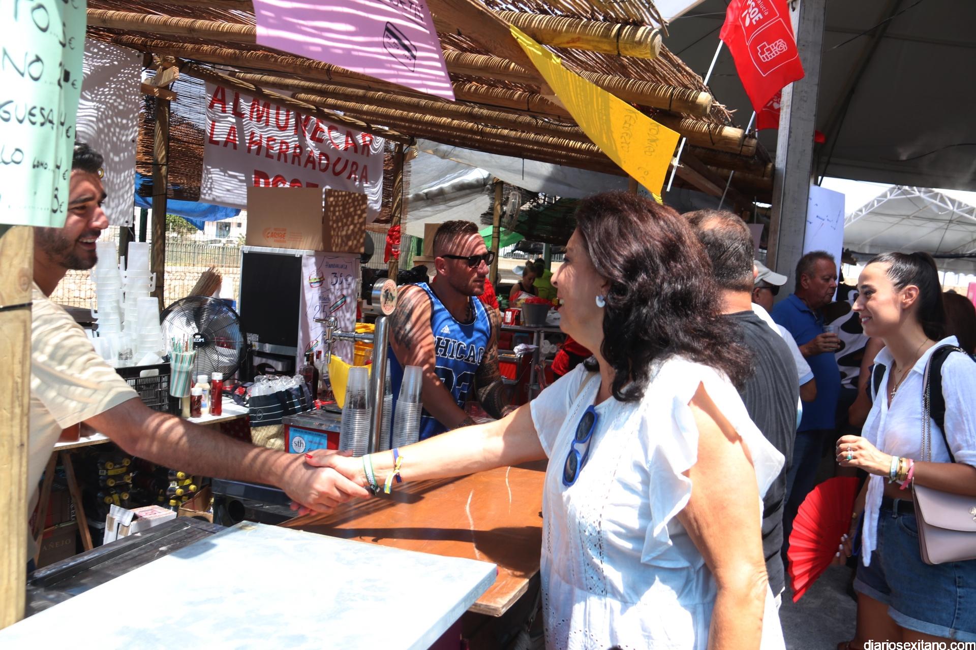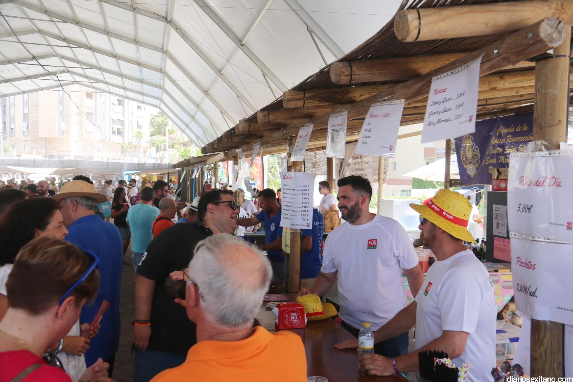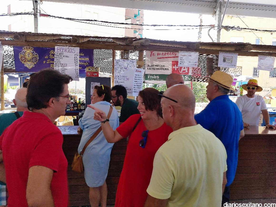 Tras el brindis por una buena “Feria de Día” la comitiva institucional, con el alcalde a la cabeza, accedía por la puerta-arco de “Bienvenida” en numerosos idiomas, haciendo honor al municipio turístico que es el sexitano, para recorrer y saludar a todos y cada uno de los representantes de la veintena de barras que se reparten por el recinto, ofreciendo las mejores propuestas gastronómicas bien acompañadas de “todo el cariño del mundo”, como manifestaba uno de los participantes. Recordar que las barras montadas son: Cofradía Piedad, El Puchero Verde, Restaurante La Najarra, Churrería Paseo Altillo, Restaurante Antiguo Mesón, Cofradía de San Juan, La Despensa de la Abuela, Cofradía Descendimiento y Alba, Cofradía Perdón, Verónica y Magdalena, Cofradía Cristo Atado a la Columna, Agrupación Musical Nuestra Señora de la Encarnación, PSOE, MÁS ALMUÑÉCAR, PP, Cofradía Sepulcro, Cofradía Resurrección y Triunfo, Nuestra Señora del Carmen, Hotel Playa San Cristóbal, Cofradía Despojado y Salud y Discoteca La Kasbah.