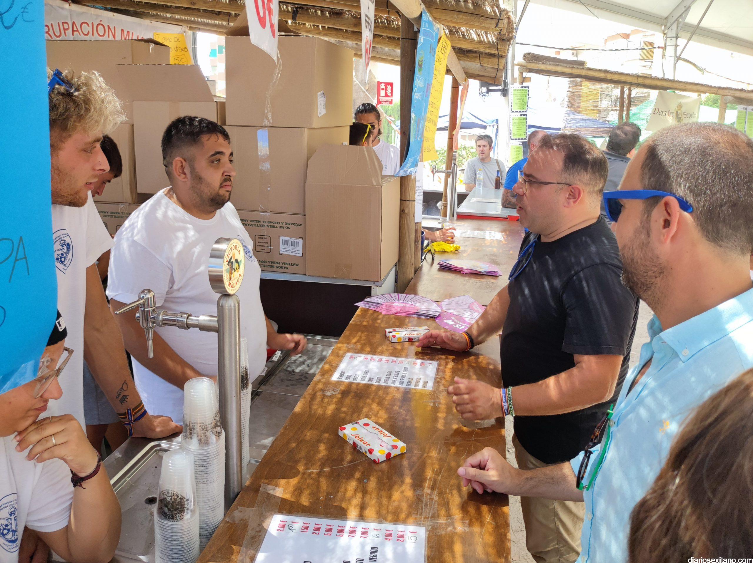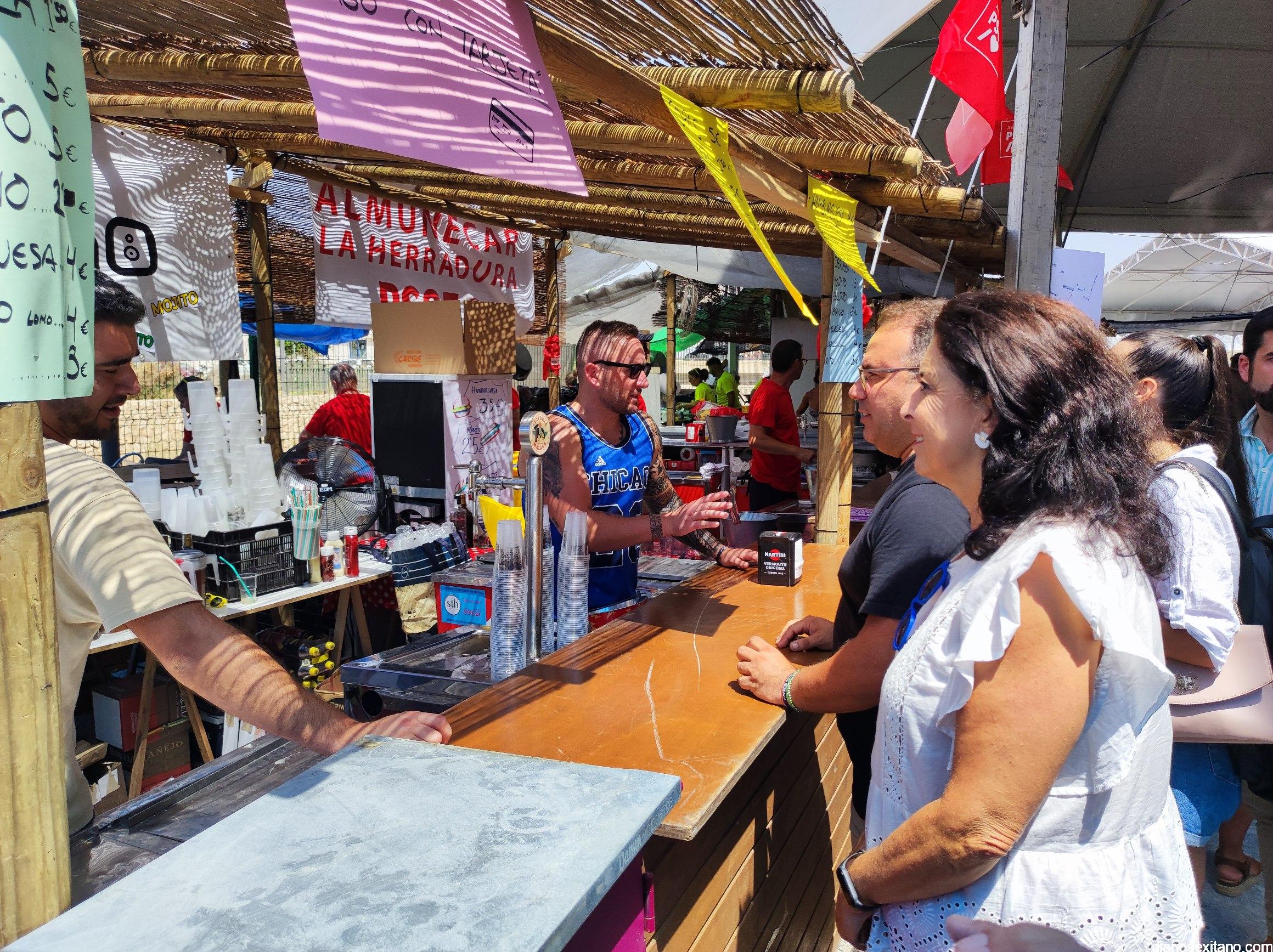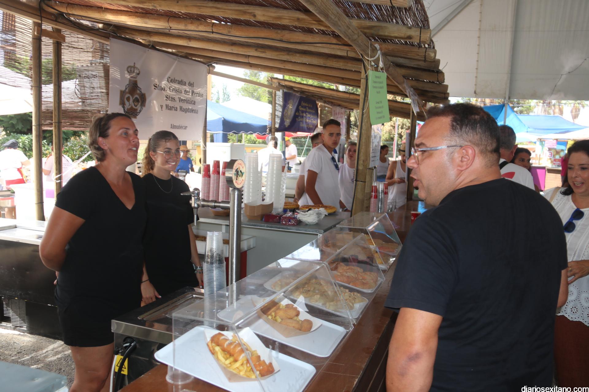 Tras el brindis por una buena “Feria de Día” la comitiva institucional, con el alcalde a la cabeza, accedía por la puerta-arco de “Bienvenida” en numerosos idiomas, haciendo honor al municipio turístico que es el sexitano, para recorrer y saludar a todos y cada uno de los representantes de la veintena de barras que se reparten por el recinto, ofreciendo las mejores propuestas gastronómicas bien acompañadas de “todo el cariño del mundo”, como manifestaba uno de los participantes. Recordar que las barras montadas son: Cofradía Piedad, El Puchero Verde, Restaurante La Najarra, Churrería Paseo Altillo, Restaurante Antiguo Mesón, Cofradía de San Juan, La Despensa de la Abuela, Cofradía Descendimiento y Alba, Cofradía Perdón, Verónica y Magdalena, Cofradía Cristo Atado a la Columna, Agrupación Musical Nuestra Señora de la Encarnación, PSOE, MÁS ALMUÑÉCAR, PP, Cofradía Sepulcro, Cofradía Resurrección y Triunfo, Nuestra Señora del Carmen, Hotel Playa San Cristóbal, Cofradía Despojado y Salud y Discoteca La Kasbah.
