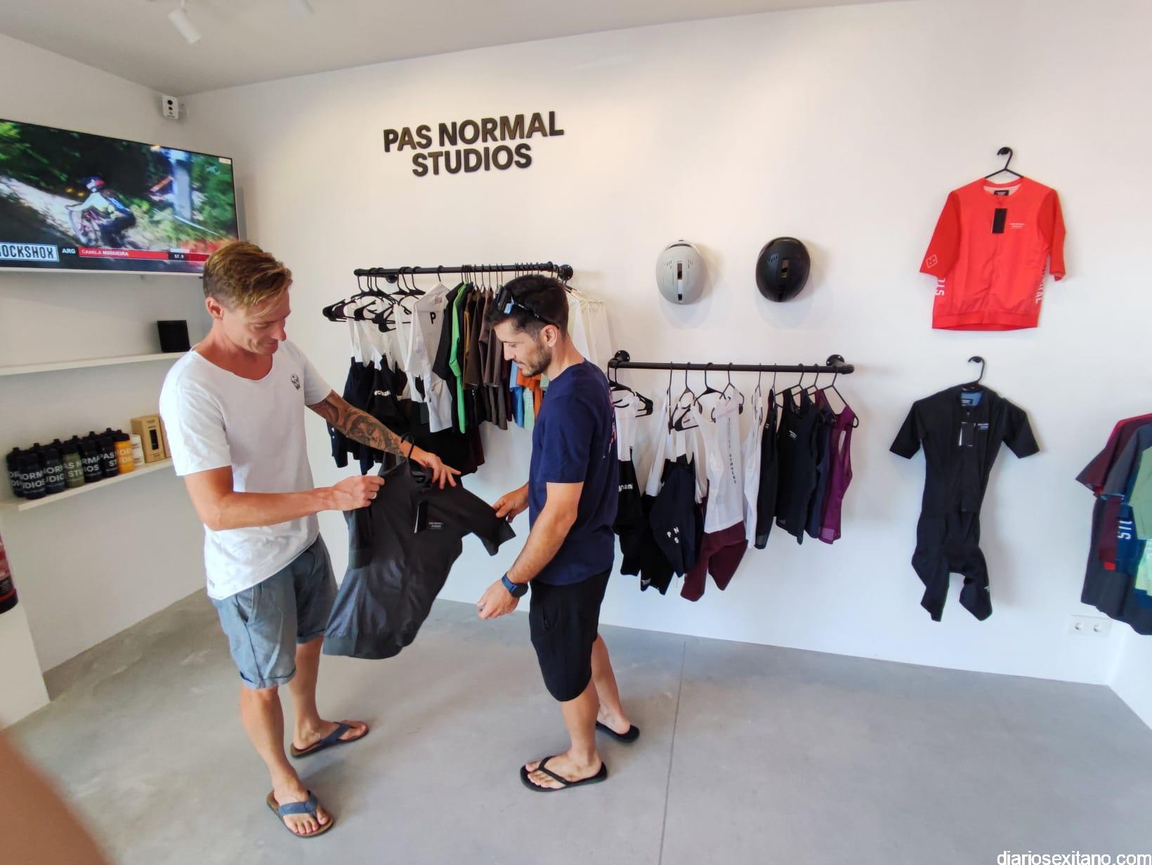 El establecimiento tiene unos 75 metros cuadrados y terraza. Consta, además de una pequeña barra y cafetera, de una zona taller con las herramientas y todo lo necesario para solventar una avería técnica que pueda surgir en cualquier momento. A ello se suma una exposición de ropa especializada o alta gama de una destacada firma danesa denominada “que solo tiene tres tiendas en España: Madrid, Barcelona y Mallorca y ahora en La Herradura”, señala Vic de Wee.