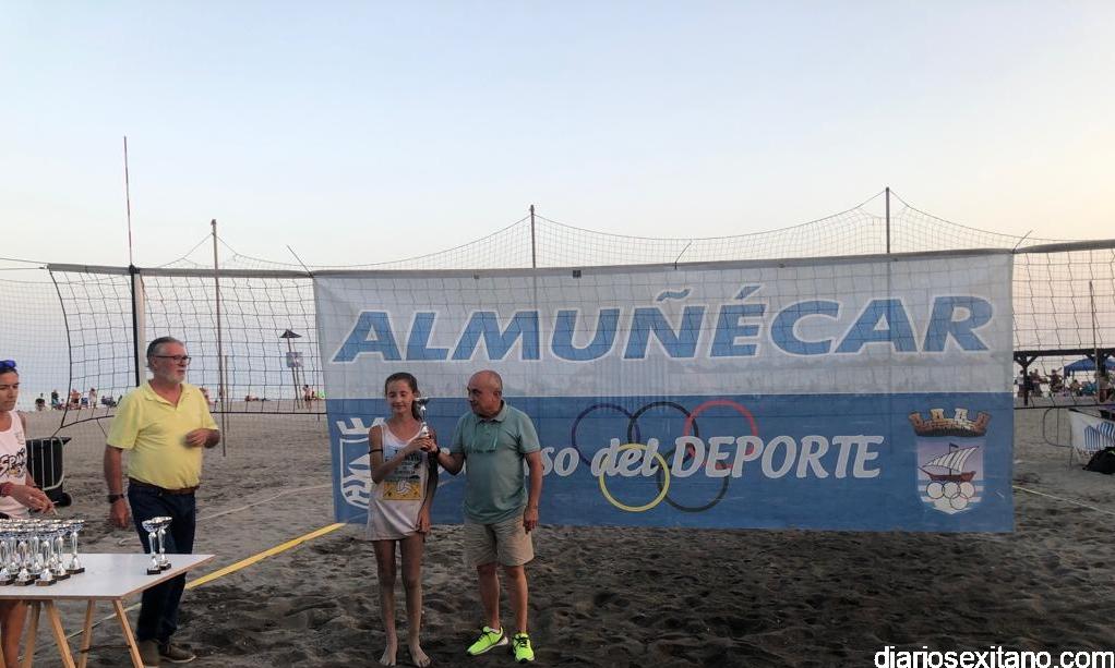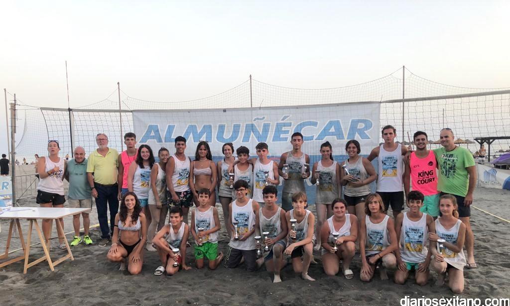 La entrega de trofeos a los ganadores de las distintas categorías participantes puso el broche al Torneo de Vóley Playa de Almuñécar que ha organizado el Club Vóley de Almuñécar en las pistas de la playa Puerta del Mar.