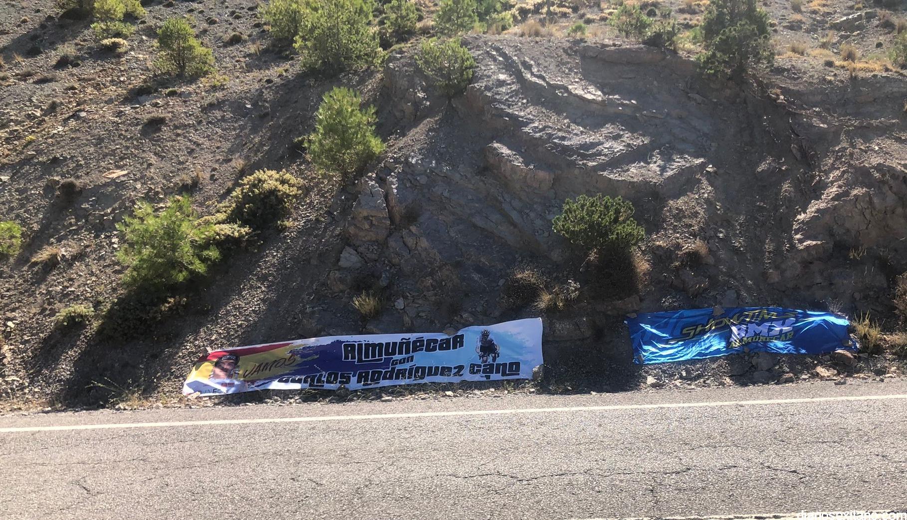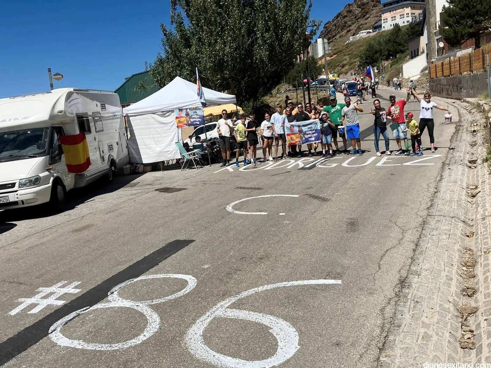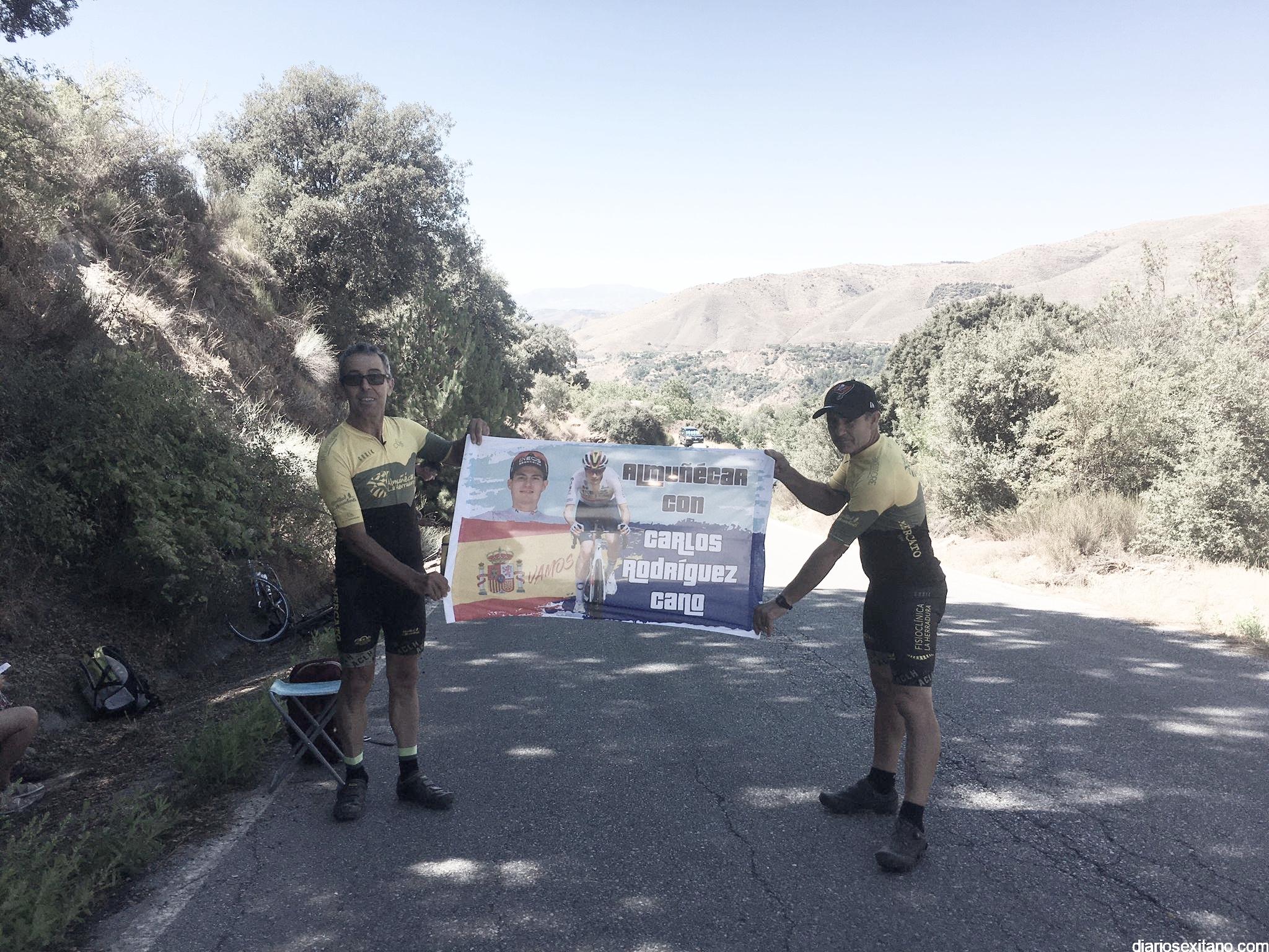 El ciclista sexitano Carlos Rodríguez Cano ha recibido hoy el apoyo de los aficionados y clubes de Almuñécar y comarca en la subida a Sierra Nevada. Las expediciones partieron temprano para ocupar los mejores lugares. Pancartas, banderolas, pintadas en la carretera con el dorsal de Carlos, el 86. Todo era poco para animar y apoyar al Campeón de España, que ha hecho su carrera y sigue estando entre el mejor quinteto de la prueba.
