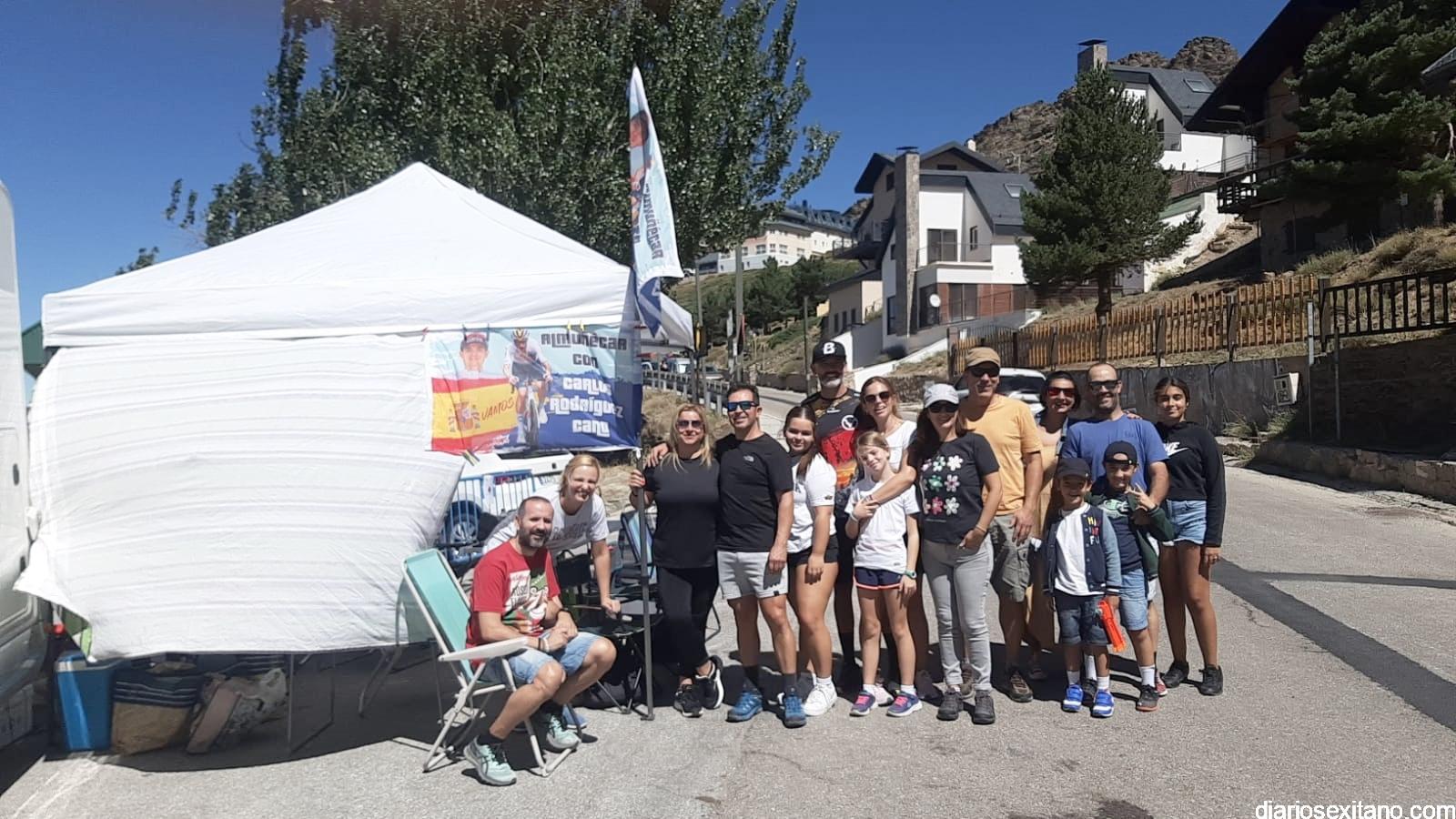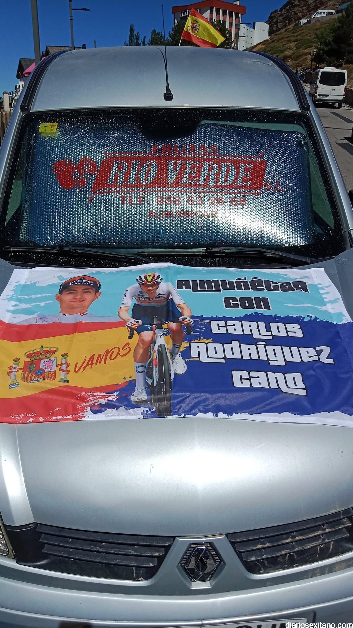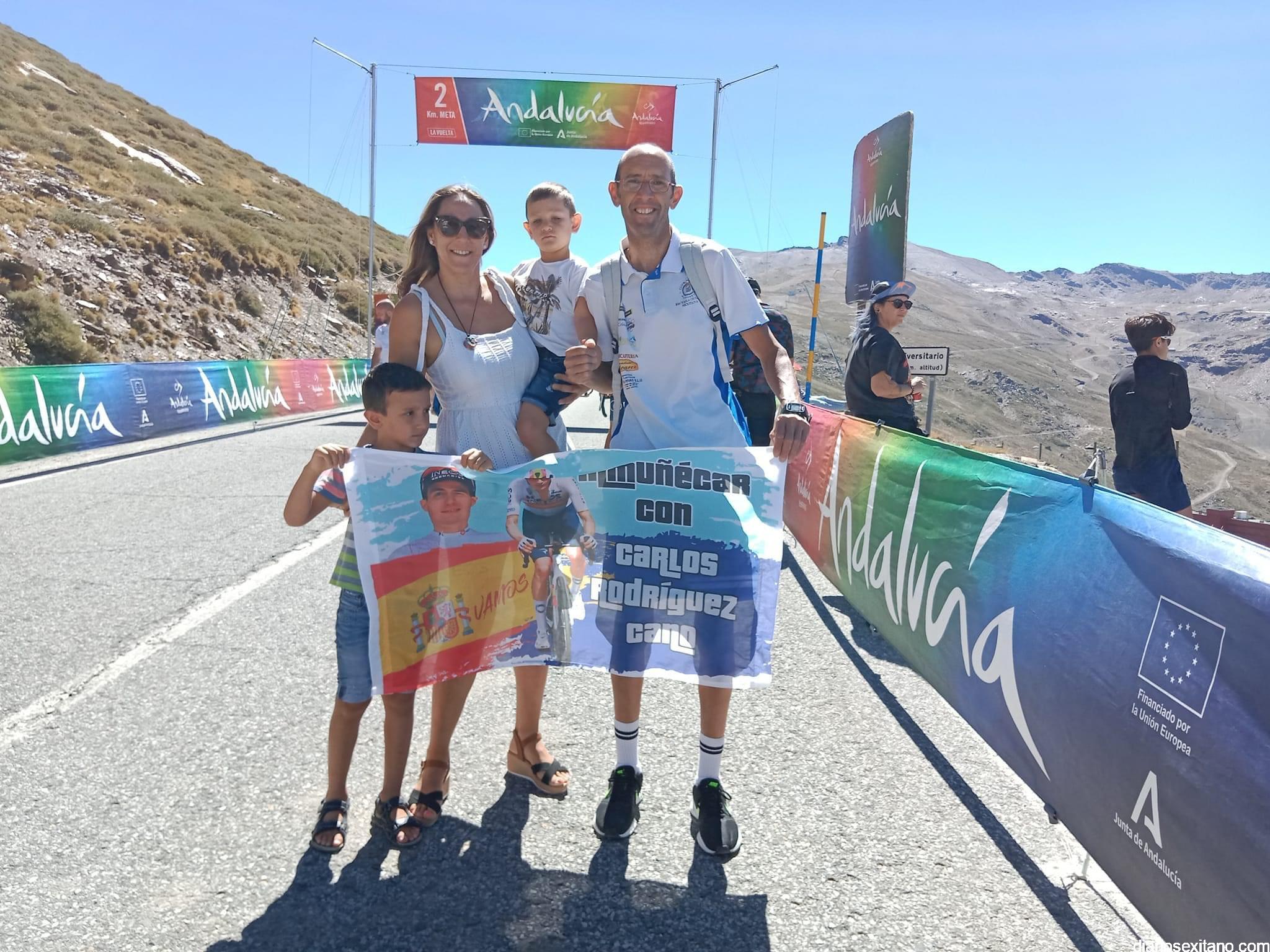 El ciclista sexitano Carlos Rodríguez Cano ha recibido hoy el apoyo de los aficionados y clubes de Almuñécar y comarca en la subida a Sierra Nevada. Las expediciones partieron temprano para ocupar los mejores lugares. Pancartas, banderolas, pintadas en la carretera con el dorsal de Carlos, el 86. Todo era poco para animar y apoyar al Campeón de España, que ha hecho su carrera y sigue estando entre el mejor quinteto de la prueba.