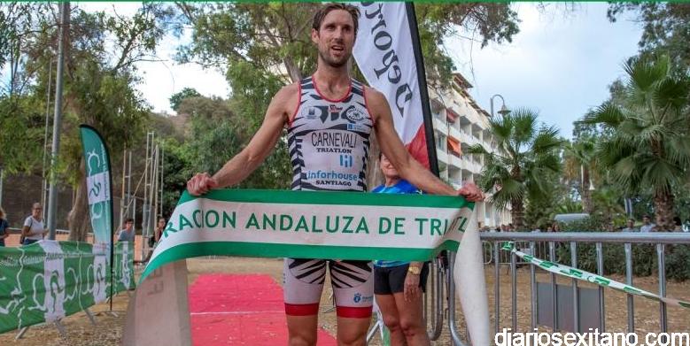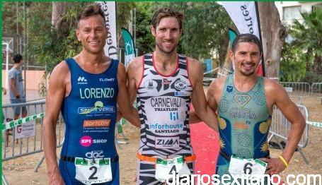 El primero en cubrir las tres modalidades deportivas fue Andrés Carnevali del Castillo (Triatlón Inforhouse Santiago) que fue primero en natación y segundo en las otras dos transiciones, empleando un tiempo de 1 hora 48 minutos y 50 segundos; seguido de Sergio Lorenzo Prieto (CD Simón Verde Flowway) con 1hora 51minutos y 46 segundos y completó el podio absoluto masculino Sergio García Espejo (CT Atrancaitos) que hizo 1 hora 53 minutos y 6 segundos.
