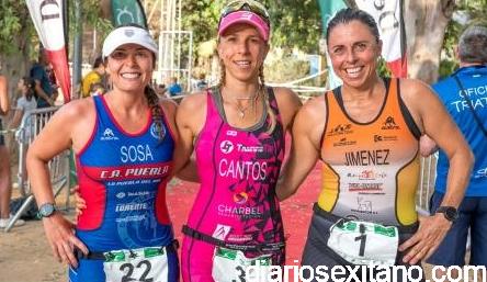 En féminas, la campeona fue la granadina, Nieves Cantos Bertos (CD Trainingtri) con un tiempo de 2 horas 23 minutos y 53 segundos, tras hacer séptima en natación y primera en las dos transiciones restantes. El podio lo completó Ángela Sosa Rodríguez (AD Sevilla) con un tiempo de 2 horas 31 minutos y 3 segundos, y, Beatriz Jiménez Tome (Motilla-Córdoba Triatlón) que quedó justo a diez minutos de Cantos.