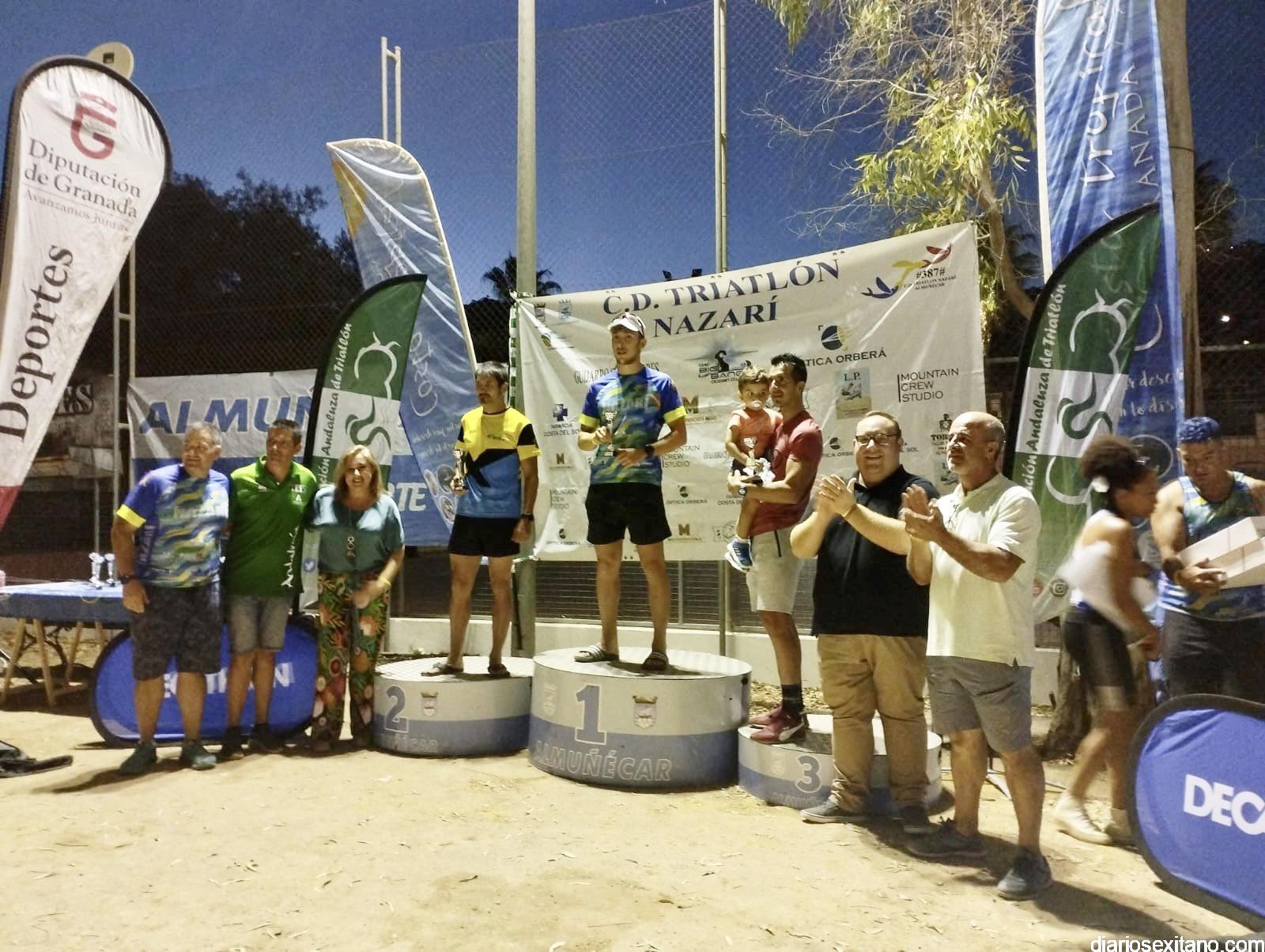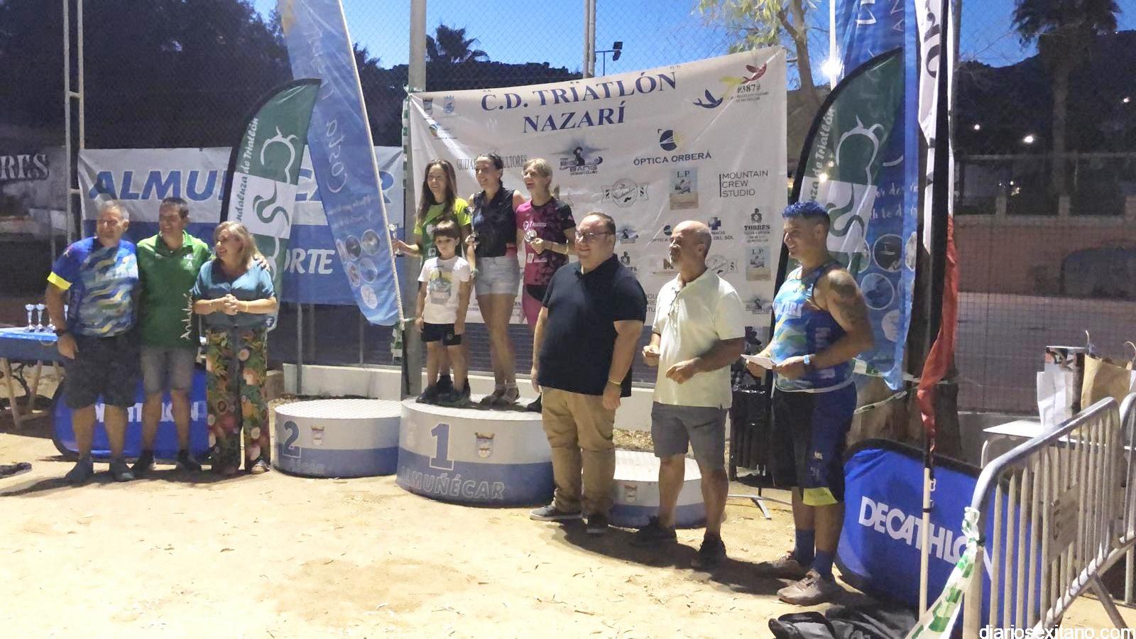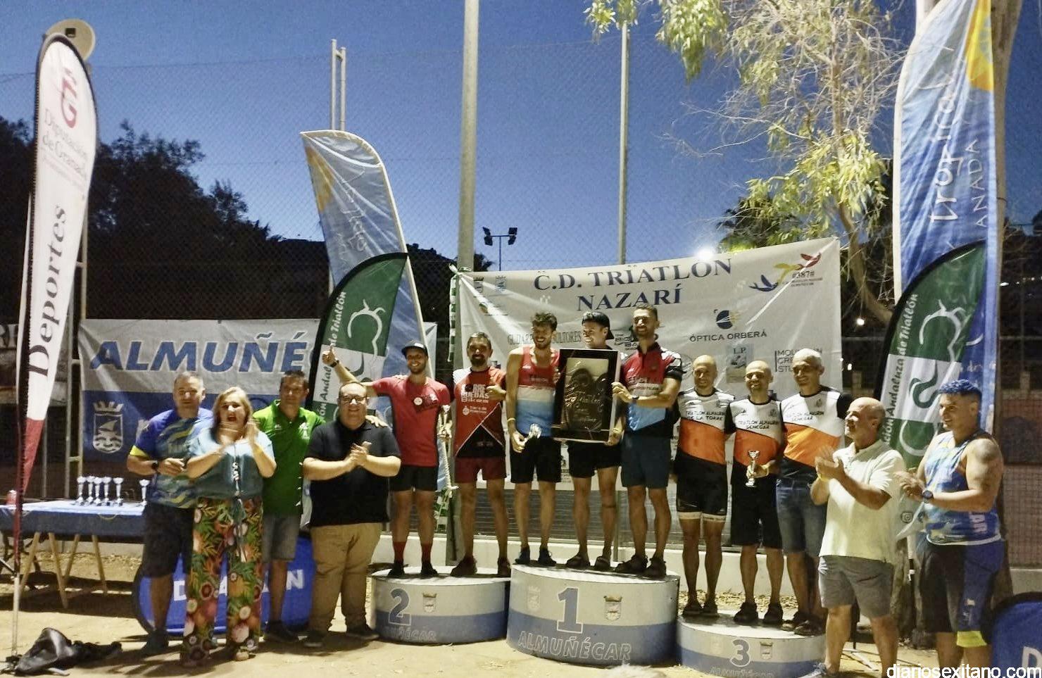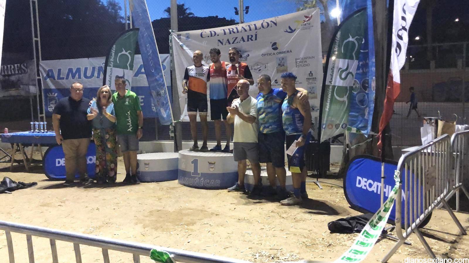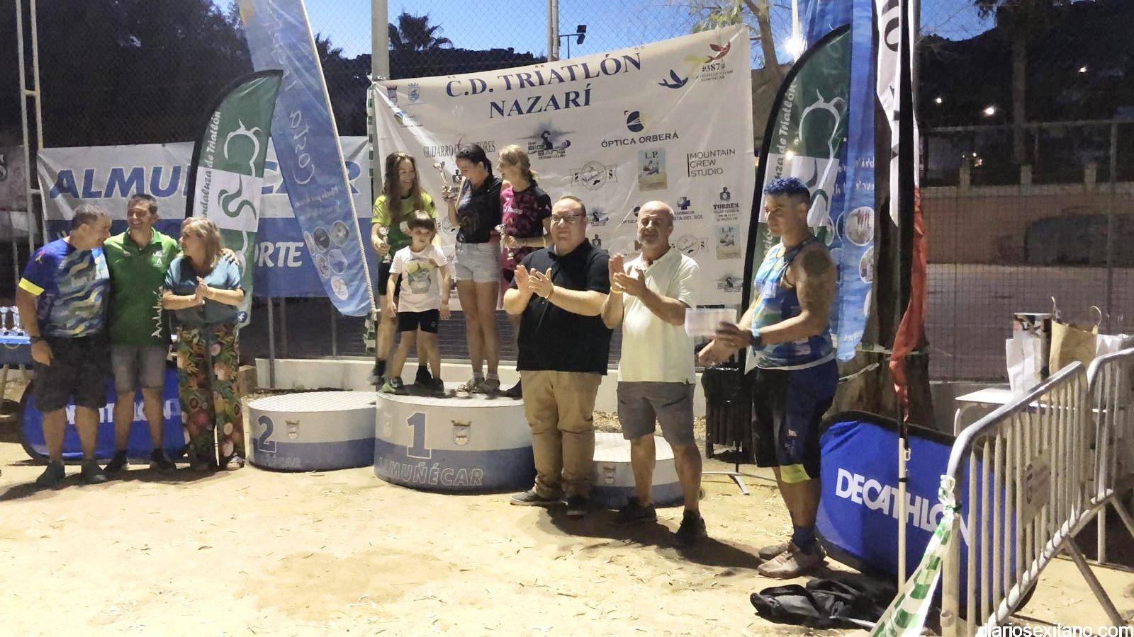 Todos ellos recibieron sus respectivos trofeos en un acto que contó con el diputado provincial de Deportes, Manuel Guirado; el edil sexitano de Deportes, Luis Aragón; la delegada de la Mancomunidad, Rocío Palacios; el delegado provincial de la Federación Andaluza de Triatlón Fernando Hernández y representantes del club organizador Triatlón Nazarí Álvaro y Víctor Manzano.
