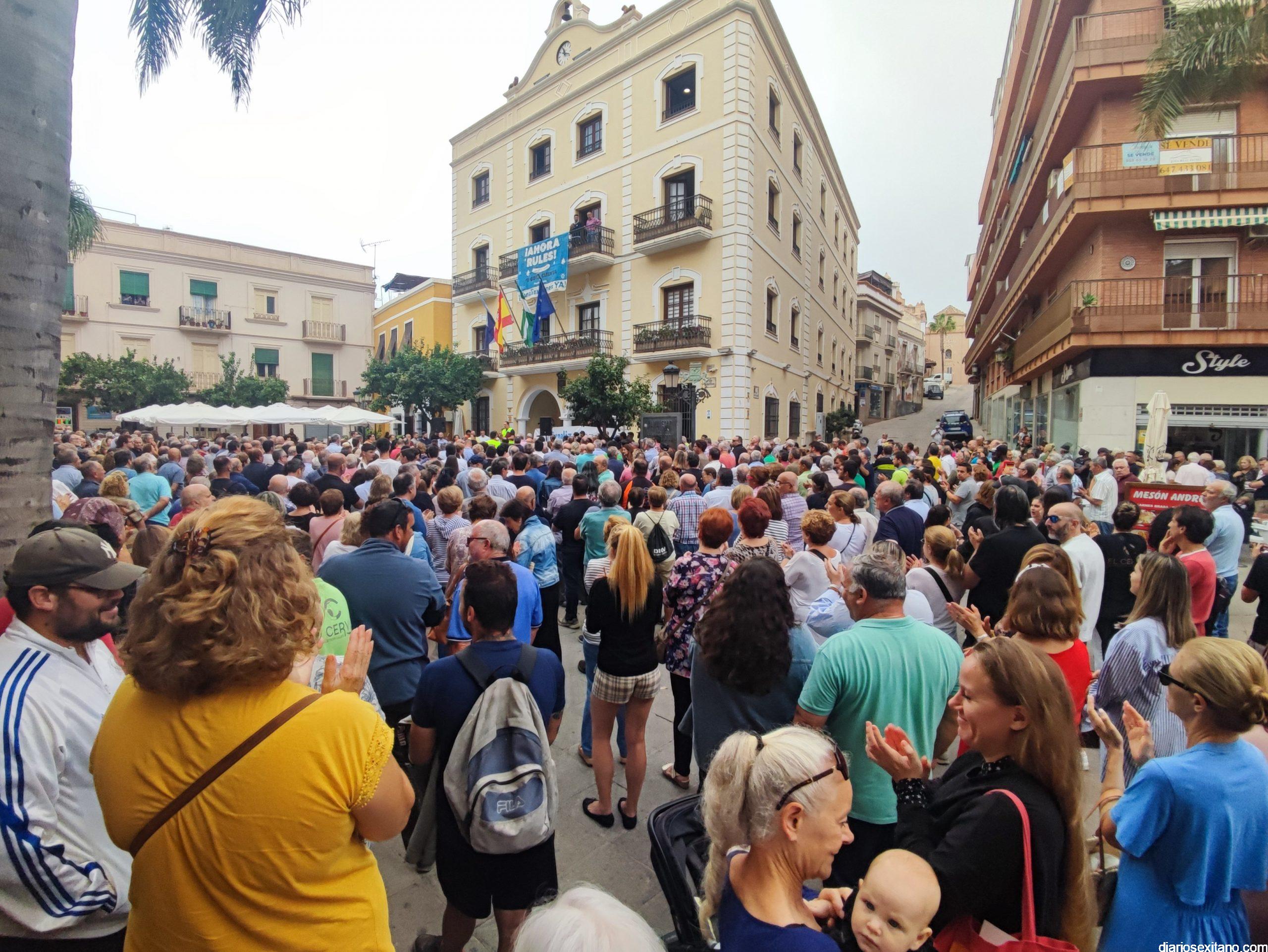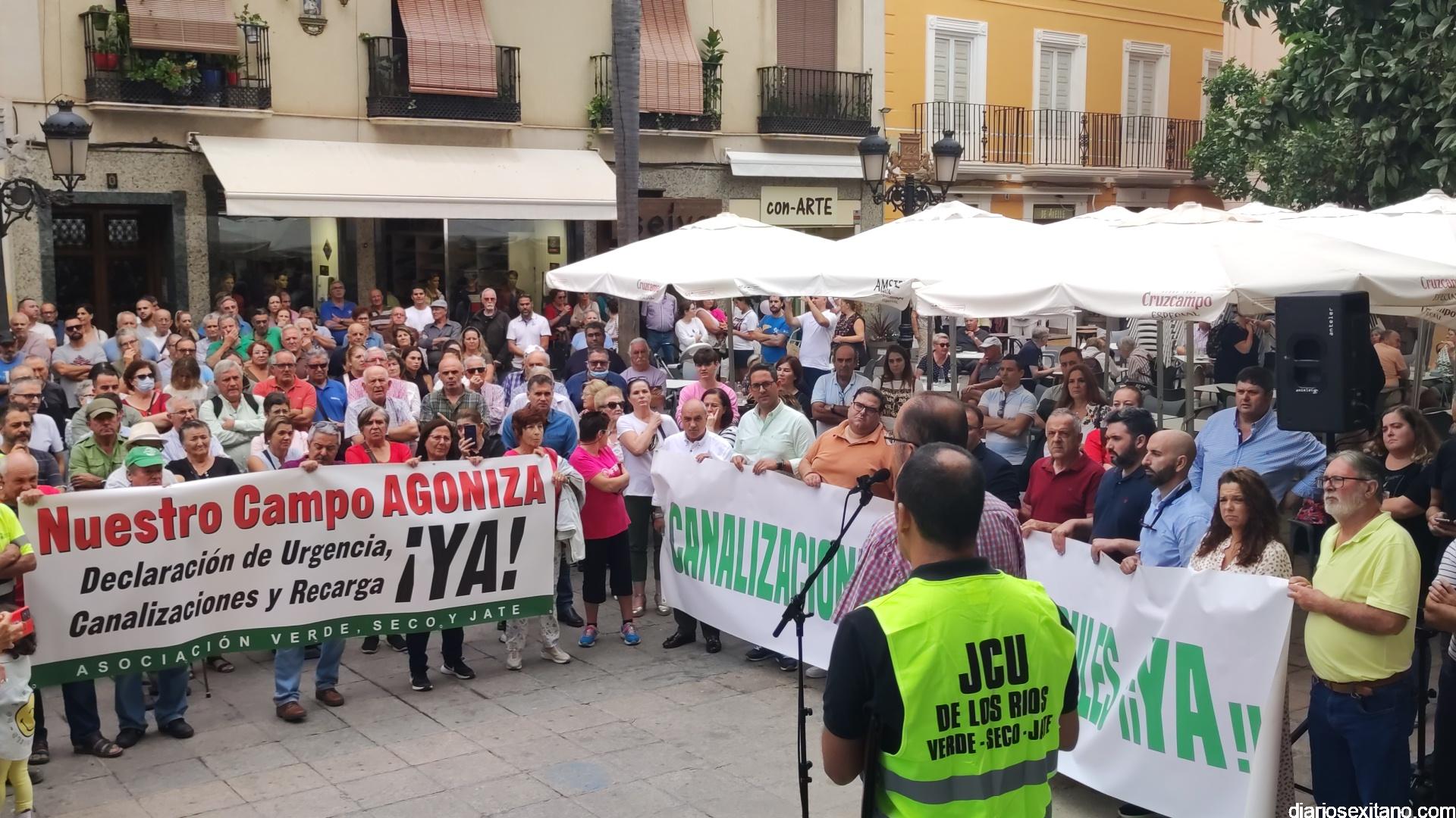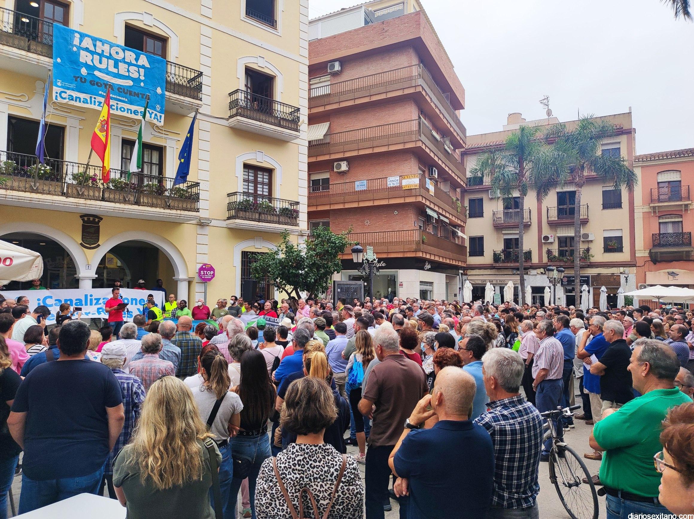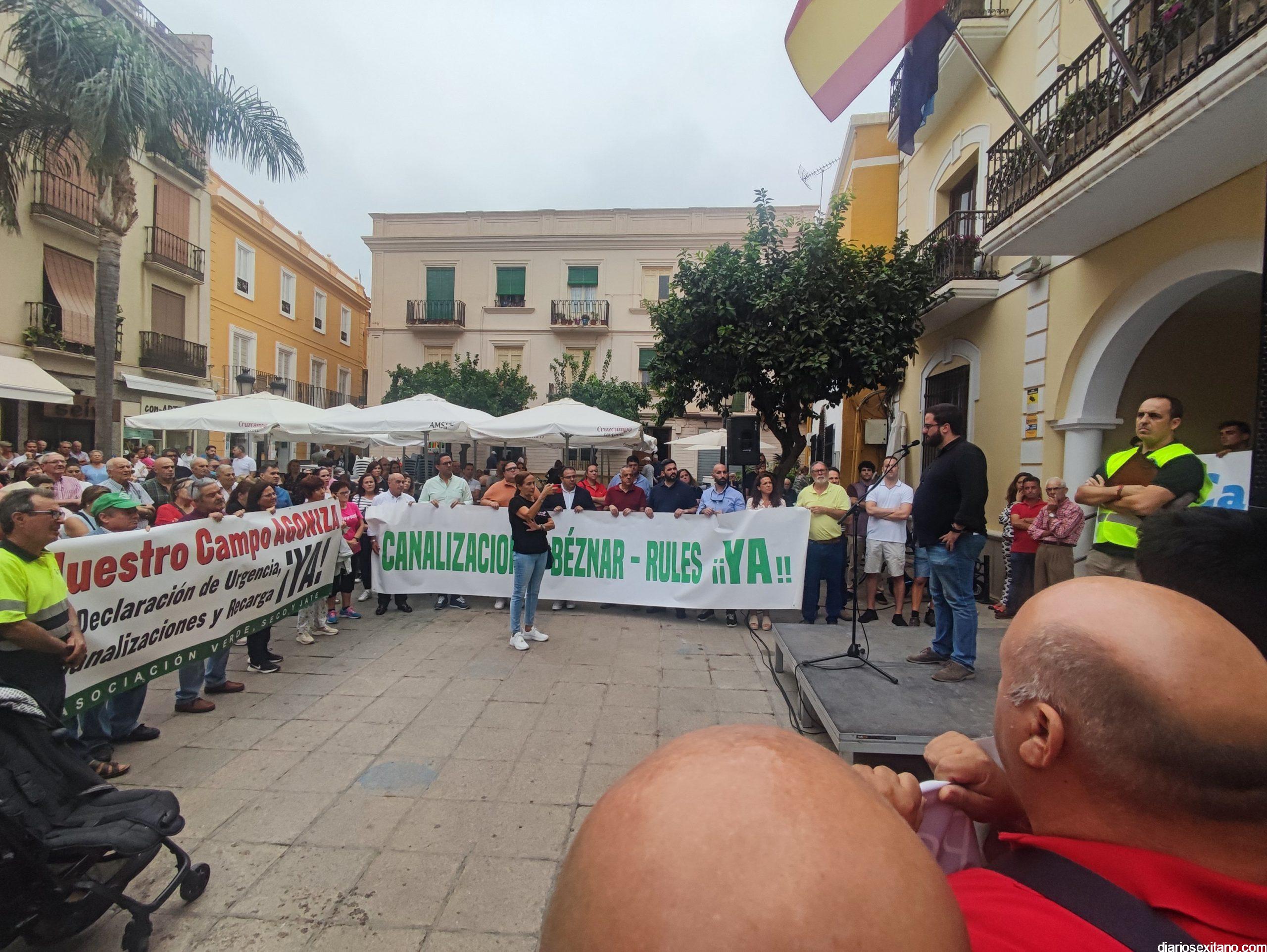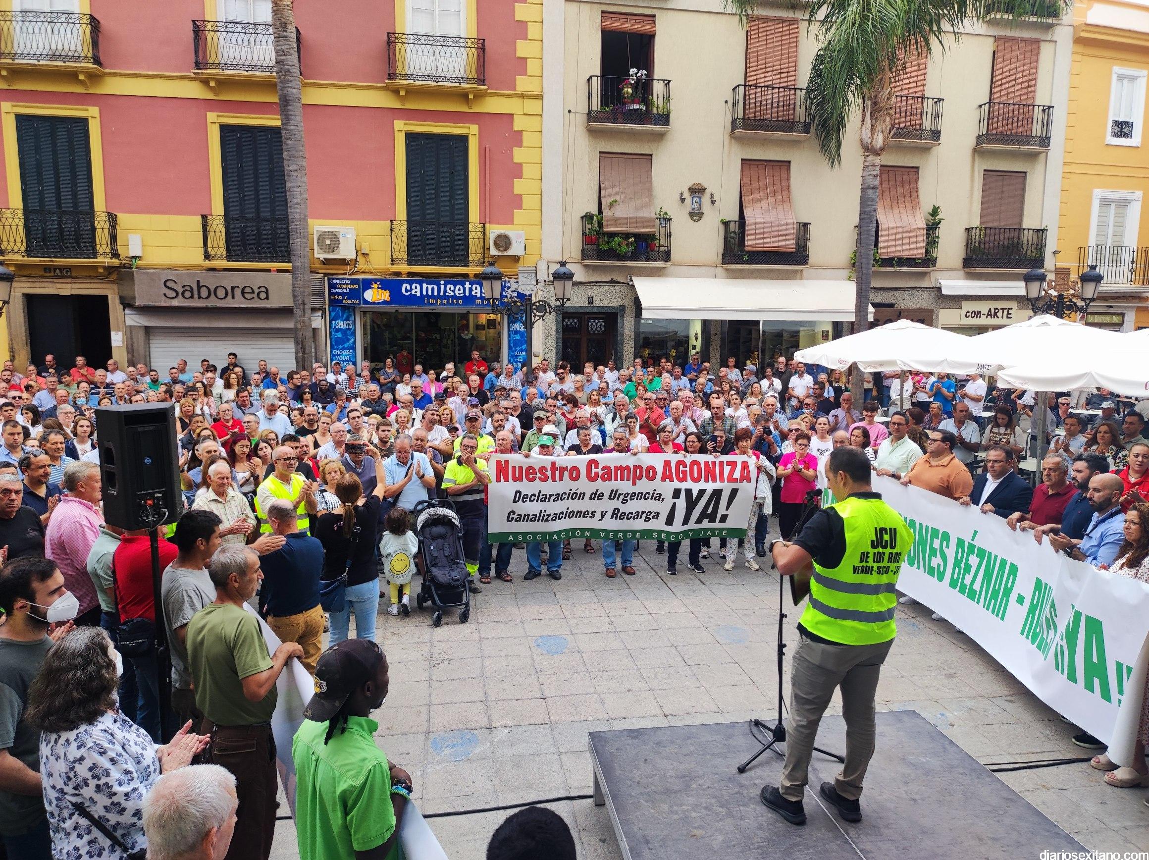 Cientos de vecinos y representantes de todos los sectores económicos locales y comarcales se han concentrado este mediodía en la plaza de la Constitución de Almuñécar ante la convocatoria lanzada desde la Junta Central de Usuarios Ríos Verde Seco y Jate para reivindicar “Agua ya” para la agricultura.