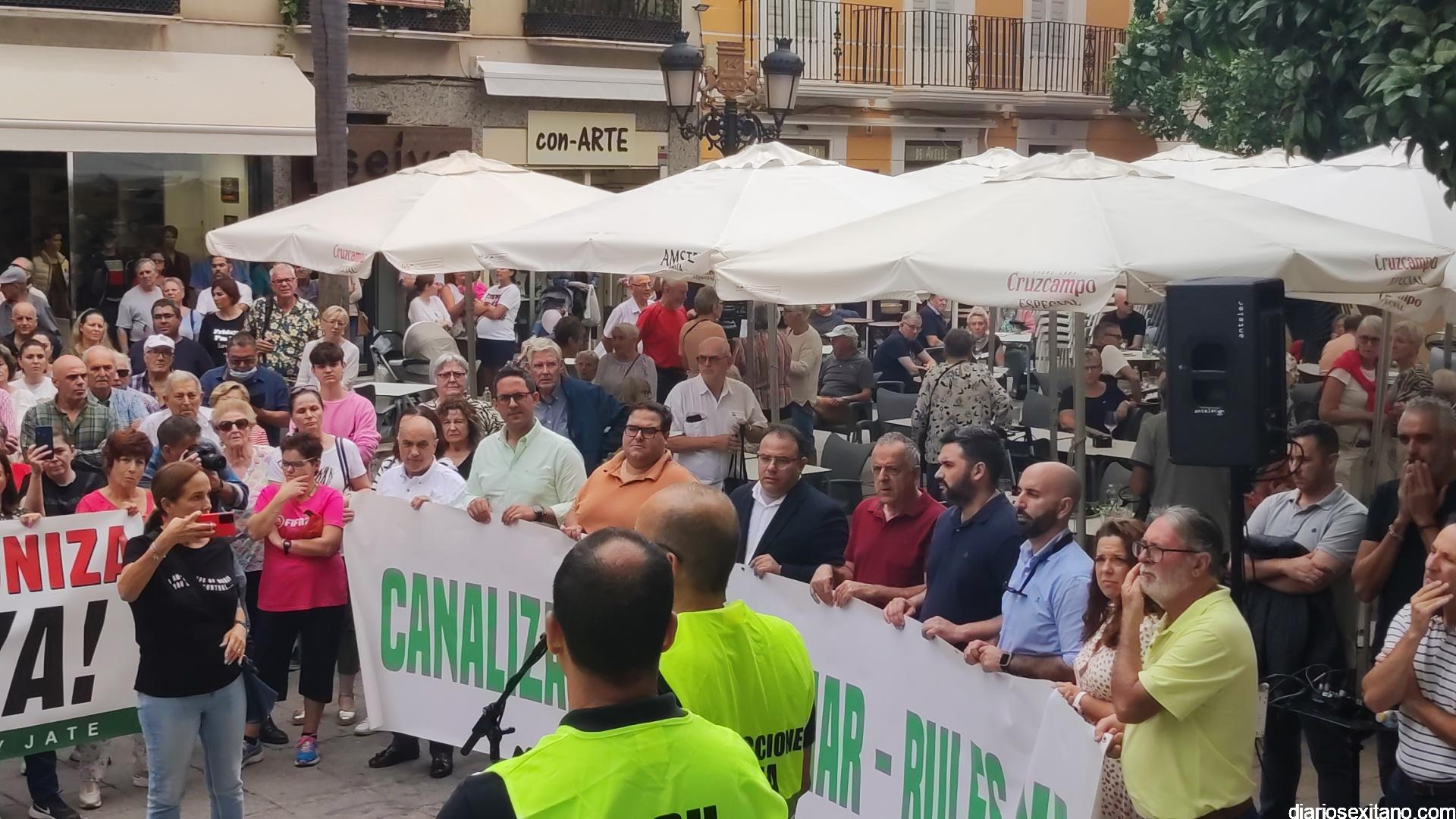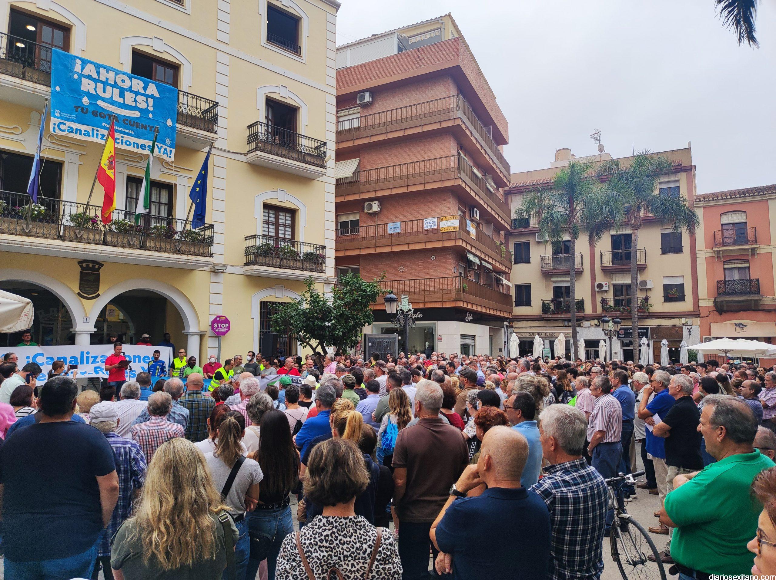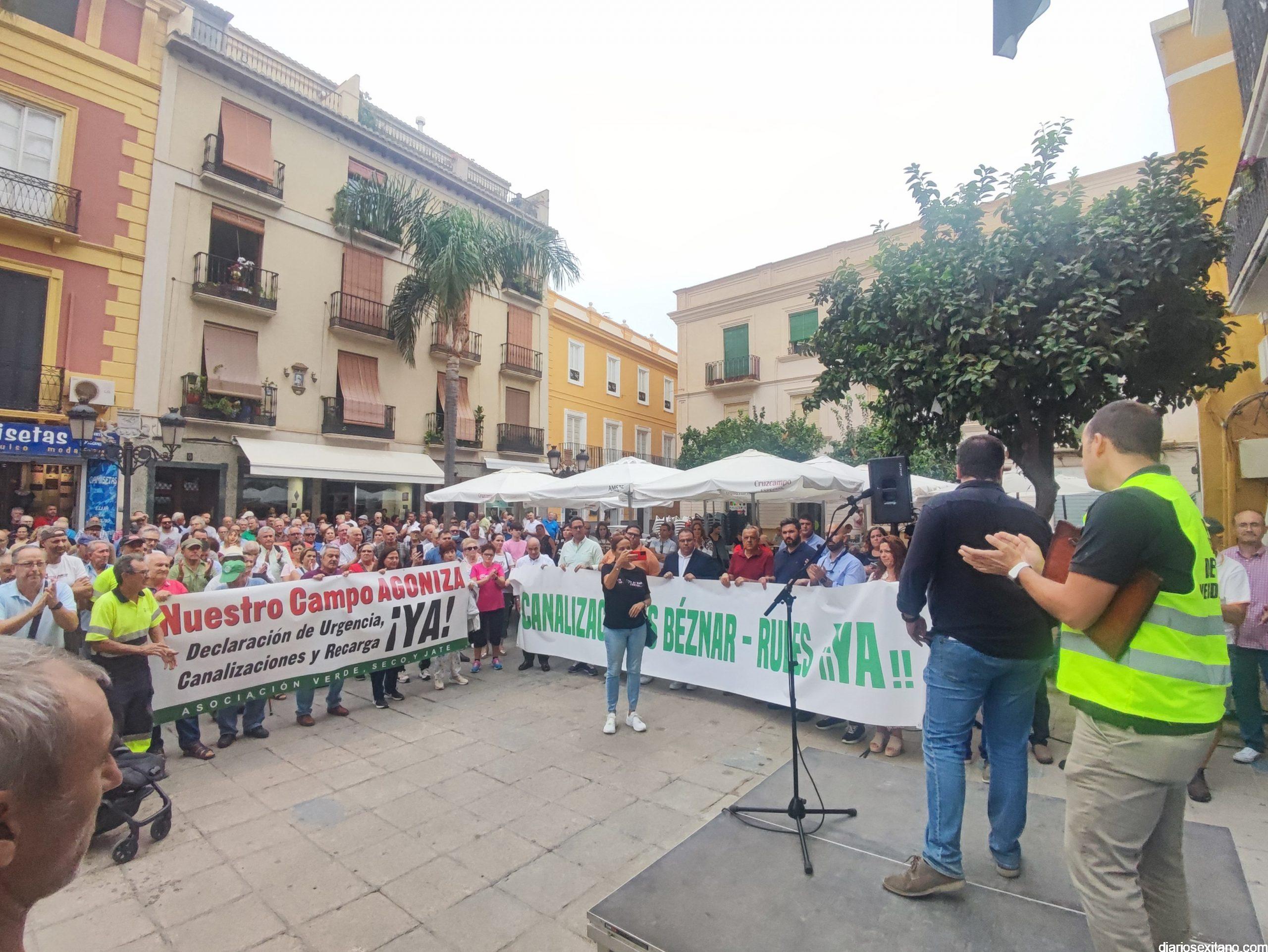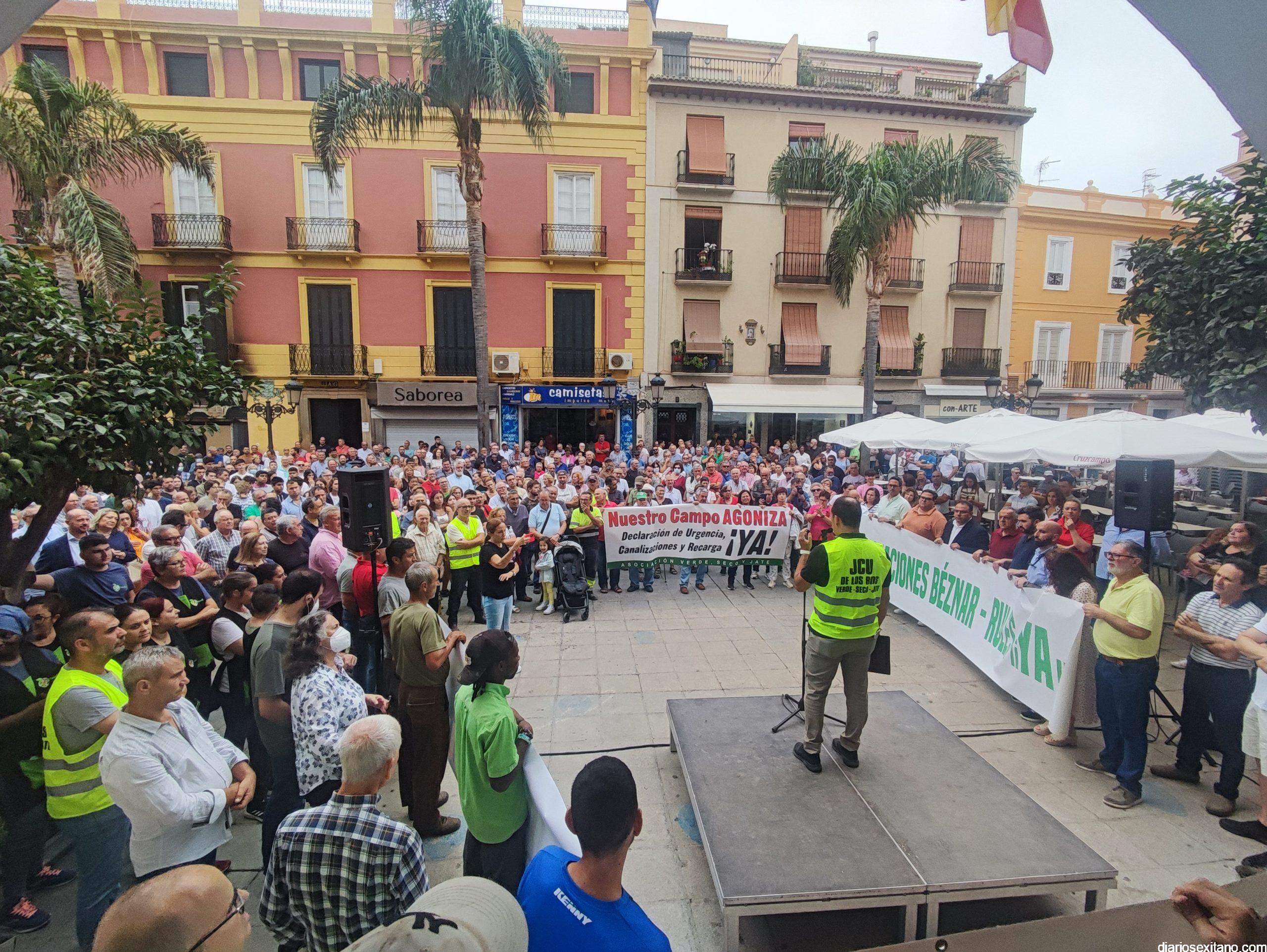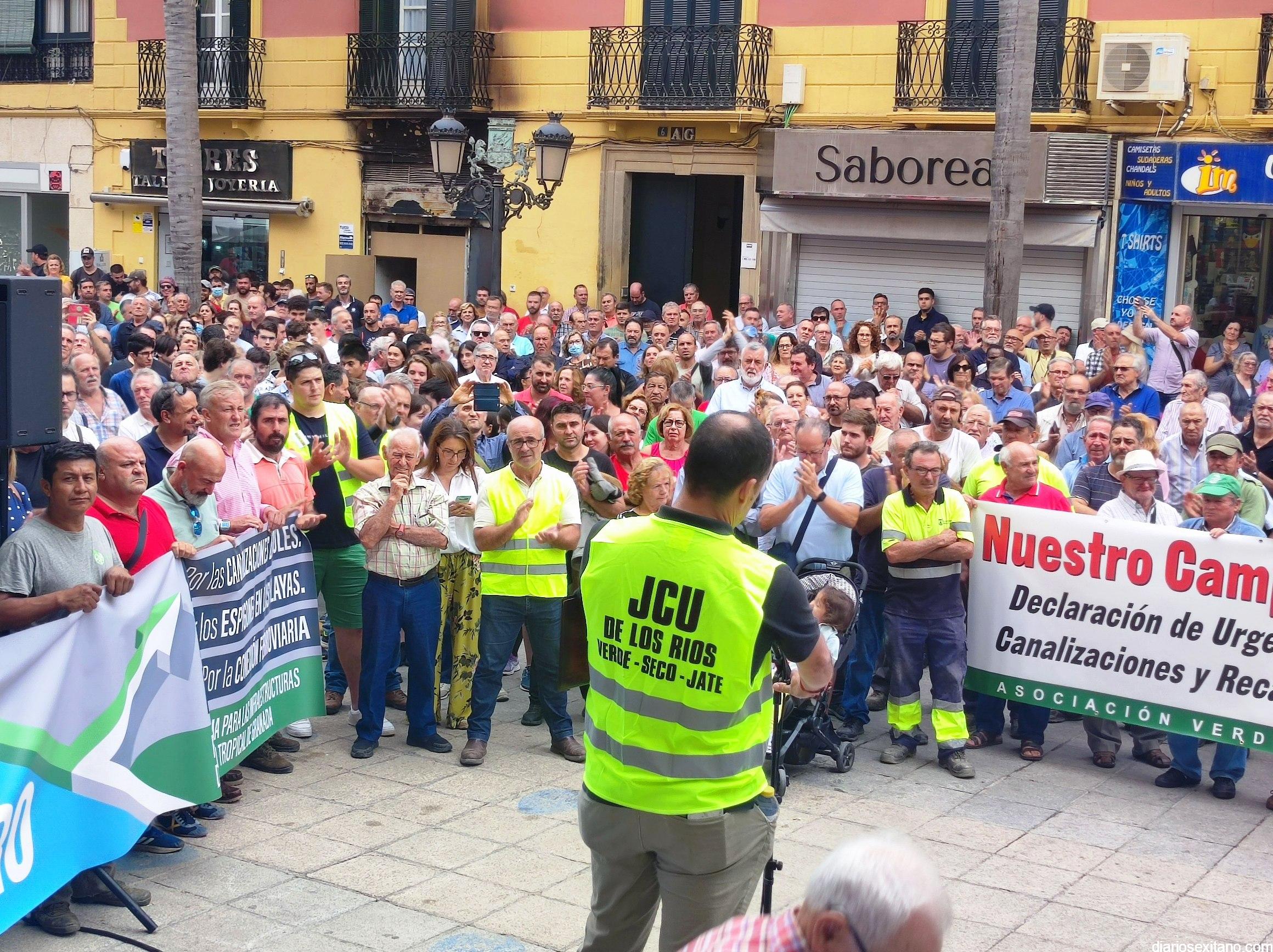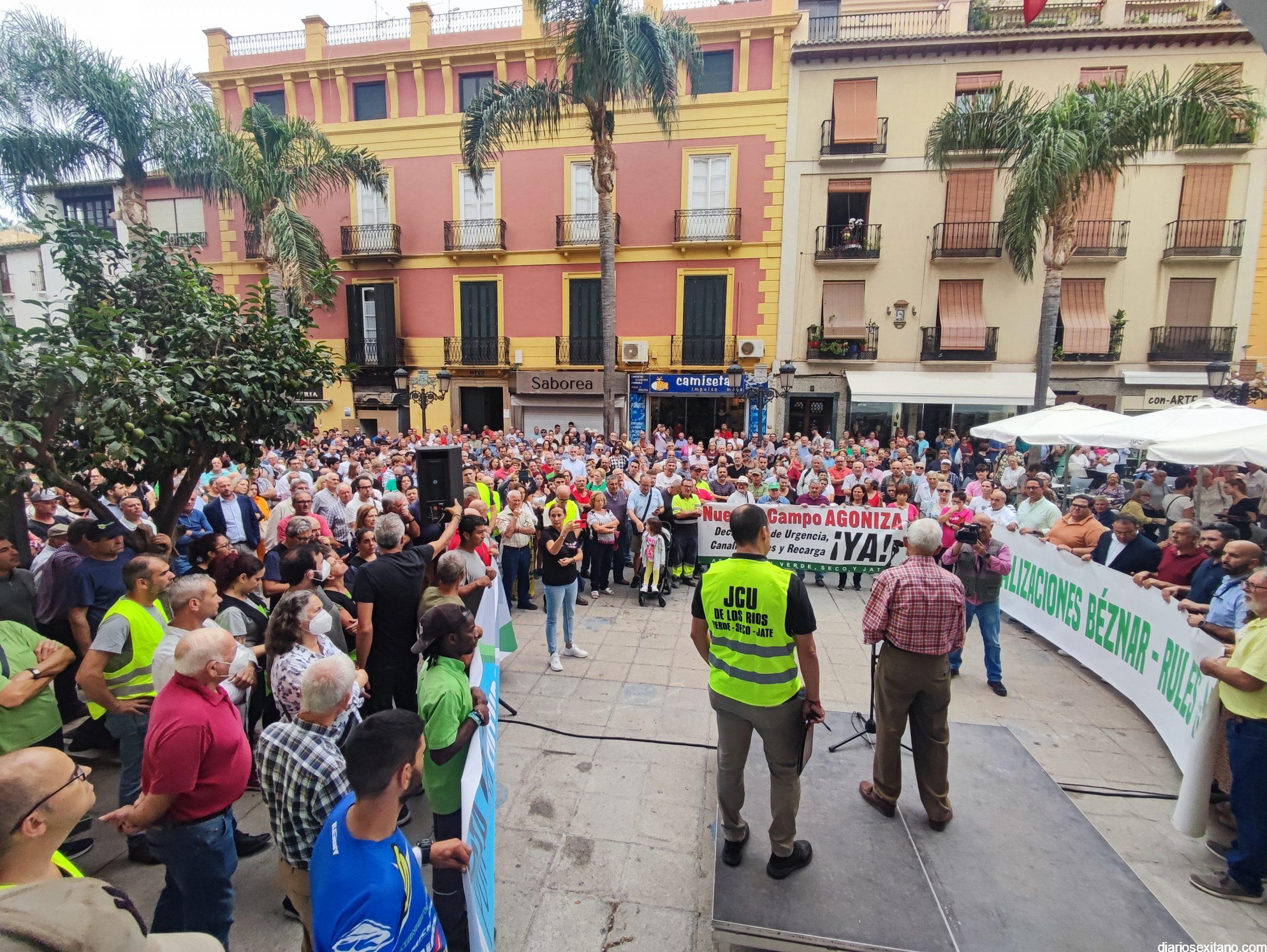 Cientos de vecinos y representantes de todos los sectores económicos locales y comarcales se han concentrado este mediodía en la plaza de la Constitución de Almuñécar ante la convocatoria lanzada desde la Junta Central de Usuarios Ríos Verde Seco y Jate para reivindicar “Agua ya” para la agricultura.
