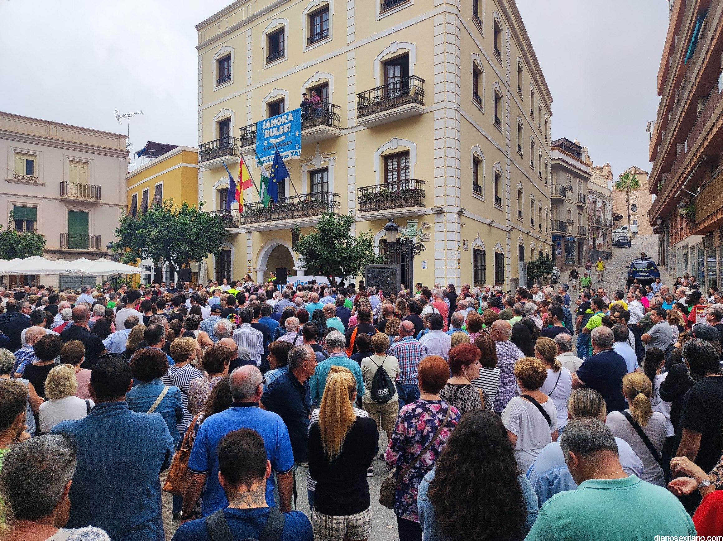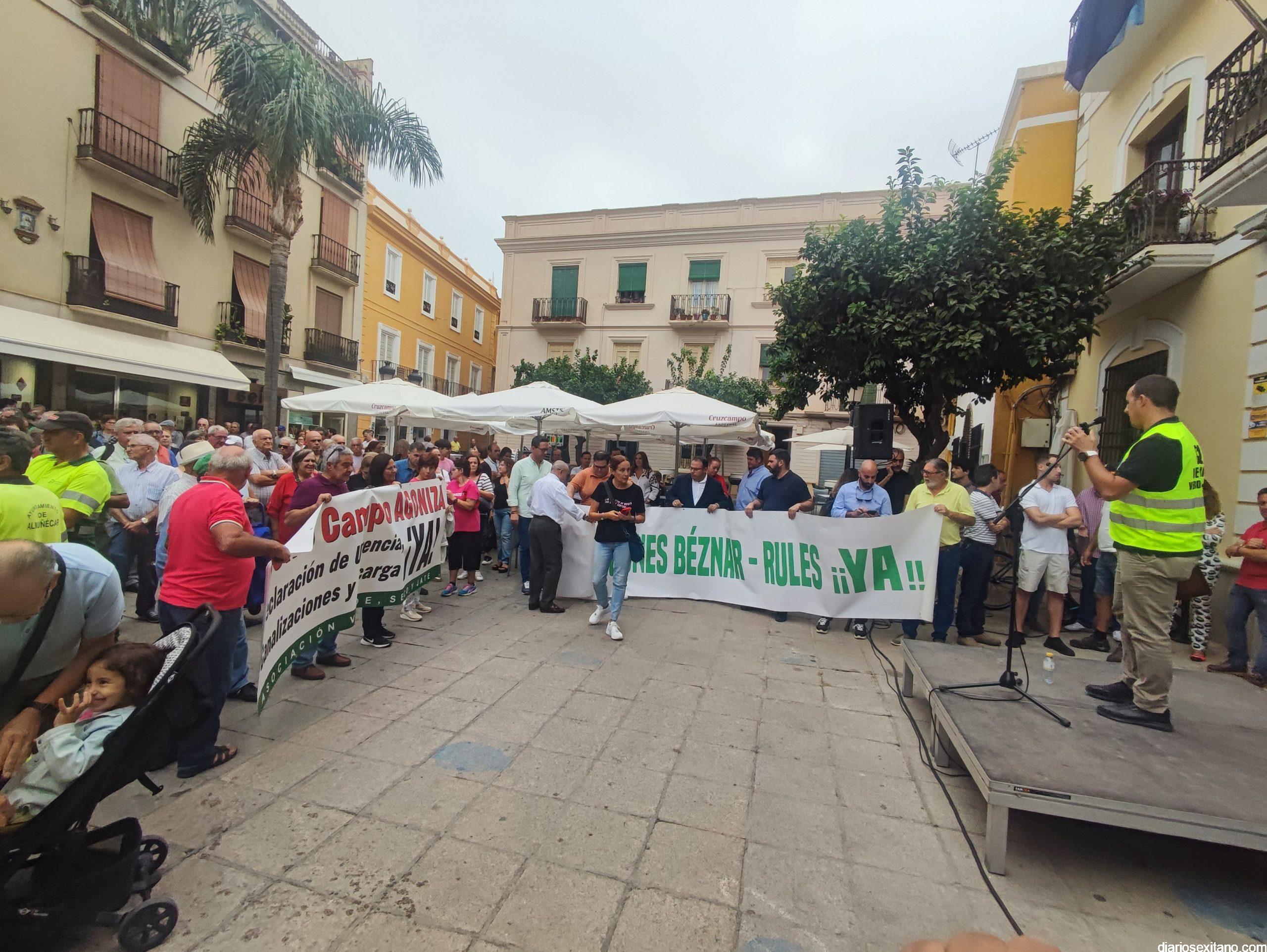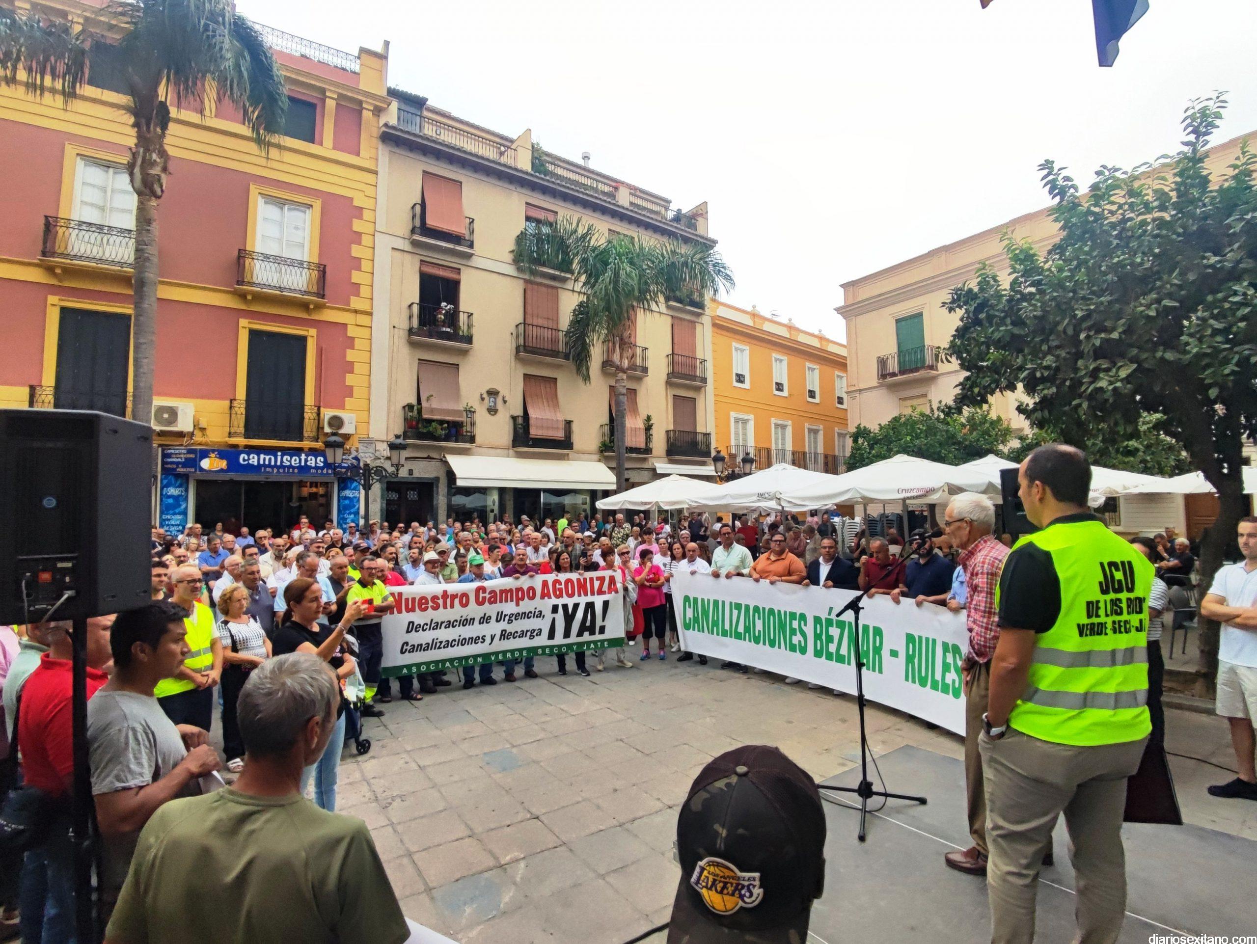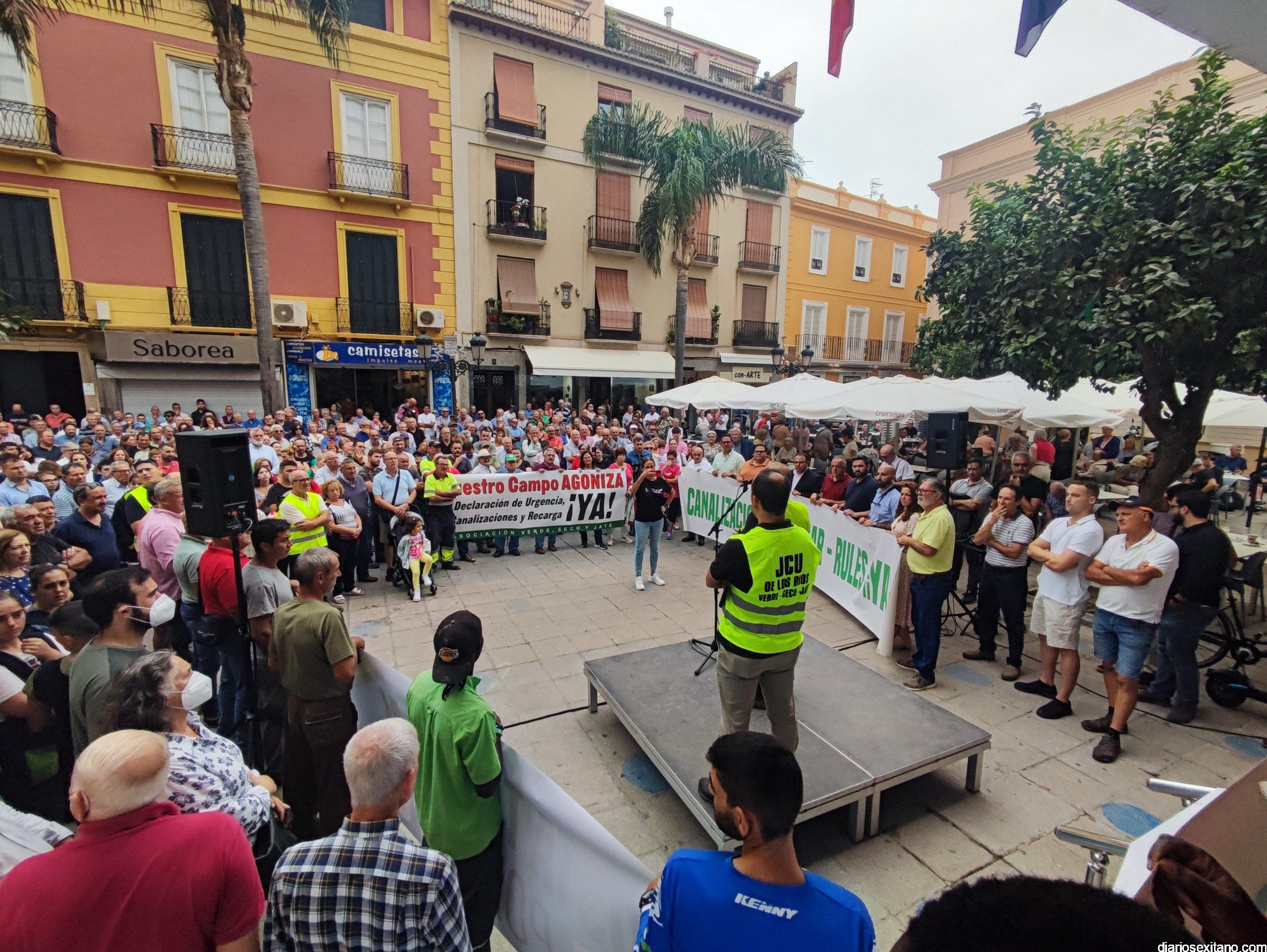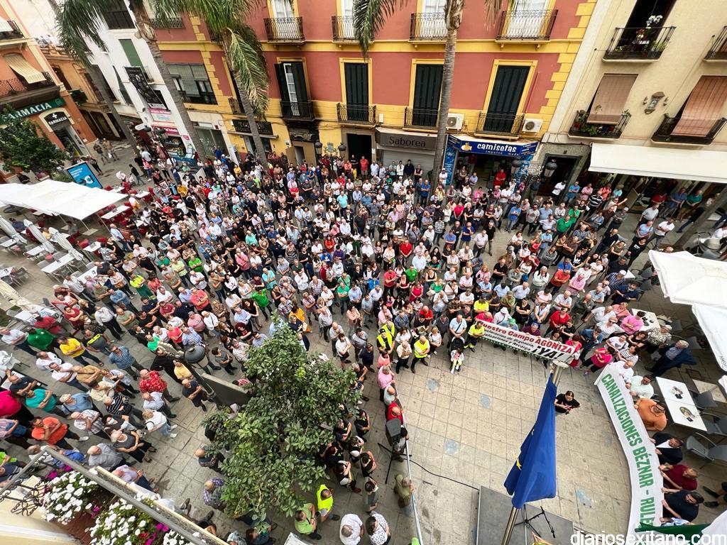 Cientos de vecinos y representantes de todos los sectores económicos locales y comarcales se han concentrado este mediodía en la plaza de la Constitución de Almuñécar ante la convocatoria lanzada desde la Junta Central de Usuarios Ríos Verde Seco y Jate para reivindicar “Agua ya” para la agricultura.