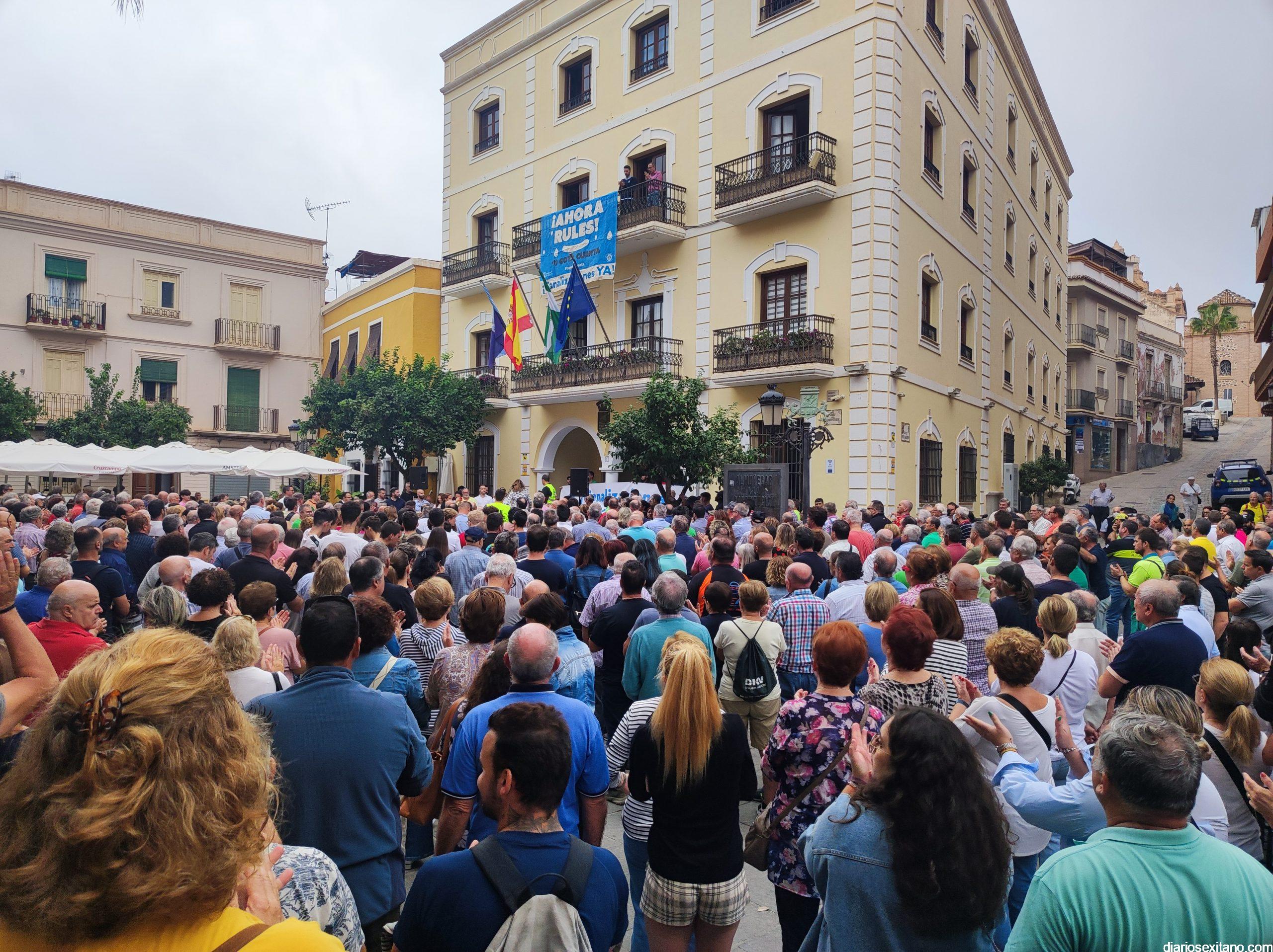 En la misma puerta principal del Ayuntamiento sexitano se ubicó la tarima, rodeada de pancartas reivindicativas y con el equipo de gobierno, encabezado por el alcalde, Juan José Ruiz Joya, y todos los grupos municipales presentes en el acto (PP, Más Almuñécar, Ciudadanos, IU-Podemos, CA y PSOE).