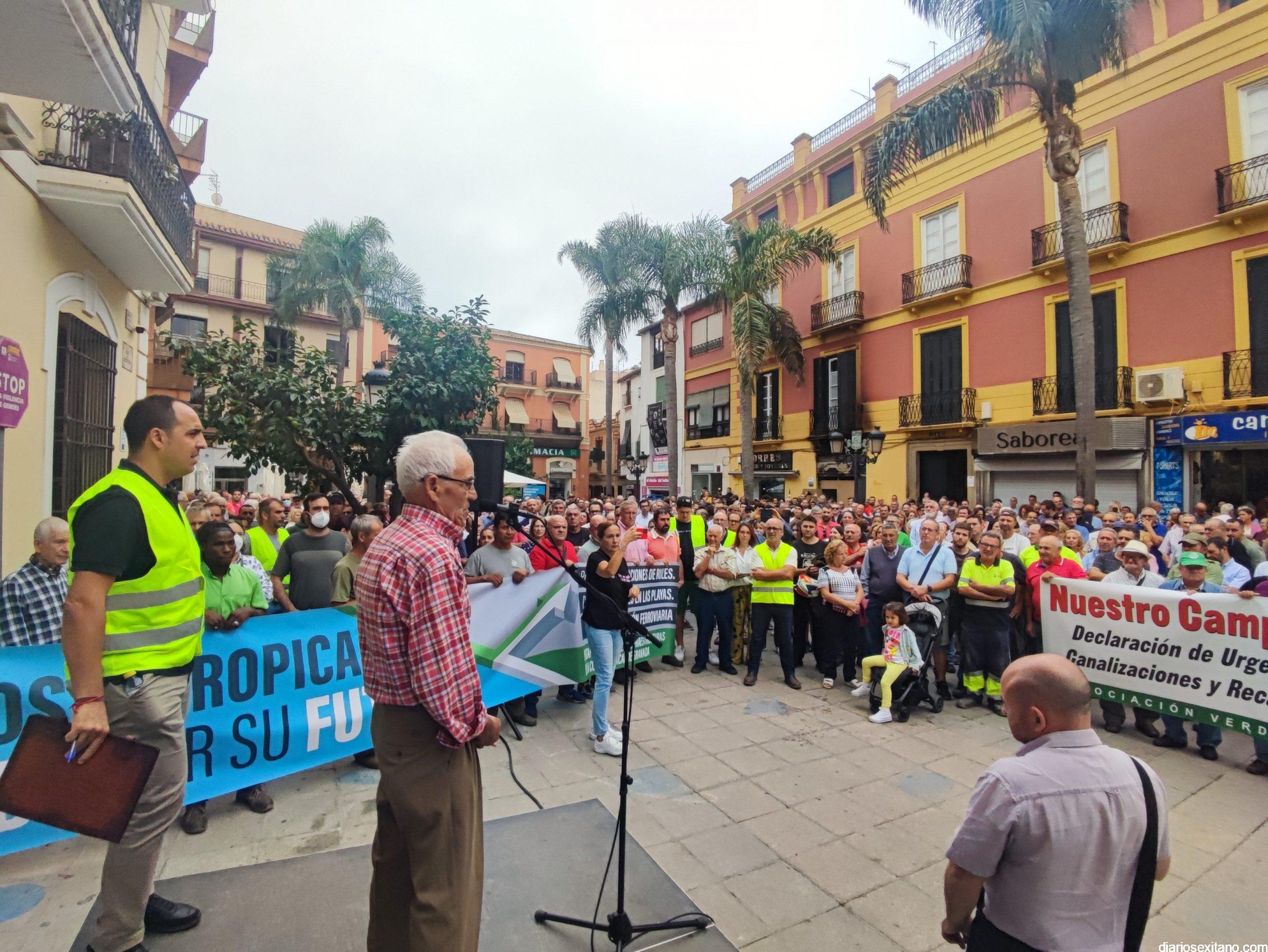 El presidente de la Junta Central de Usuarios (JCU), José Manuel Fernández Medina, tras agradecer el apoyo de todos los vecinos y colectivos que se dieron cita, entre ellos el alcalde de Los Guajares presente también para manifestar que tras la desgracia sufrida por el pueblo vecino, Almuñécar corre el mismo peligro de perder las 3.500 hectáreas de subtropicales.