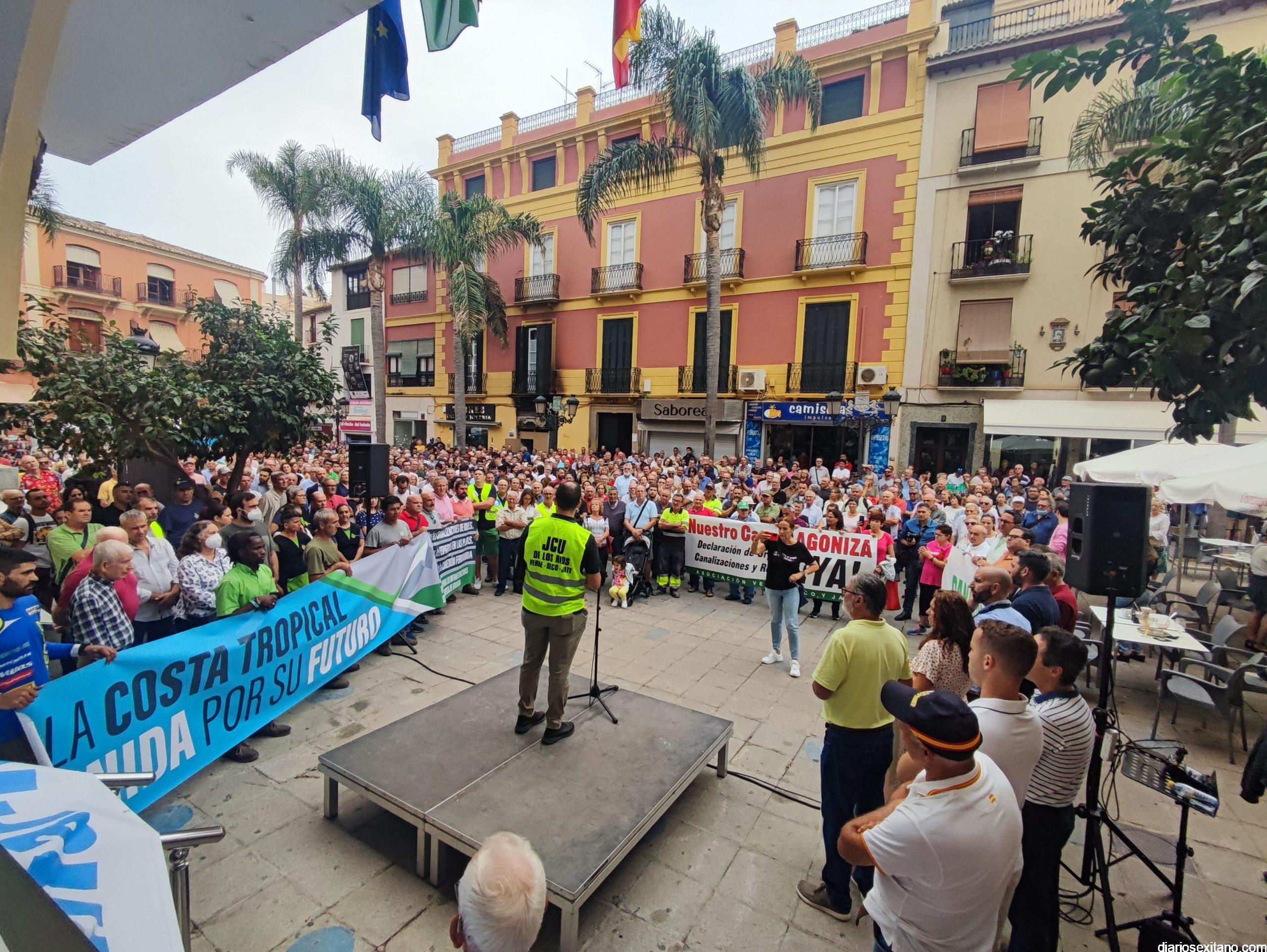 Por el escenario fueron interviniendo desde representantes de comunidades de regantes hasta el presidente de la Junta Central de Usuarios de los Ríos Verde, Seco y Jate, pasando por el comercio local, la construcción y la enseñanza, a los que se sumaron los presidente de la Comunidad de Regantes del Bajo Guadalfeo y de AECOST y portavoz del colectivo por las infraestructuras de la Costa Tropical de Granada.