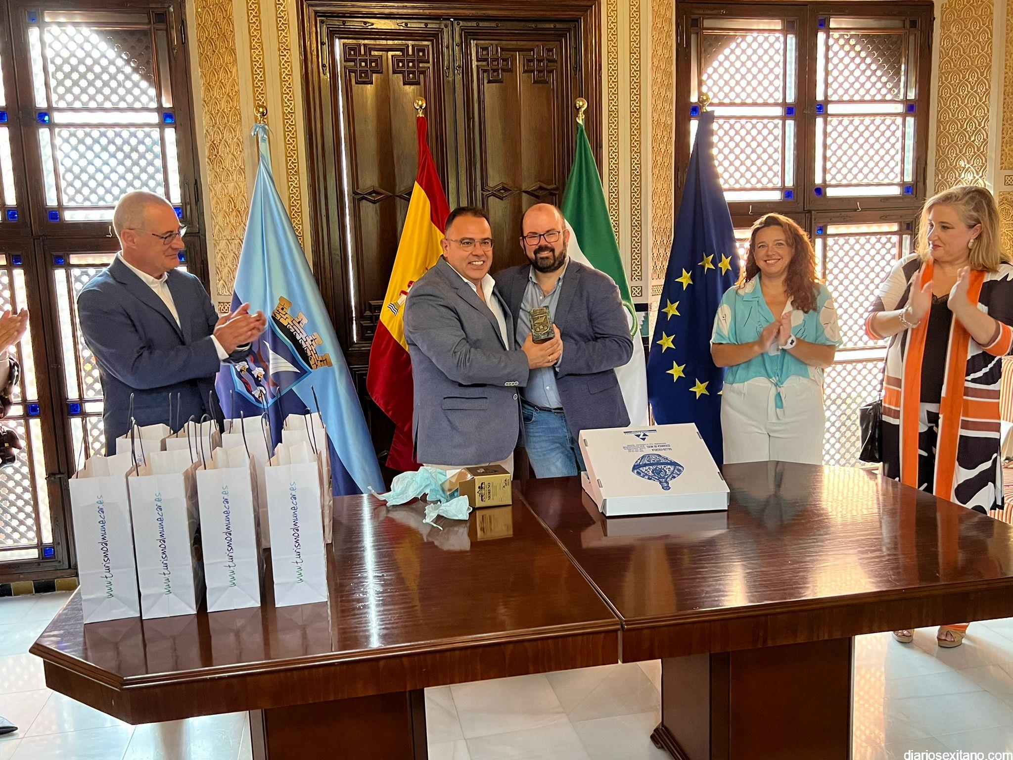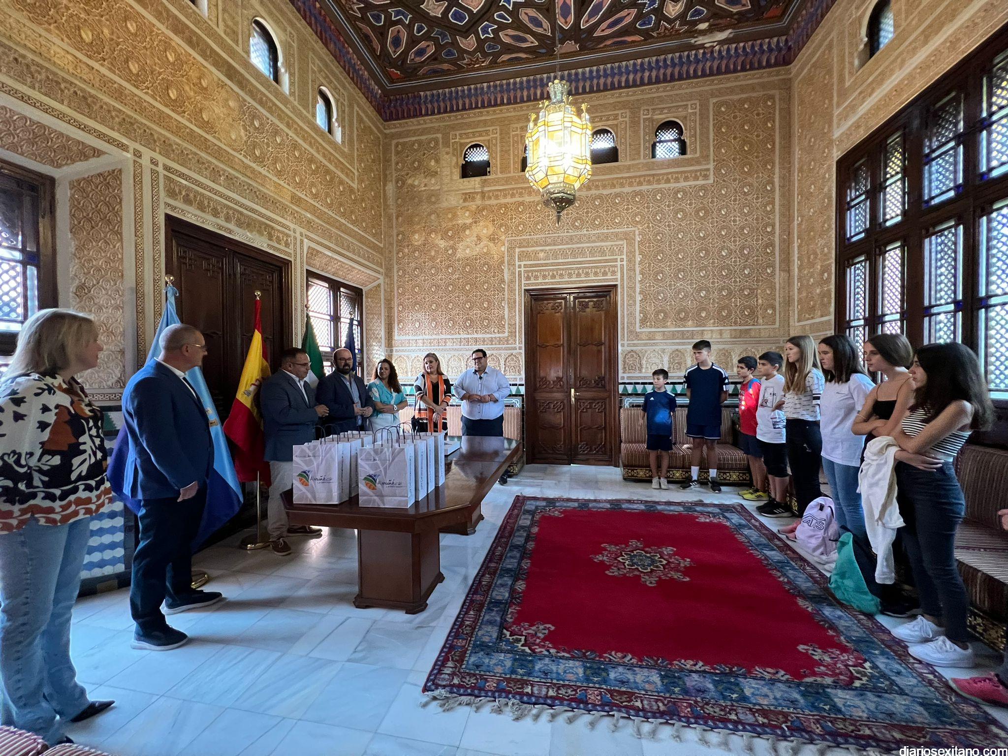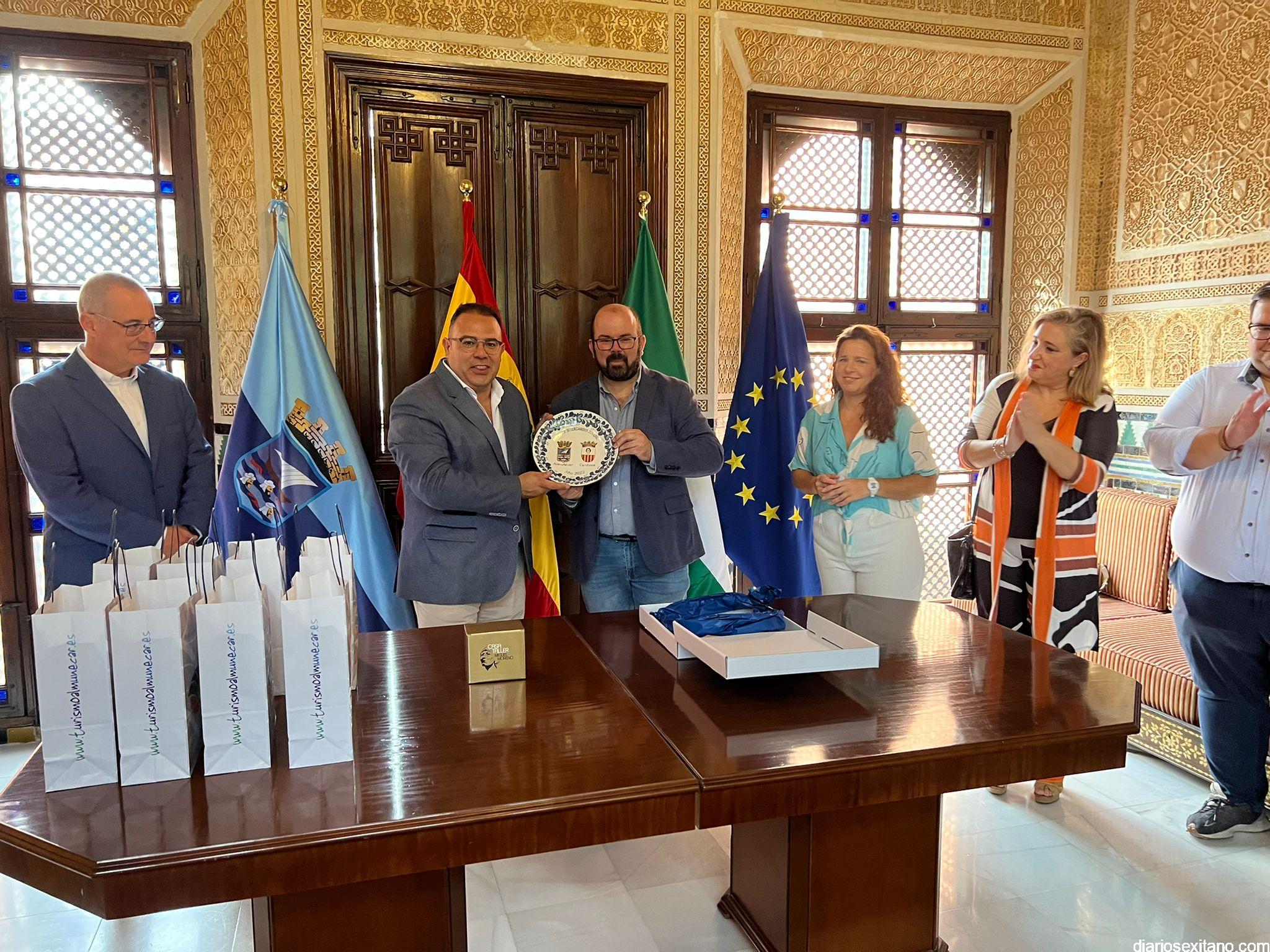 Los jóvenes zaragozanos, que vienen acompañados de una delegación municipal con su alcalde al frente, Sergio Ortiz Gutiérrez, permanecerán en el municipio sexitano hasta el martes. Precisamente durante el acto de bienvenida ambos ediles intercambiaron regalos, uno de los cuales recoge, en un plato de cerámica, este primer intercambio entre ambos municipios”.
