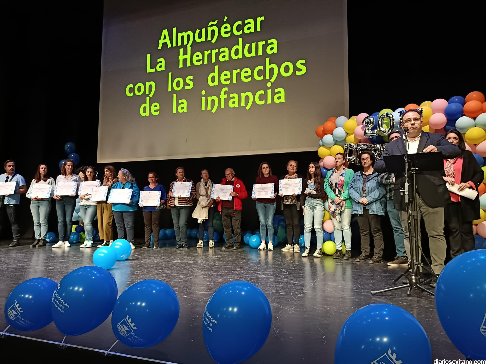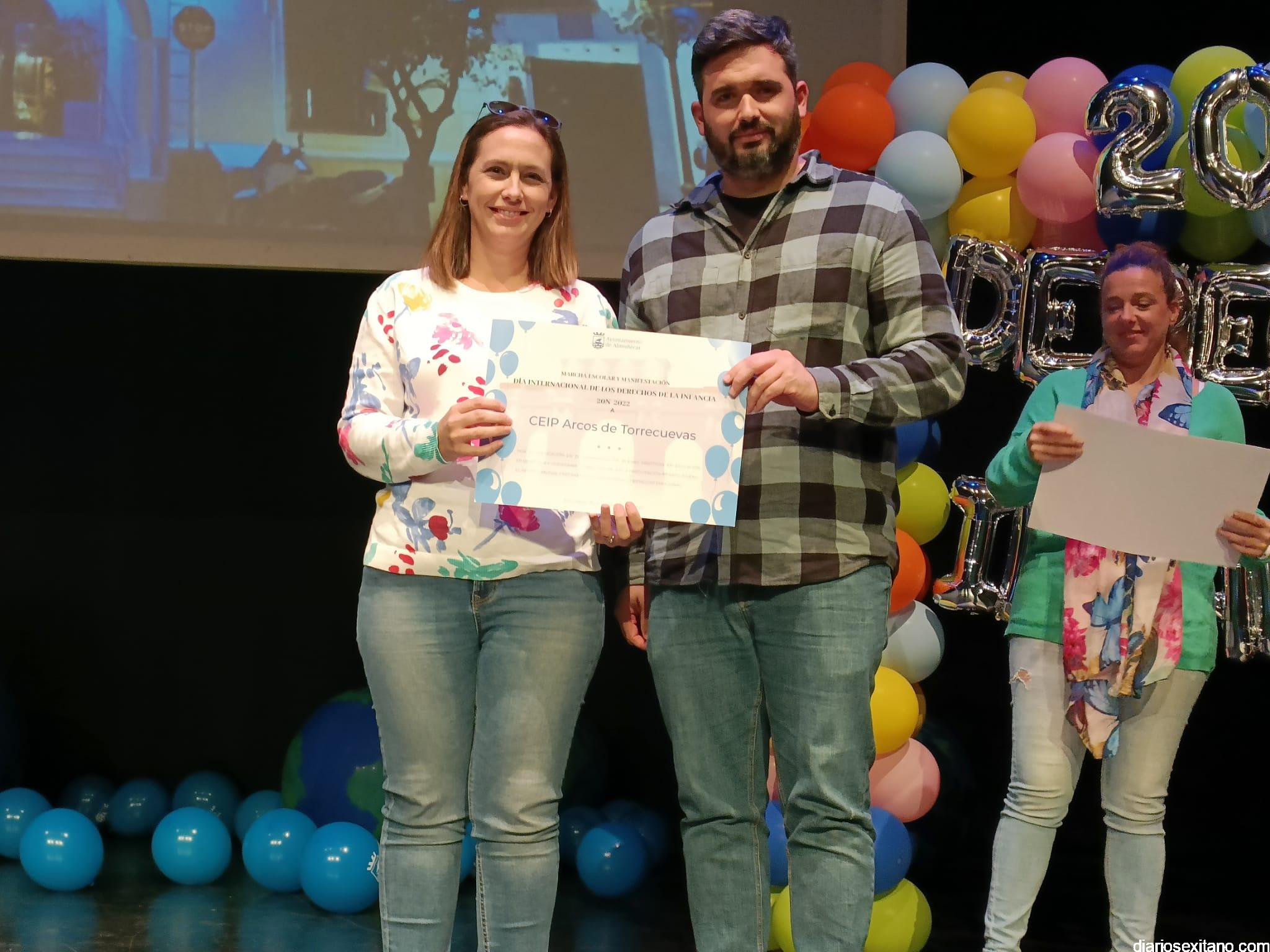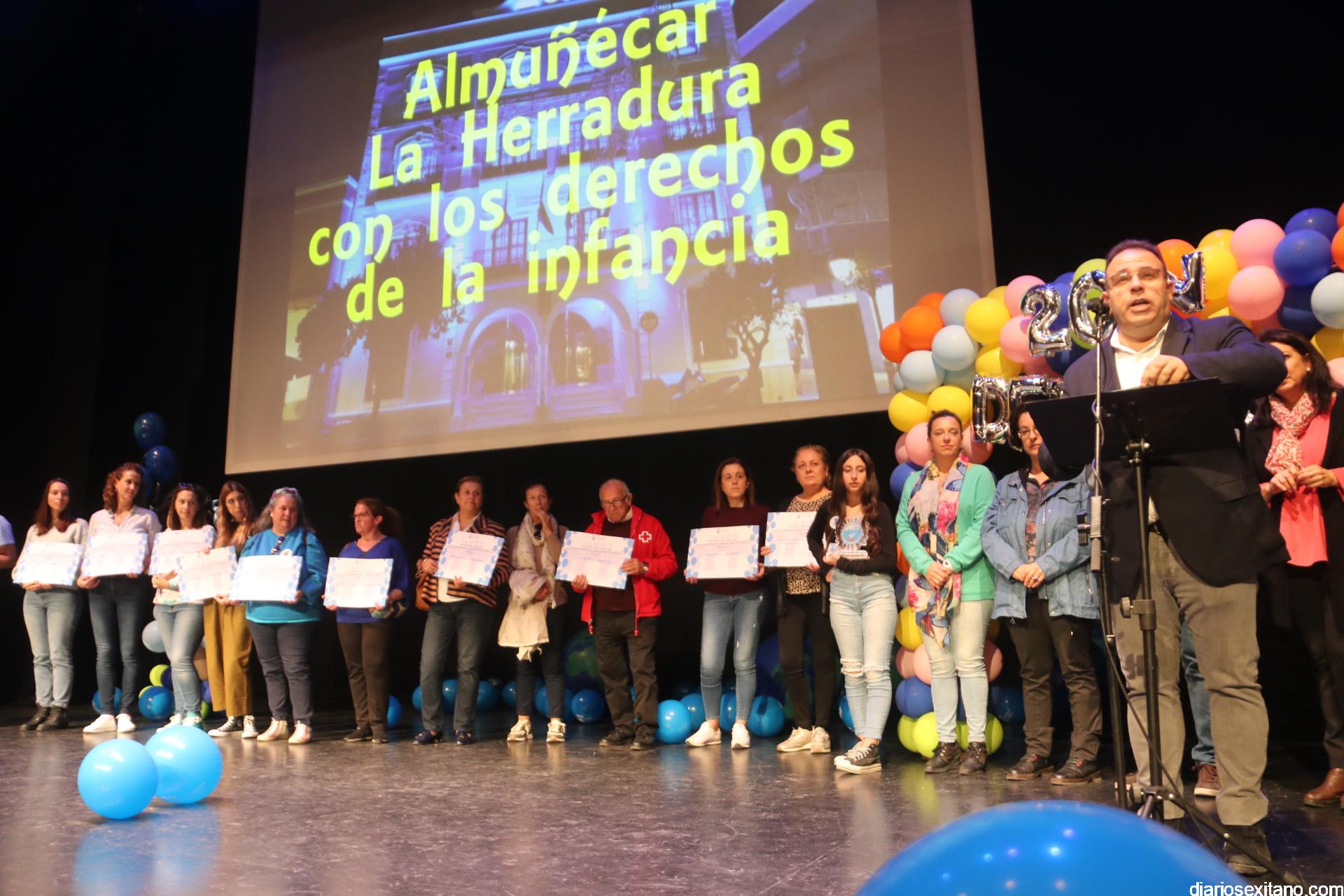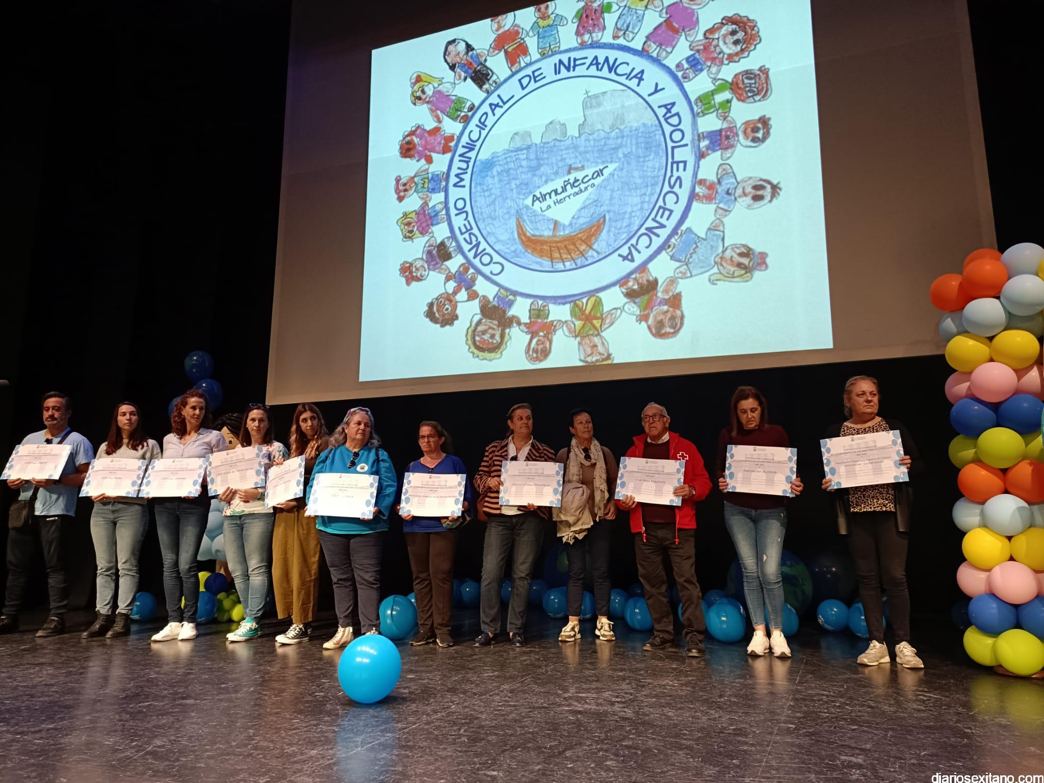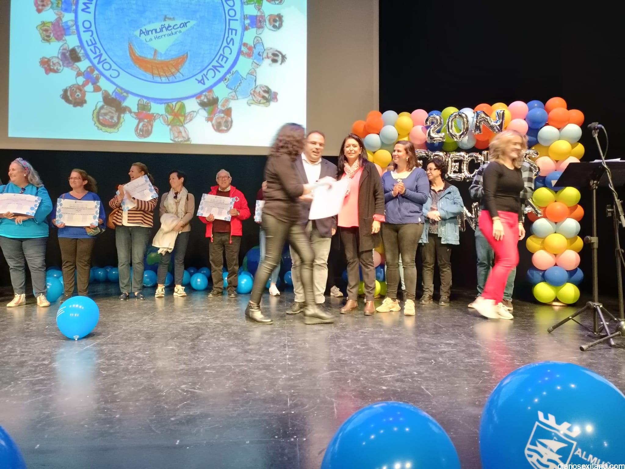Tras la lectura de los Derechos y Responsabilidades por parte del alumnado, donde recordaron que se cumplen 33 años de éstos, se procedió al reconocimiento a los centros educativos participantes y asociaciones locales como: UNICEF, Asociación Española contra el Cáncer, Manos Unidas, Madres Solas, Cáritas Parroquial, Cruz Roja, ASINAL y ALOJHA. A todos ellos les fue entregado un diploma por su participación.