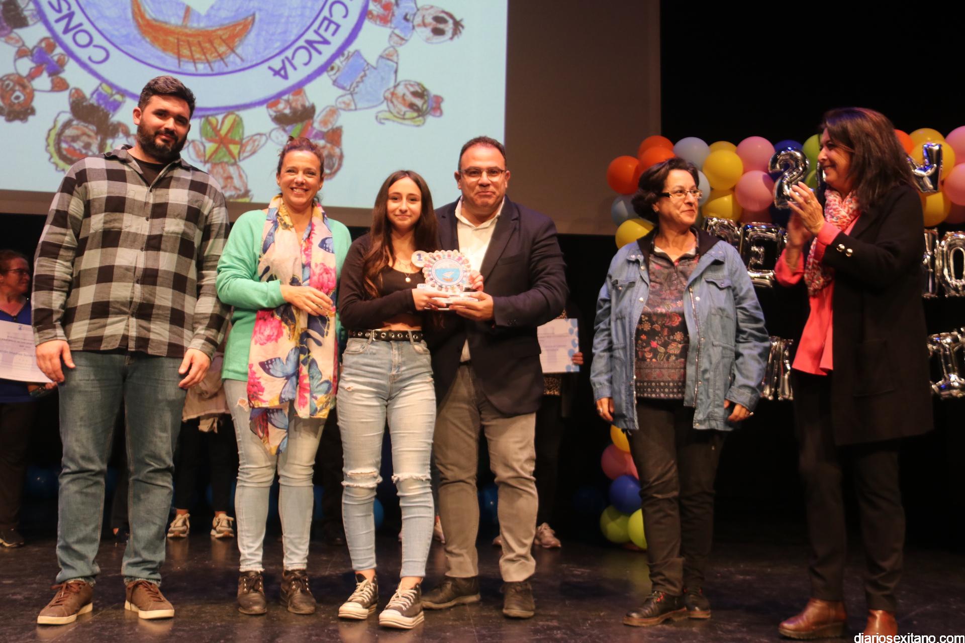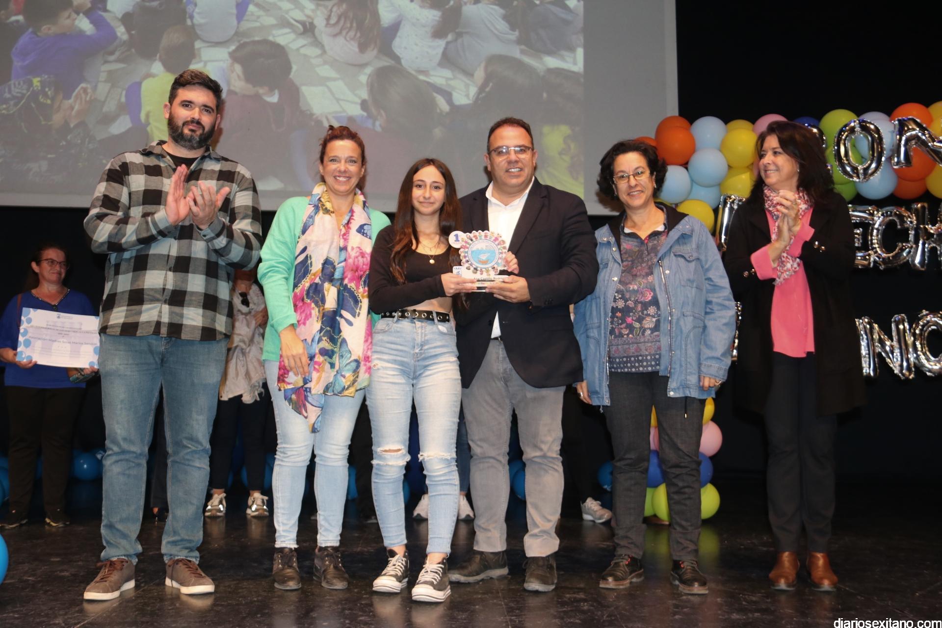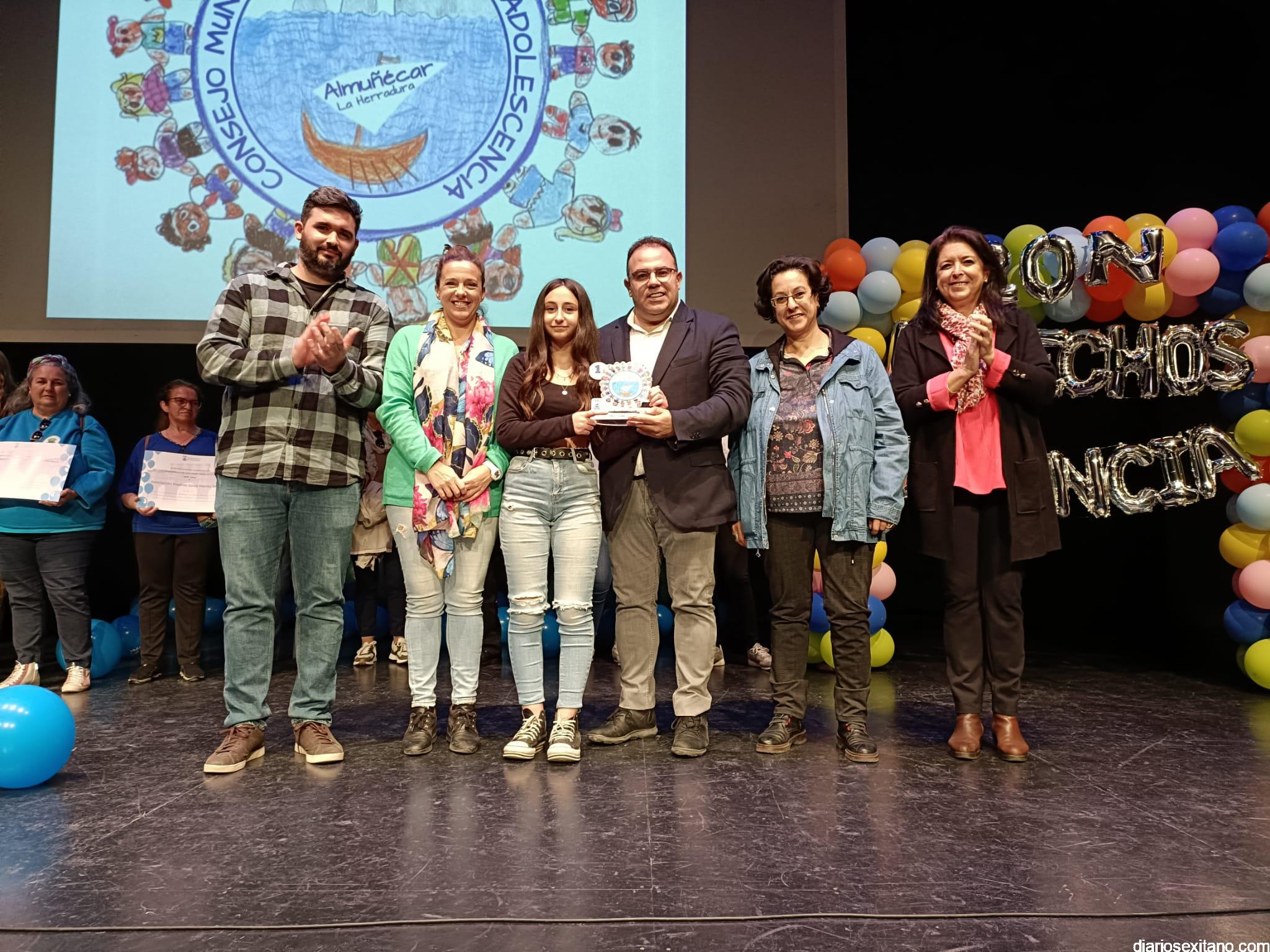 Por otro lado, se entregó un premio a la ganadora del Certamen Escolar “Pon Color a tus Derechos” del Curso 2019-20, Ana Castillo Rodríguez, de 4º de Primaria del Colegio Argos de Torrecuevas, autora del dibujo elegido y que tuvo el lema “la Participación Infantil: queremos que se nos escuche”, en el que se pidió que fueran los alumnos los que propusieran el logo e imagen del Consejo Municipal de Infancia y Adolescencia de Almuñécar y La Herradura. Ana, acompañada de su profesora, Cristina, recogió el galardón de manos del Alcalde de Almuñécar.