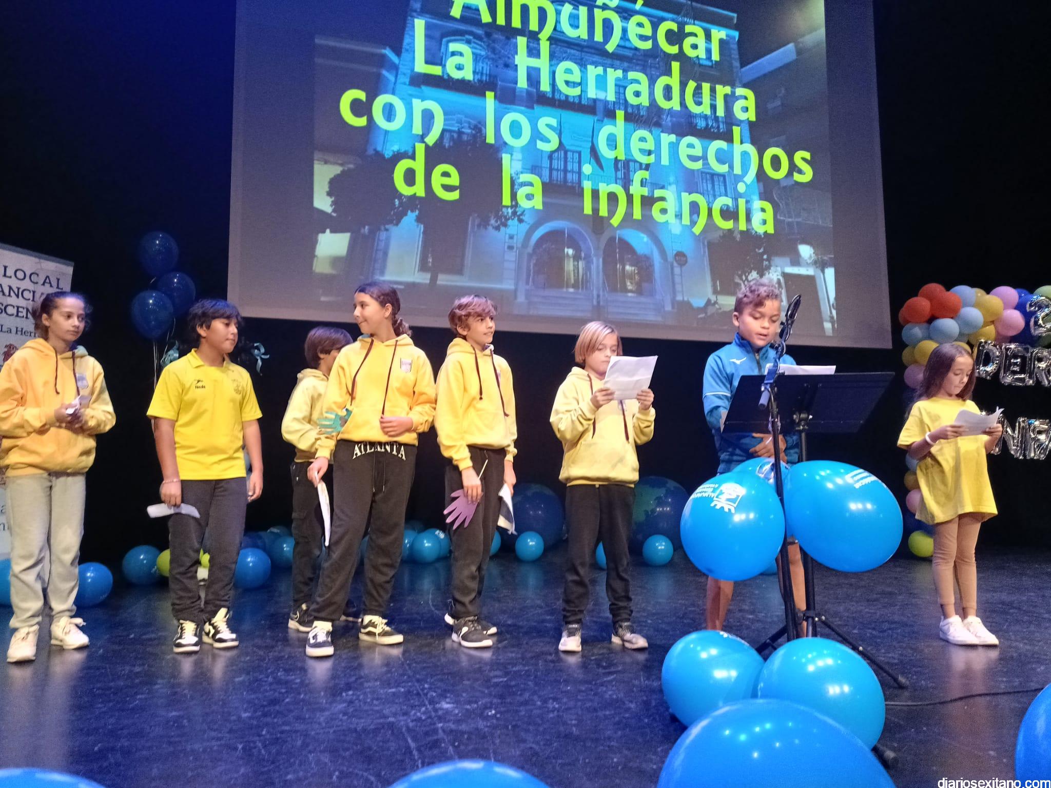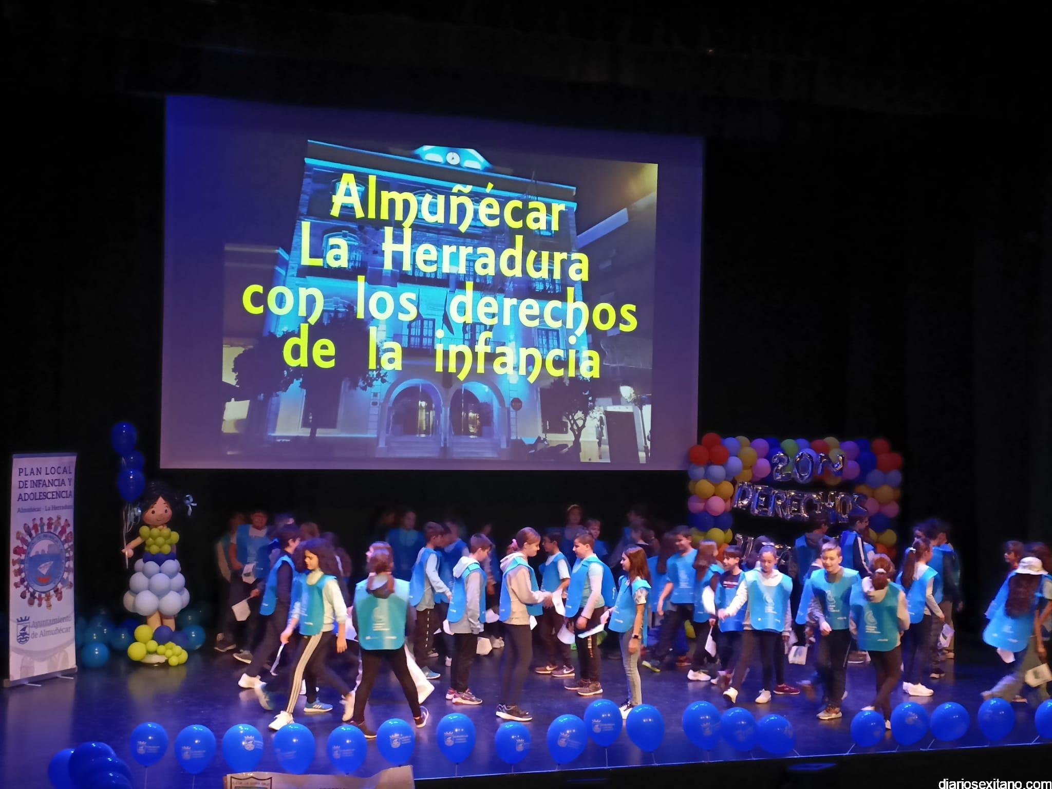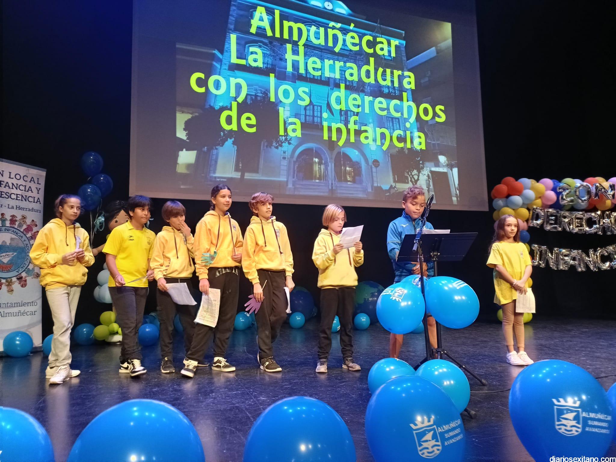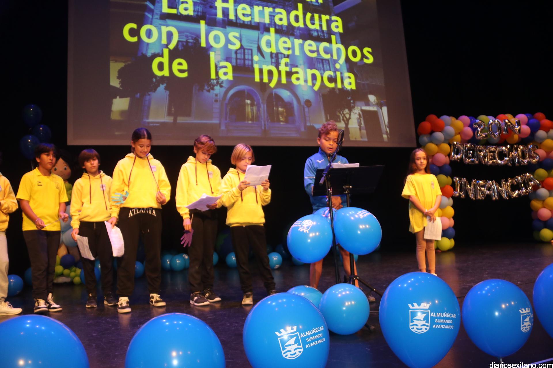 Más de 430 alumnos acompañados de su profesorado, pertenecientes a los centros de Primaria de Almuñécar y La Herradura han participado este lunes, en el acto central que se anunció para el pasado viernes con motivo del Día de la Infancia pero que tuvo que posponerse por la lluvia.