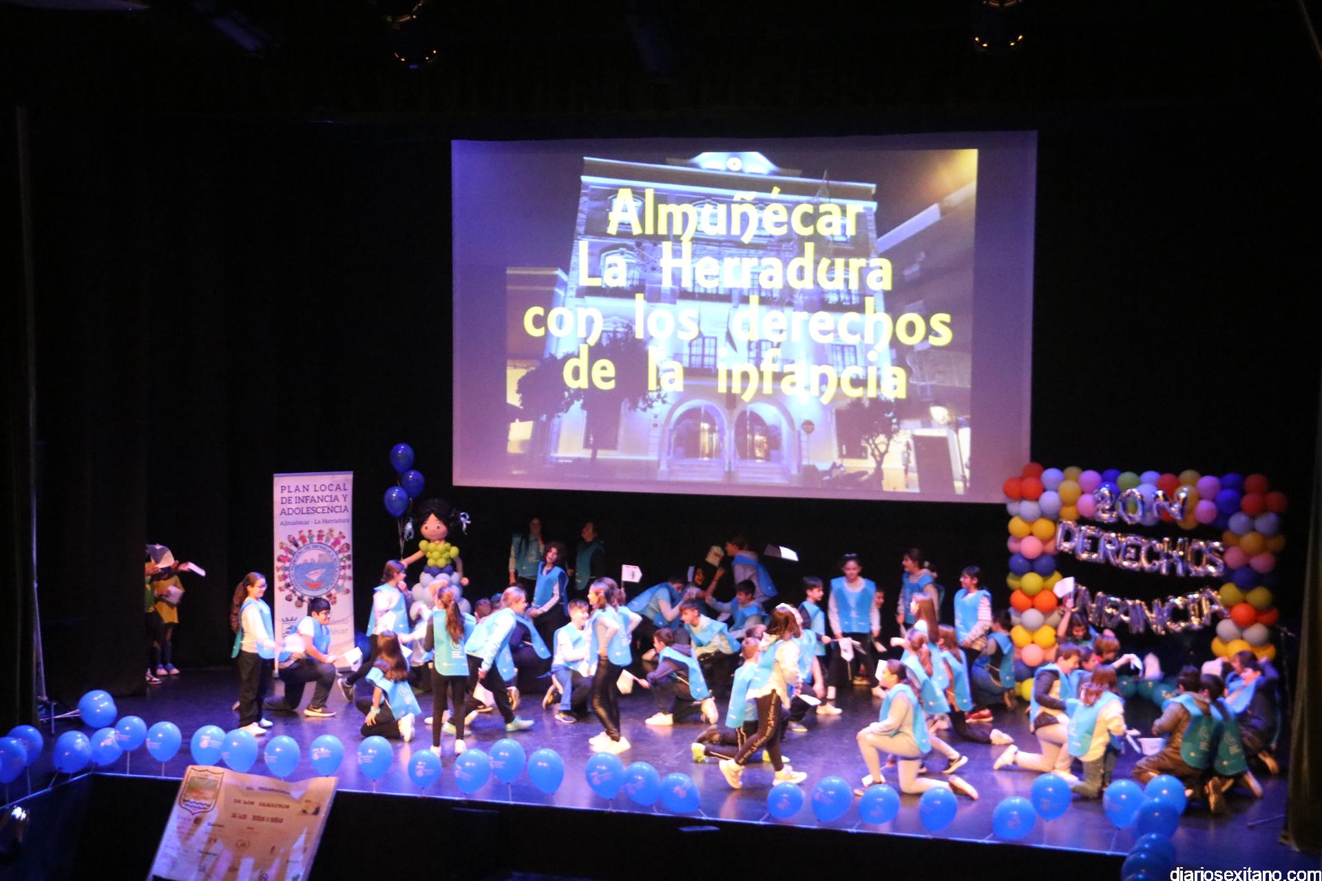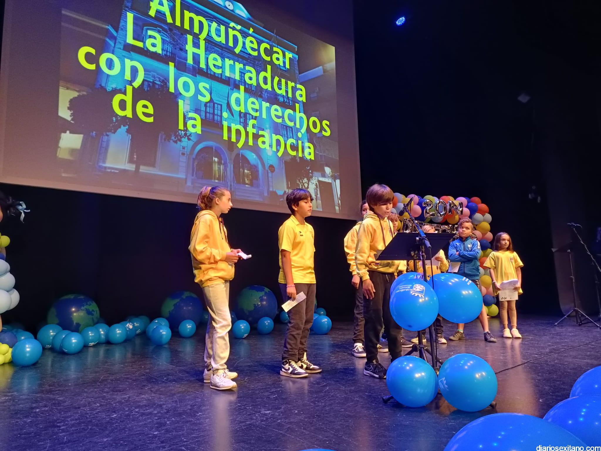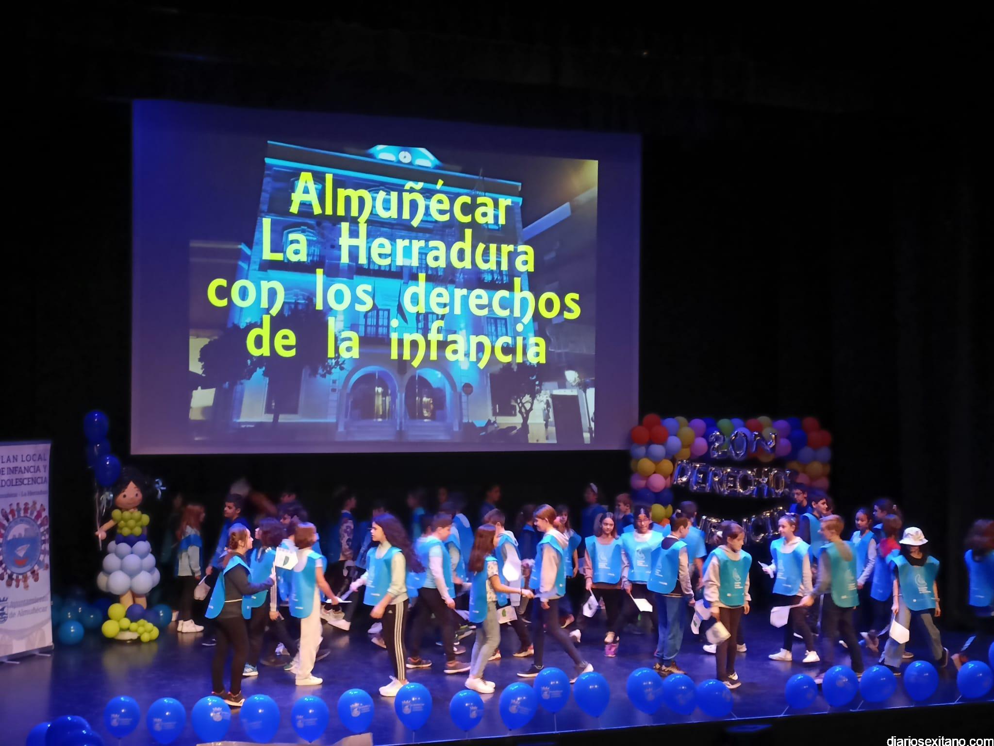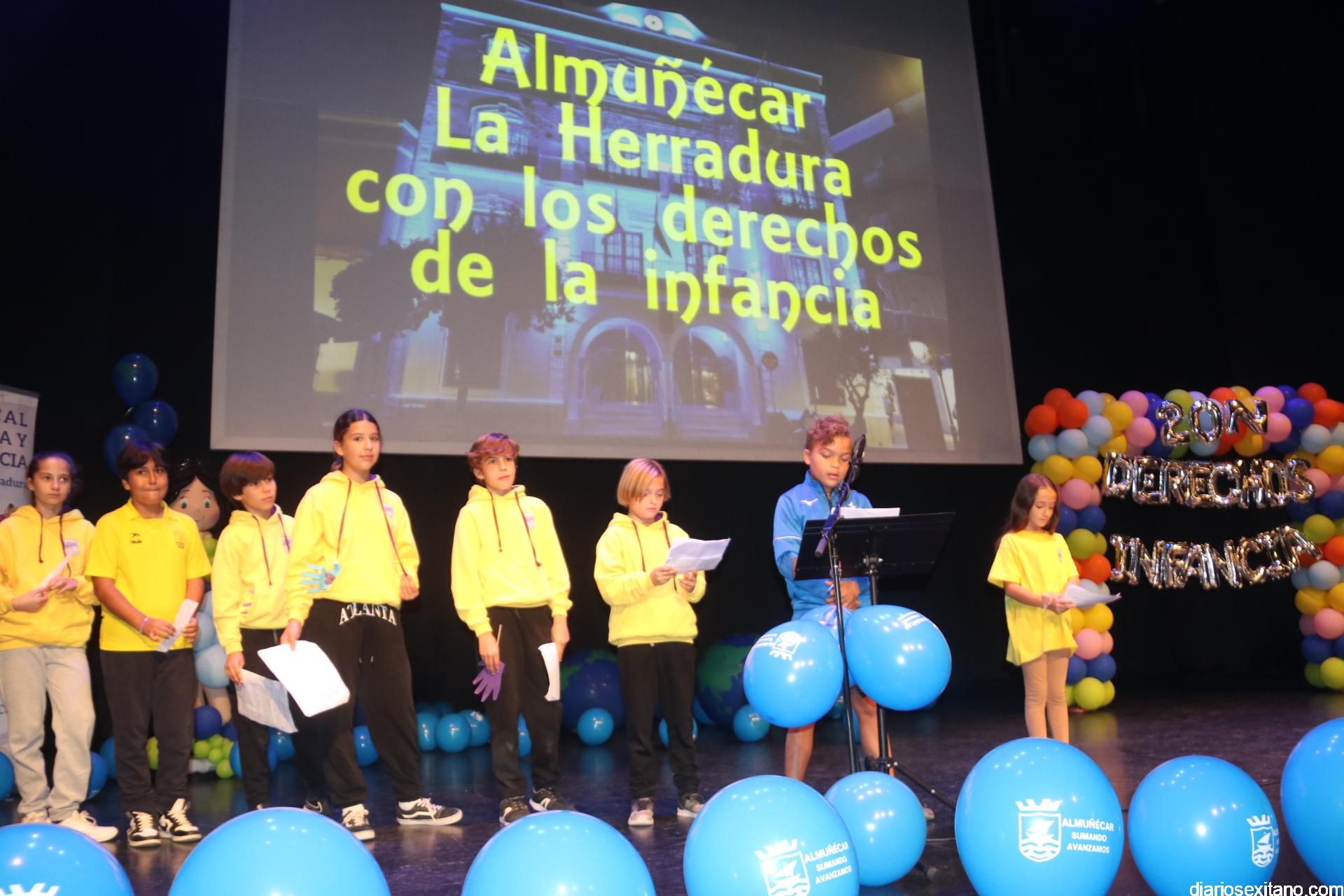 Más de 430 alumnos acompañados de su profesorado, pertenecientes a los centros de Primaria de Almuñécar y La Herradura han participado este lunes, en el acto central que se anunció para el pasado viernes con motivo del Día de la Infancia pero que tuvo que posponerse por la lluvia.
