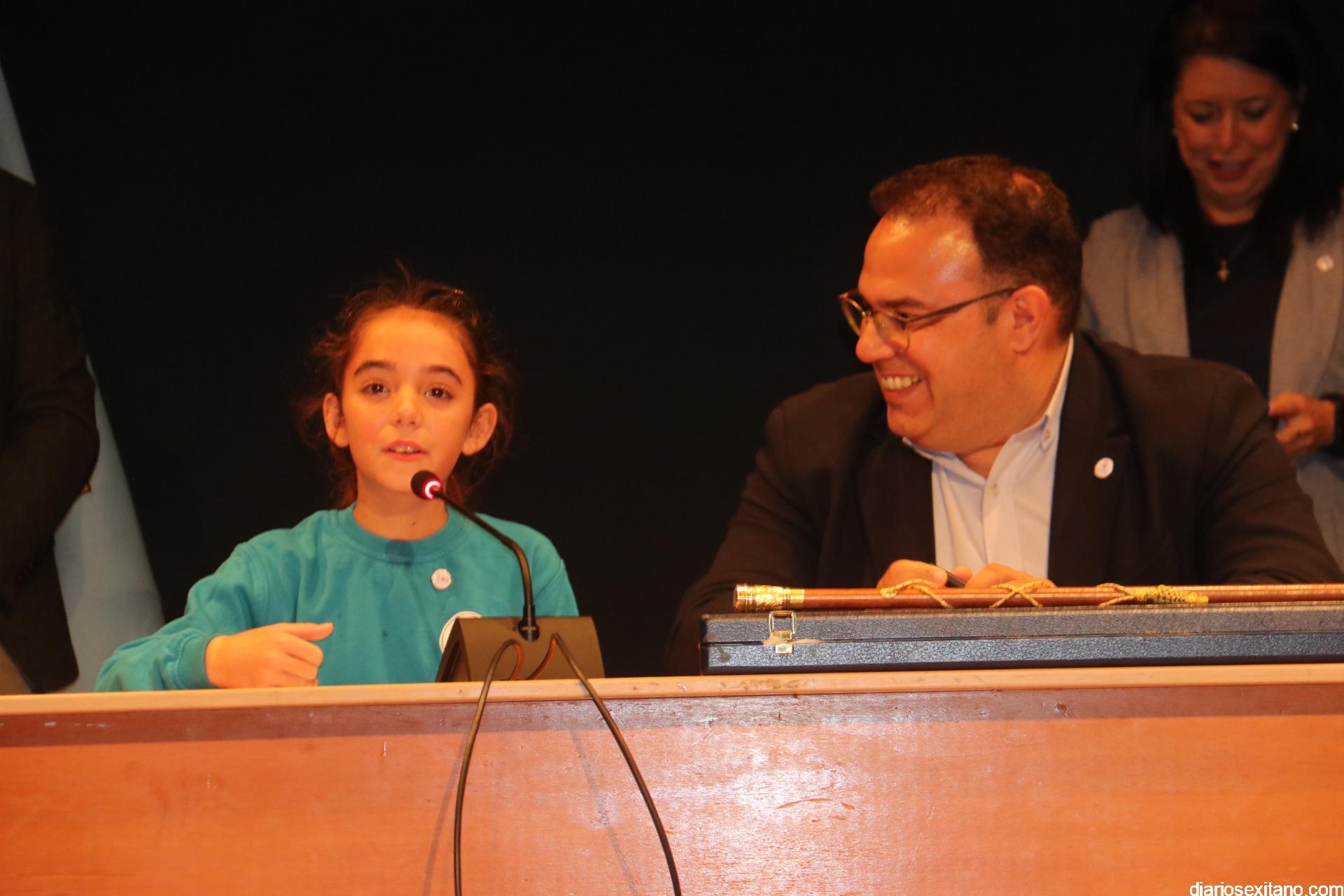 El alcalde, Juan José Ruiz Joya dio la bienvenida a todos los alumnos y representantes de los centros educativos antes de proclamar los candidatos de cada colegio. Posteriormente y tras las intervenciones de los representantes con sus necesidades y propuestas, se procedió a la elección de alcalde o alcaldesa, que tras dilucidar un empate en la votación, fue elegida Irina Rodrigo Najarro, del Colegio Publico La Noria, quien recibió los atributos y pin de alcaldesa, antes de realizar el discurso. A continuación se proyectó un video sobre los actos celebrados en la marcha escolar y otros actos.