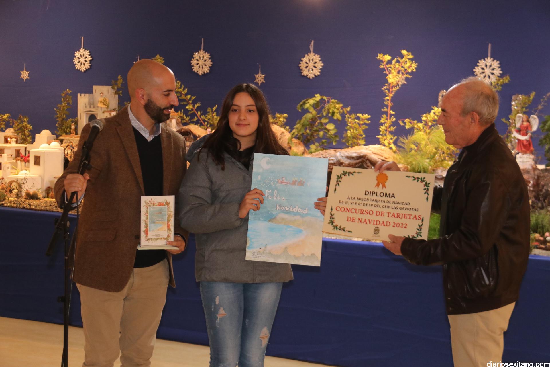 En el acto también se hizo público el fallo del “Concurso de Postales Navideñas 2022” convocado por la Tenencia de Alcaldía dirigido al Primer y Segundo Ciclo de Primaria del CEIP Las Gaviotas de La Herradura, y que en esta edición correspondió a Damián Pérez Barbero y Eva Ruiz, respectivamente, que recibieron un diploma y un premios a cada uno por valor de 50 euros para canjear por material escolar en librerías.