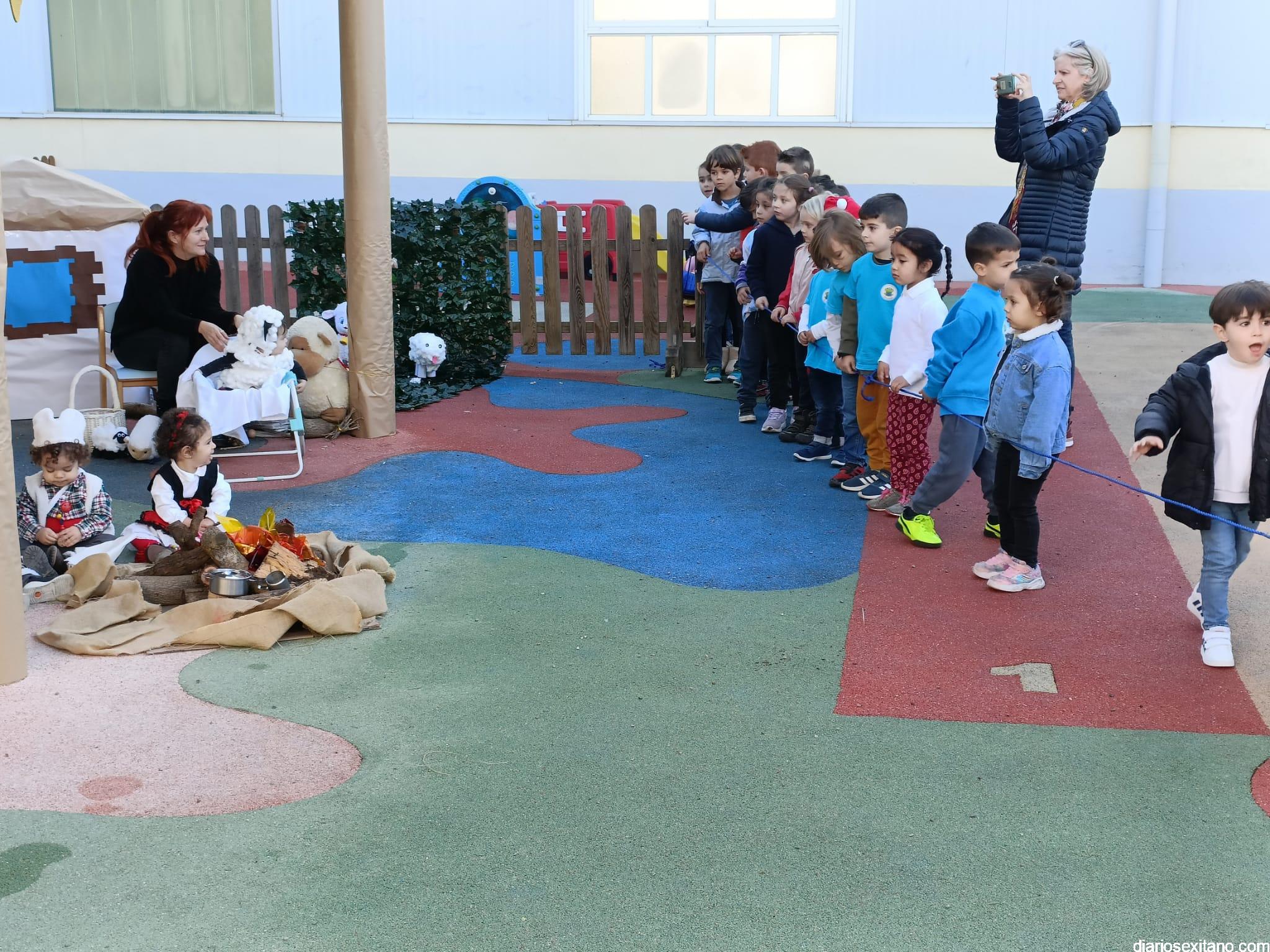 Precisamente entre las decenas de visitantes que ha tenido el Belén Viviente de “Los Marinos” han estado los alumnos del vecino Colegio Público “La Noria”. Por cierto, muchos de los cuales fueron protagonistas años anteriores de los distintos personajes que componen el montaje del citado Belén.