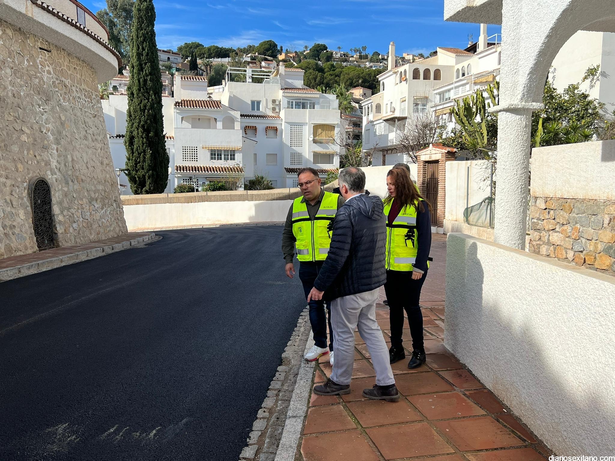 El Ayuntamiento de Almuñécar lleva a cabo esta semana las obras de rehabilitación del pavimento de la calzada de la calle Camping , que comunica la calle Tesorillo con el vial de acceso a la playa El Pozuelo, cerca del hotel Bahía Tropical, con una inversión de casi 22.000 euros, que son financiadas con cargo a la subvención para gastos extraordinarios de inversión 2022 de Diputación de Granada, según ha informado la teniente de alcalde delegada de Mantenimiento, Beatriz González, quien ha girado visita a los trabajos de esta vía, junto con el alcalde, Juan José Ruiz Joya y los técnicos municipales.