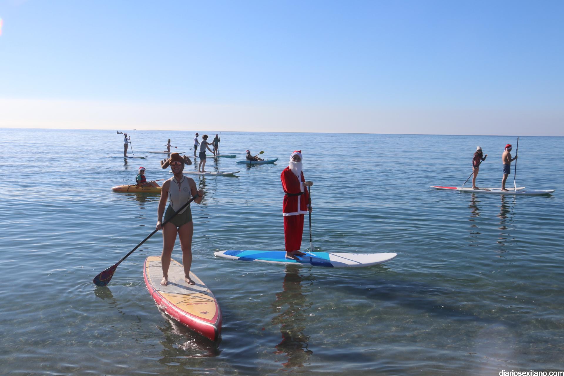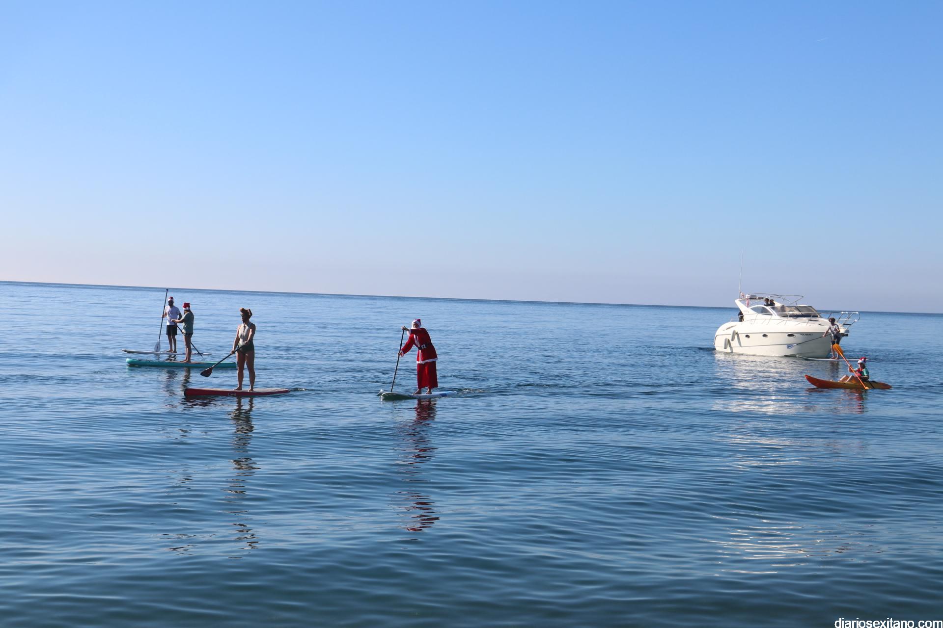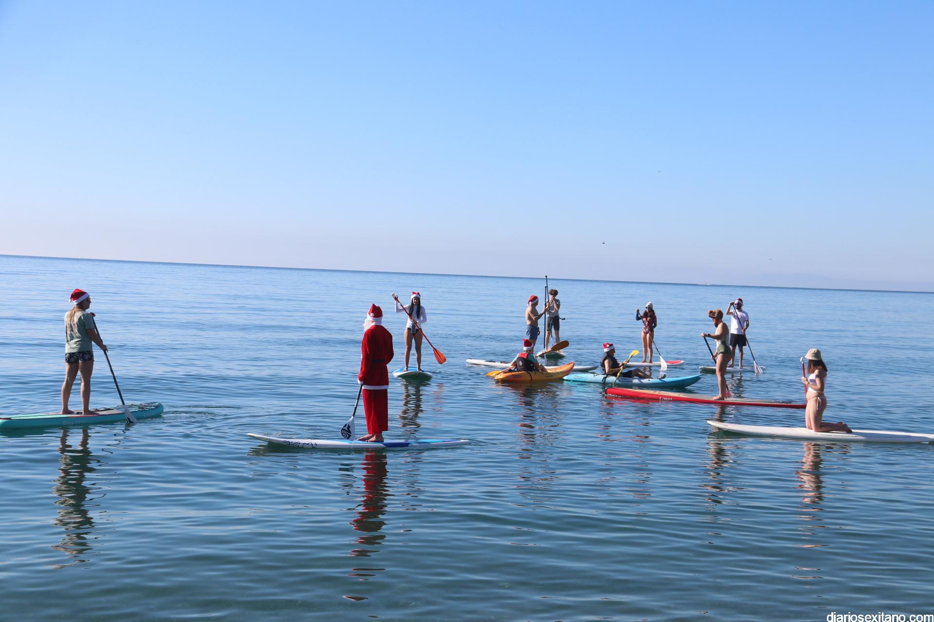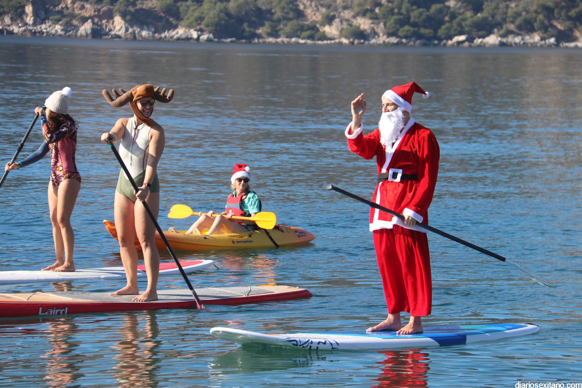 El buen tiempo hizo que Papá Noel llegara a la Playa de La Herradura en paddle surf acompañado de un amplio séquito. La buena temperatura ambiente hizo que se viviera una jornada con excelente temperatura ambiente que, unido al buen estado del mar, hizo que el recorrido fuese saludado por numerosas personas.