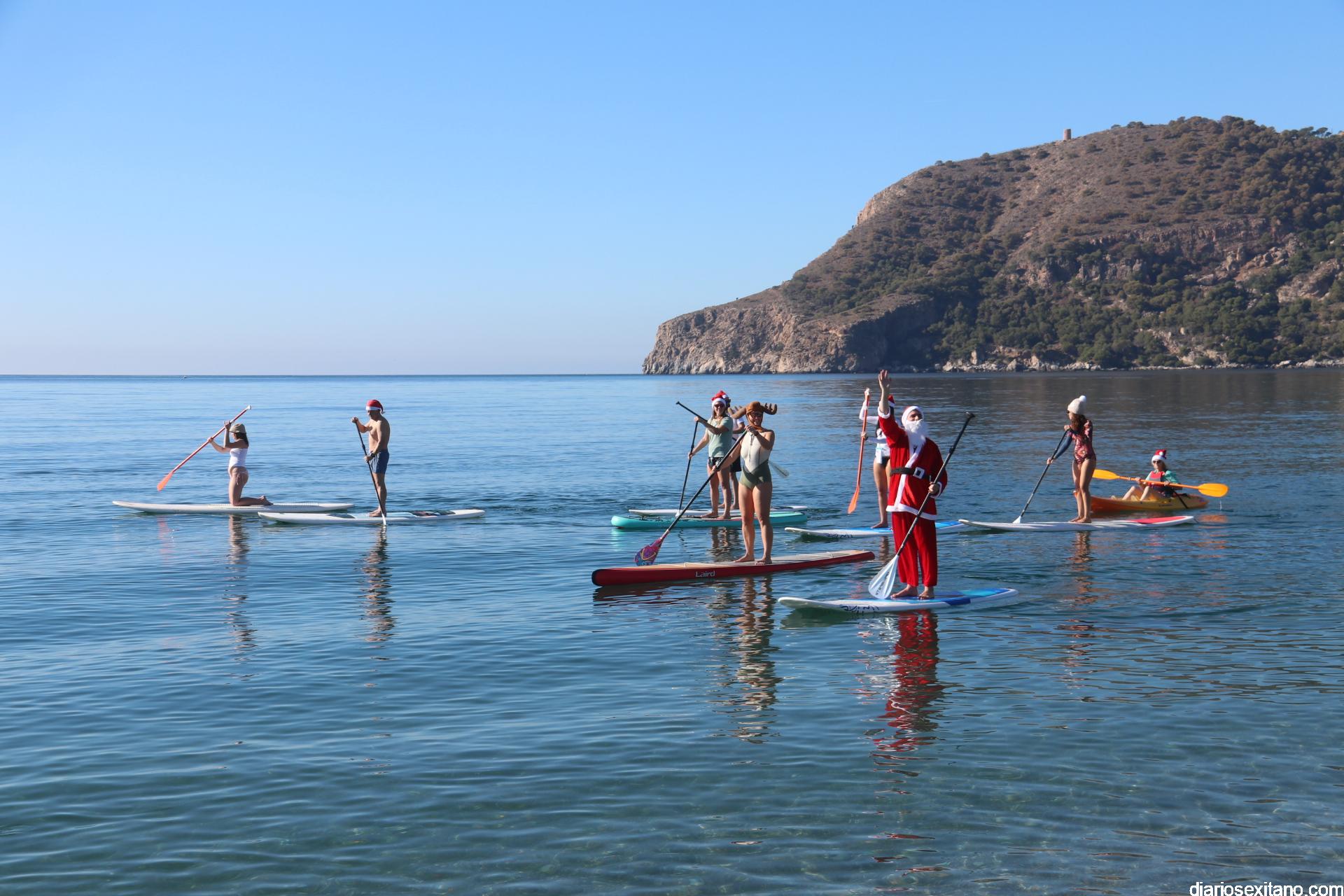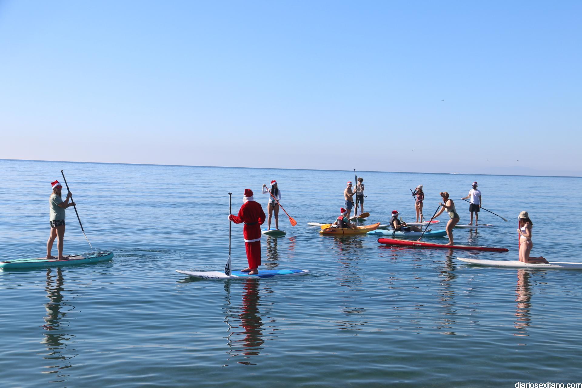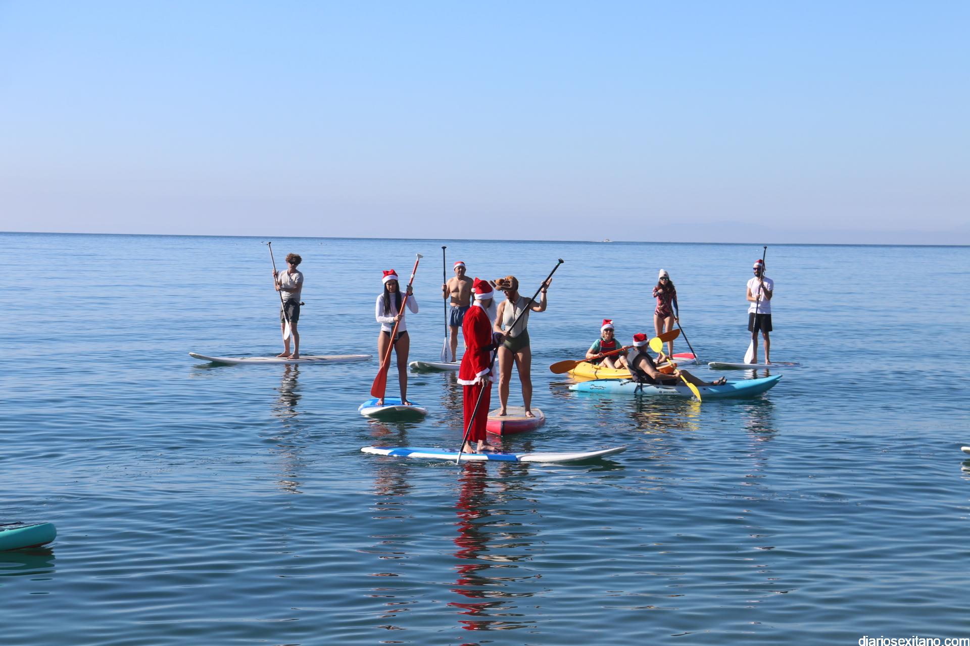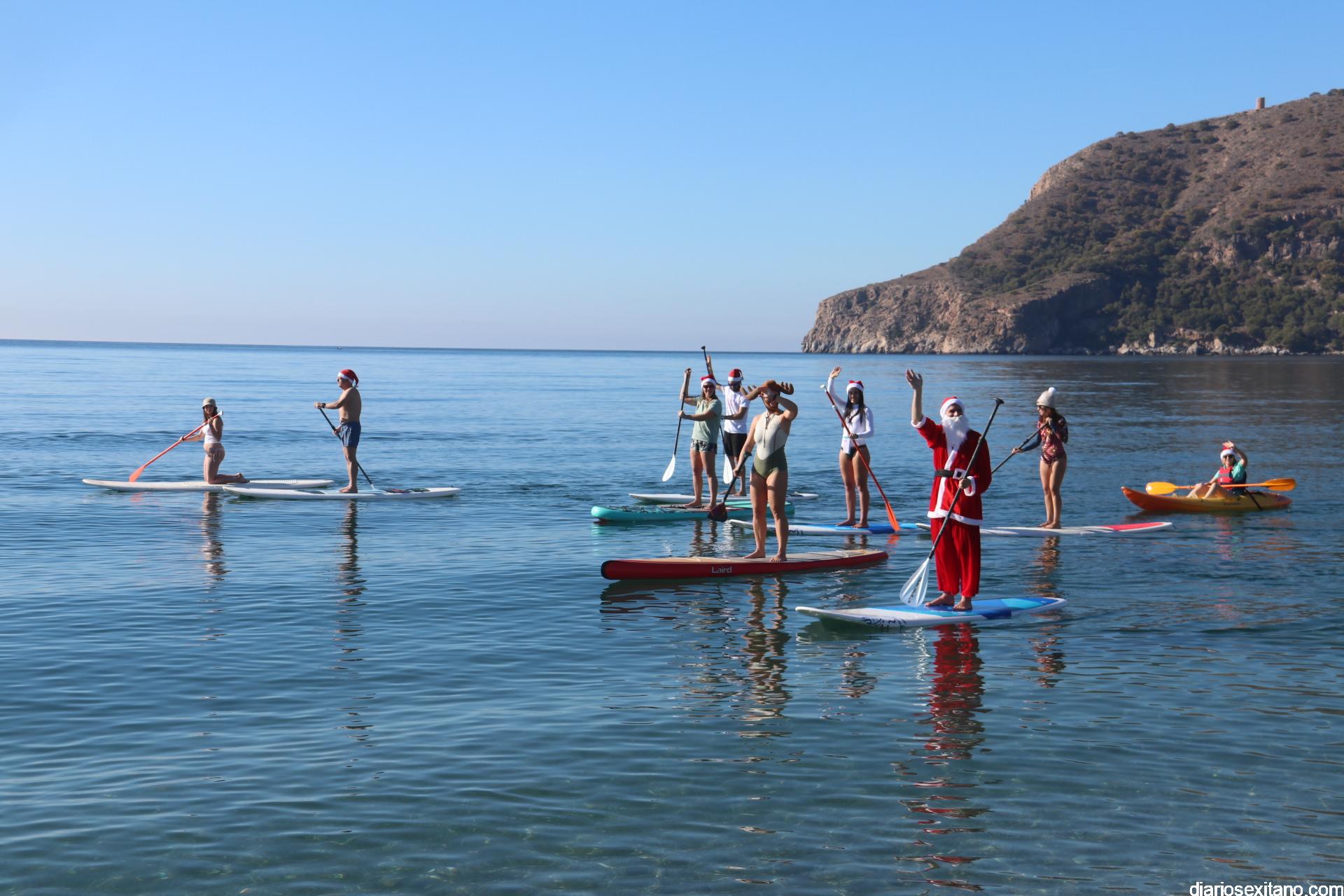 El buen tiempo hizo que Papá Noel llegara a la Playa de La Herradura en paddle surf acompañado de un amplio séquito. La buena temperatura ambiente hizo que se viviera una jornada con excelente temperatura ambiente que, unido al buen estado del mar, hizo que el recorrido fuese saludado por numerosas personas.