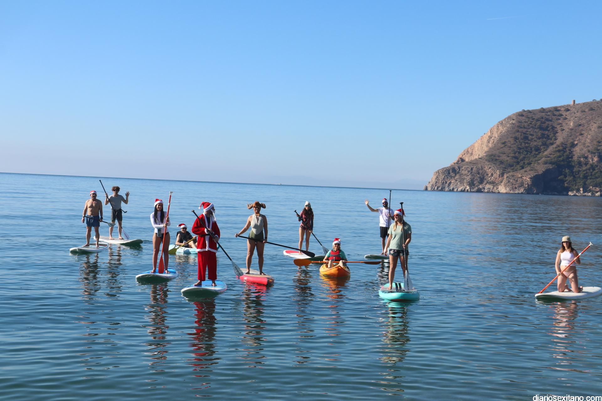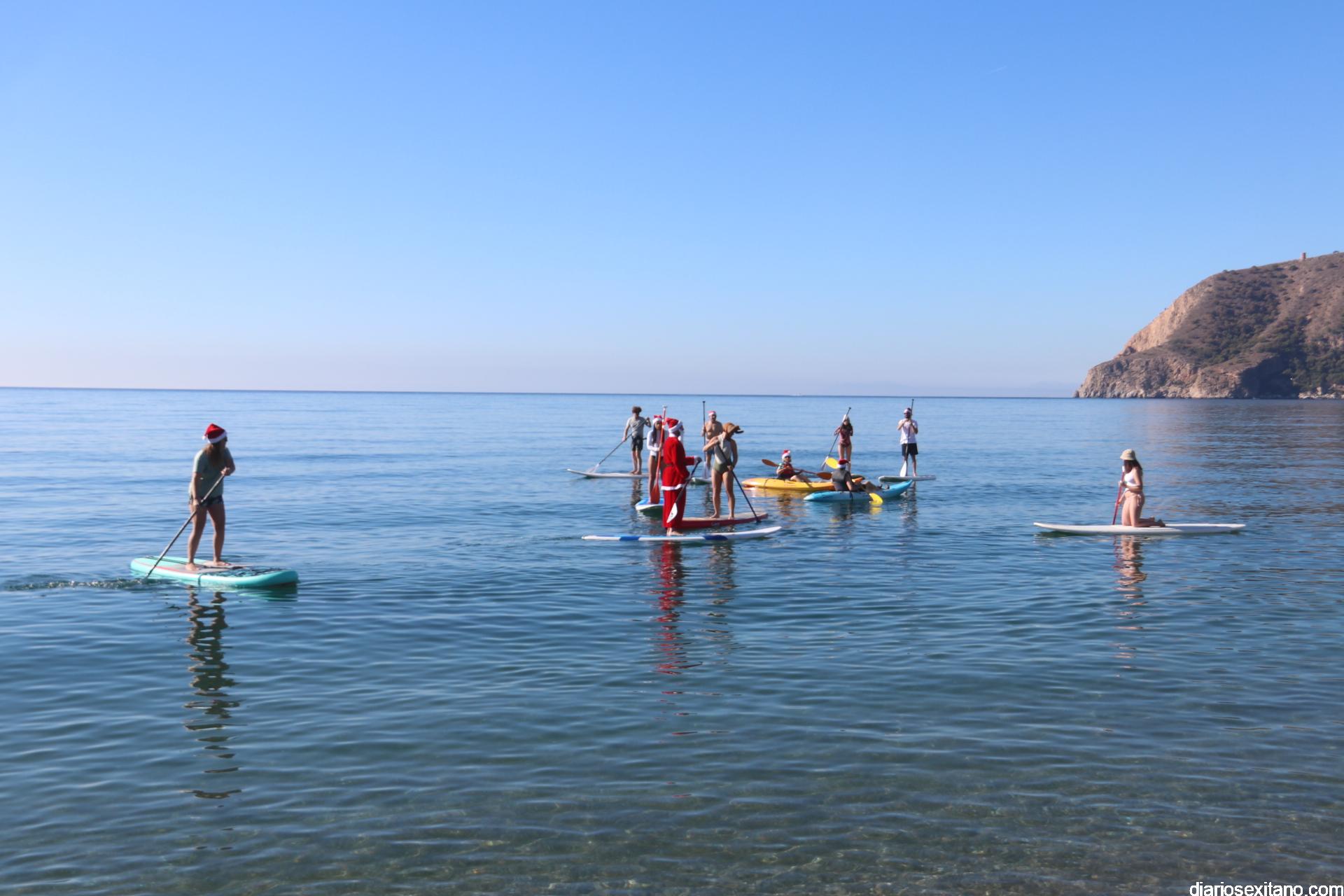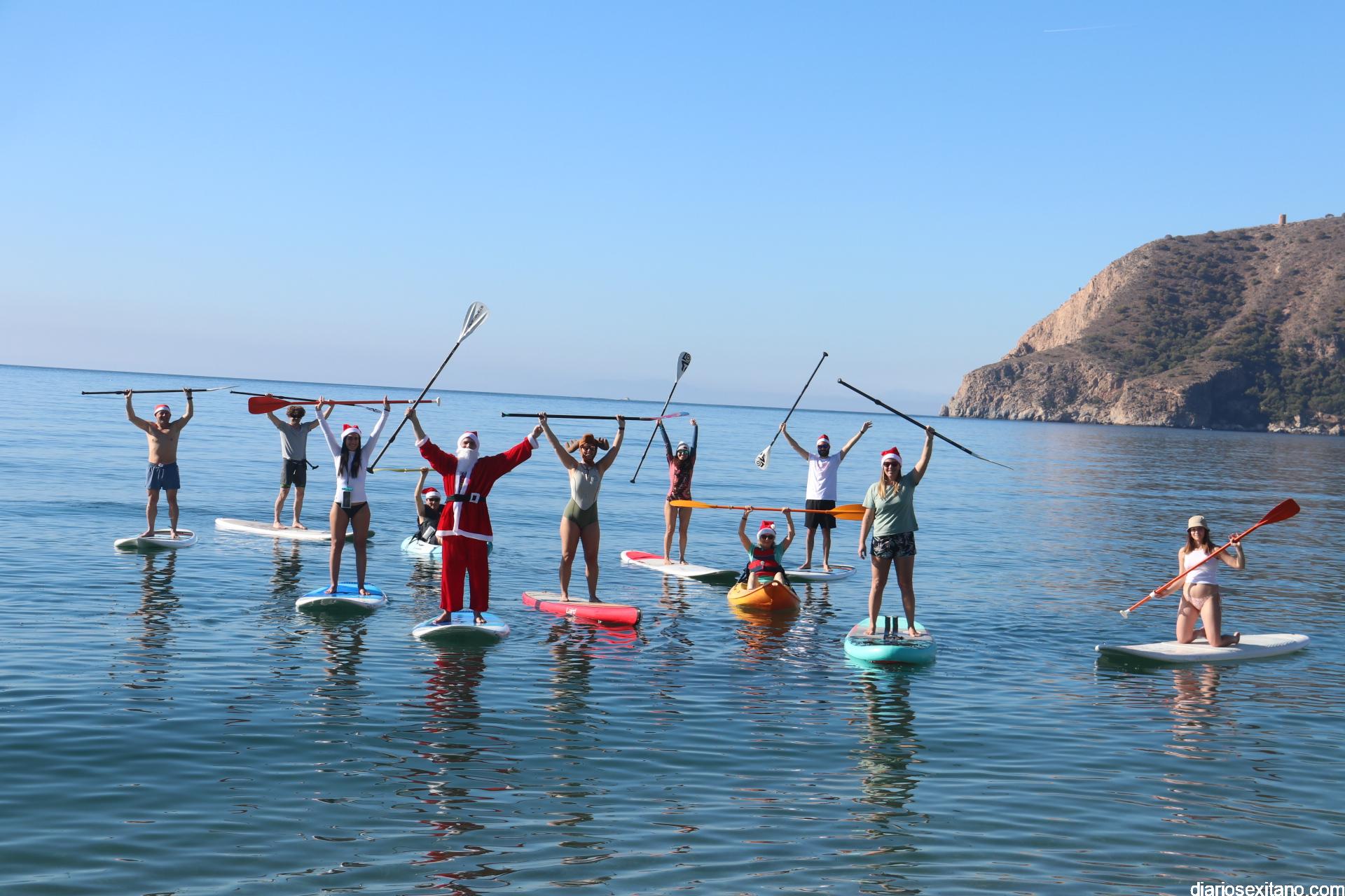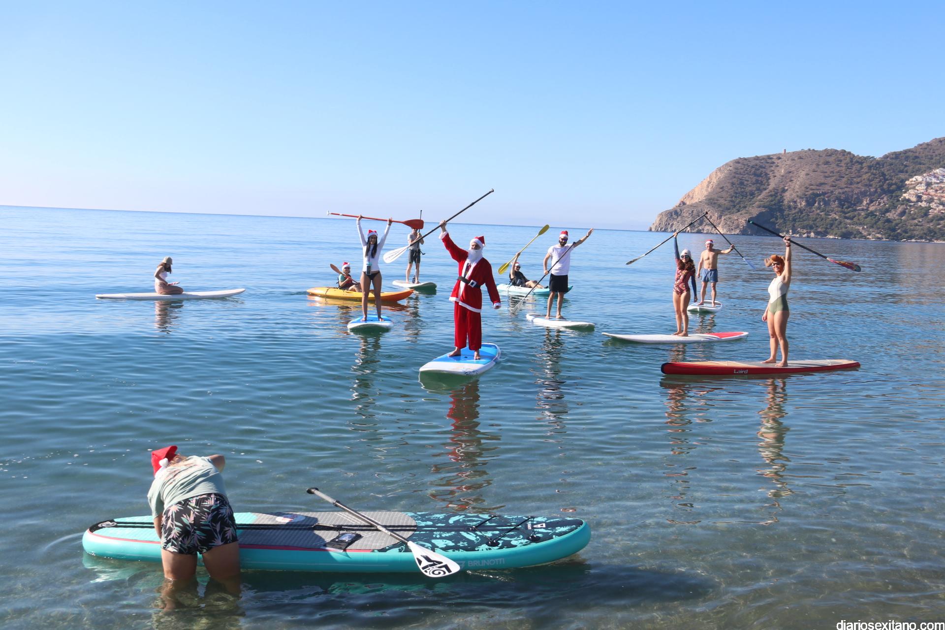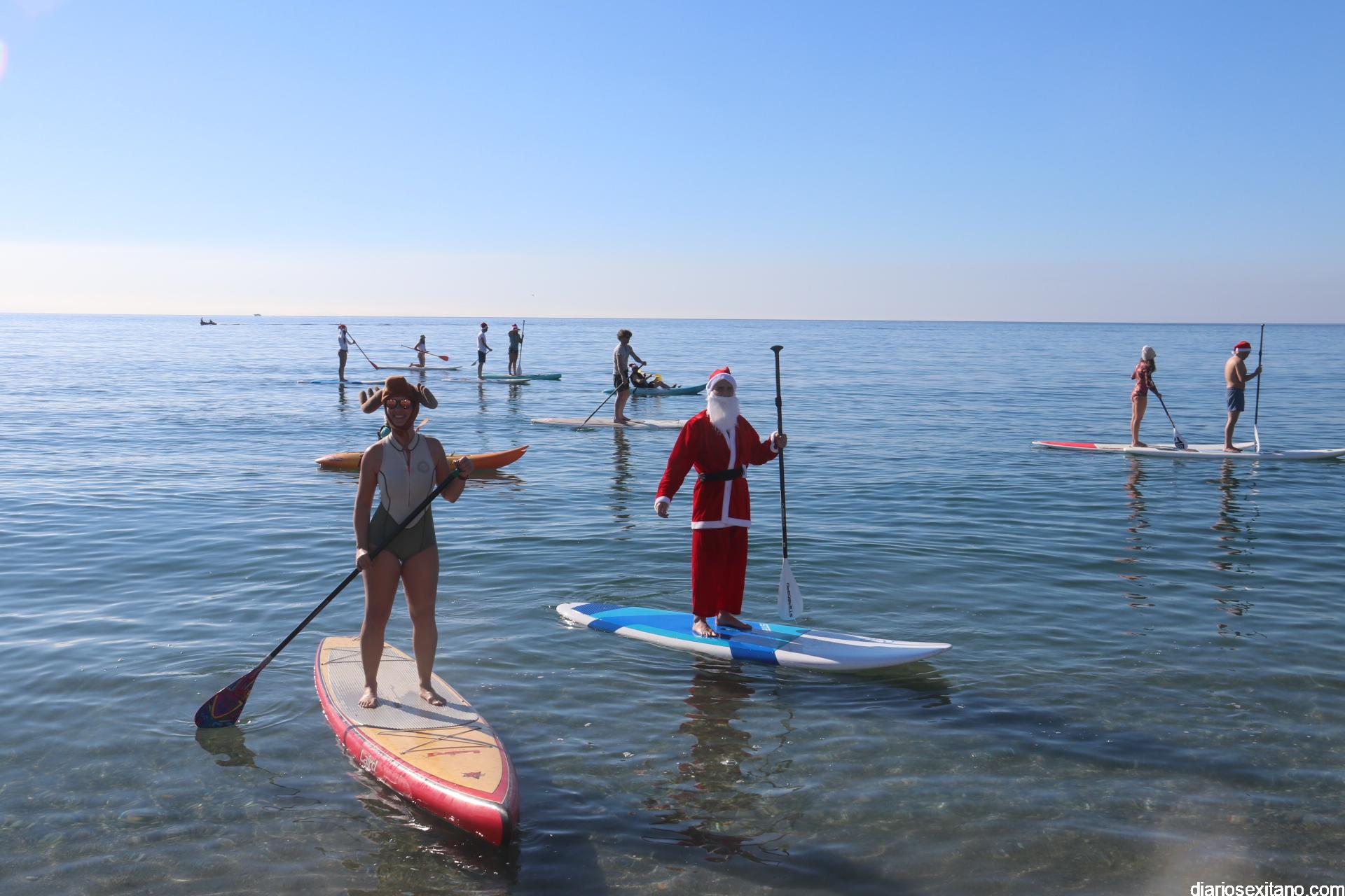 El buen tiempo hizo que Papá Noel llegara a la Playa de La Herradura en paddle surf acompañado de un amplio séquito. La buena temperatura ambiente hizo que se viviera una jornada con excelente temperatura ambiente que, unido al buen estado del mar, hizo que el recorrido fuese saludado por numerosas personas.